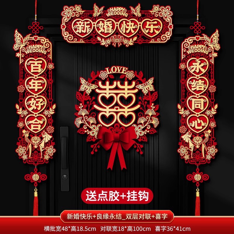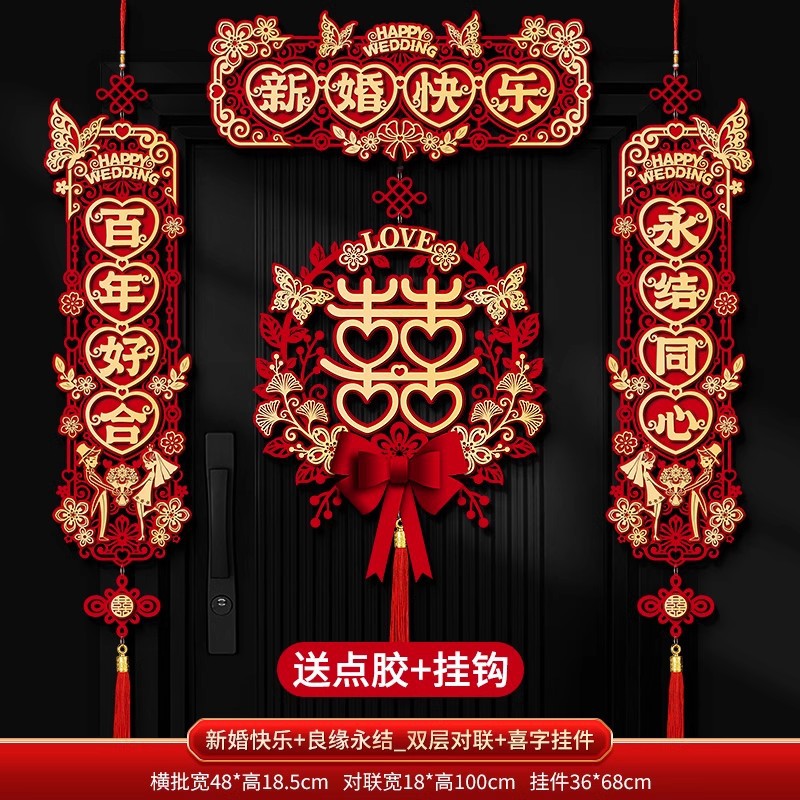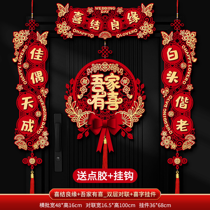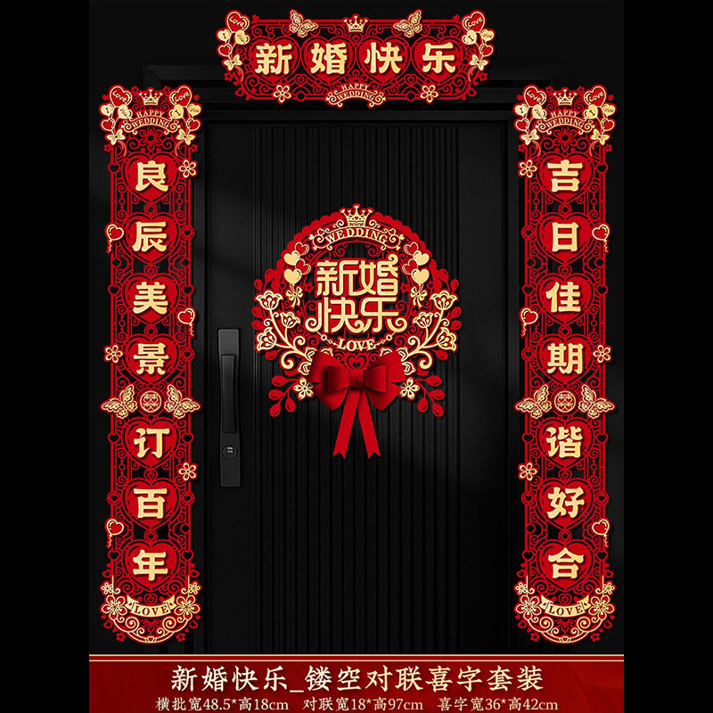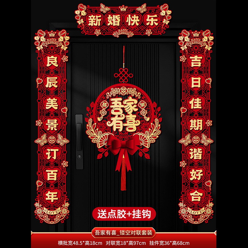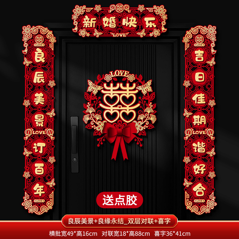 结婚对联喜字专用婚礼男方大门农村女方出嫁房门喜联全套婚房装饰