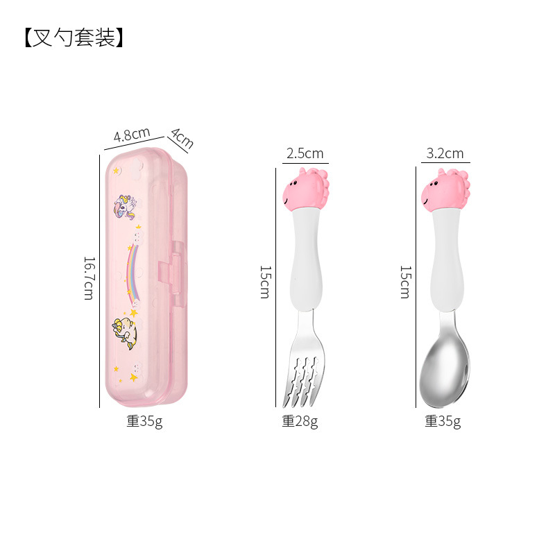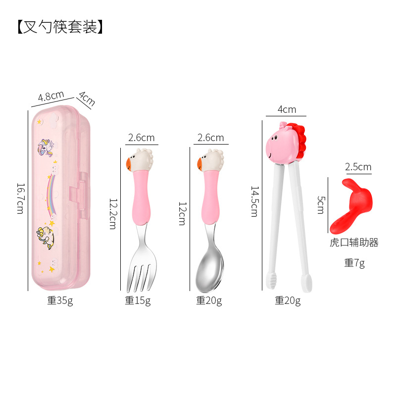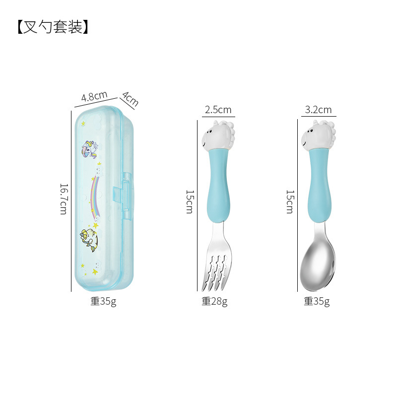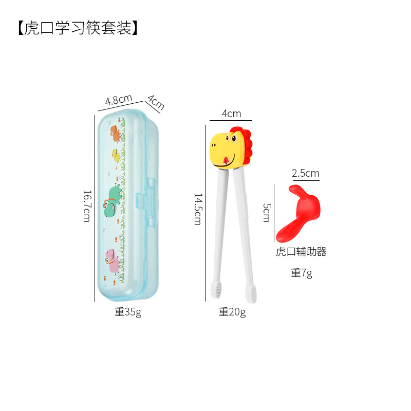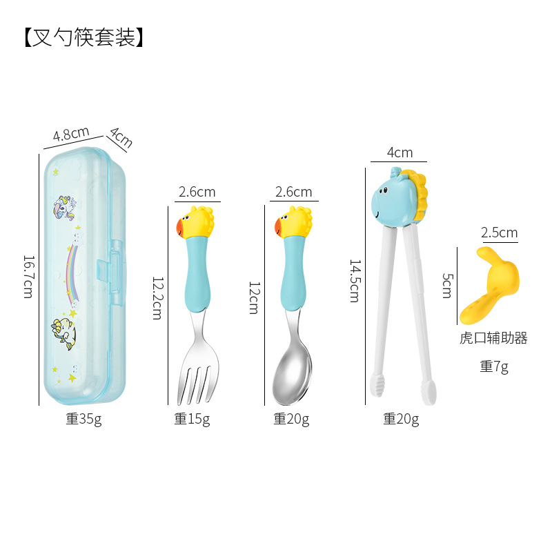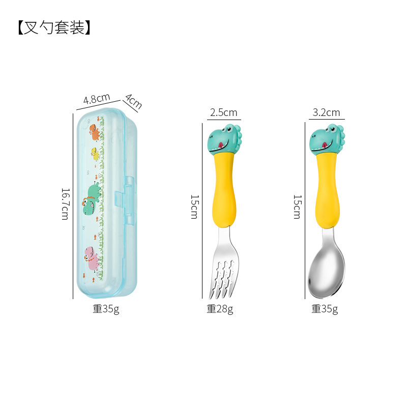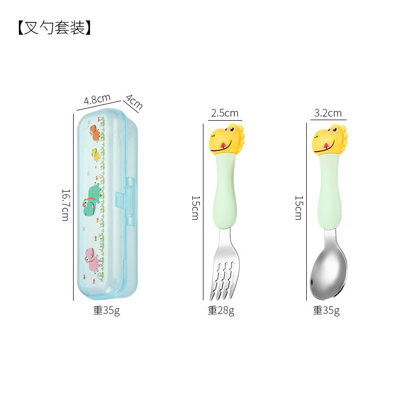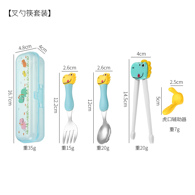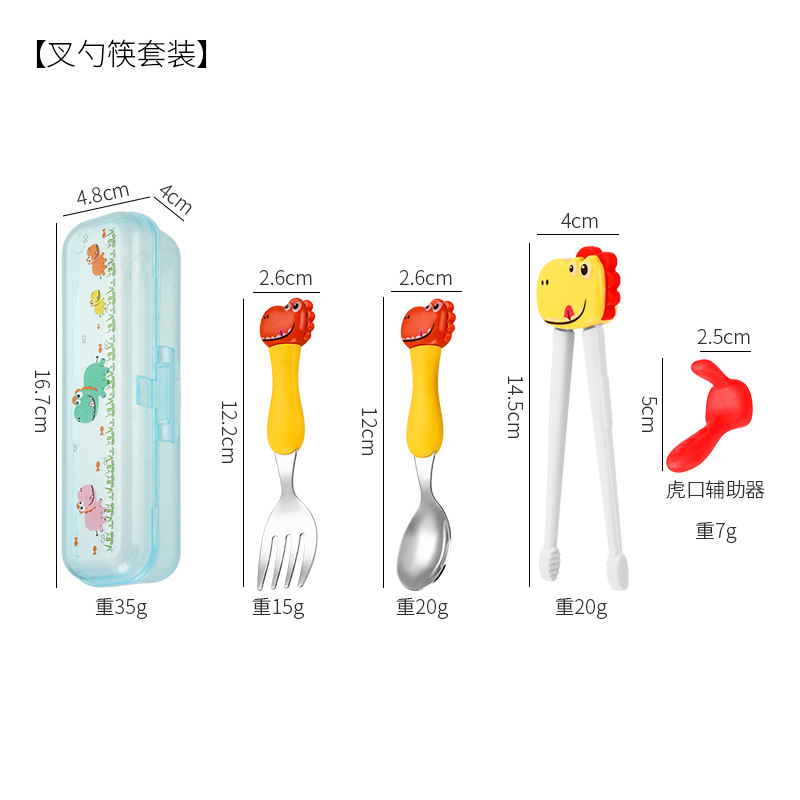 母婴儿童餐具套装辅食勺卡通恐龙训练学习虎口筷子叉勺便捷一套装