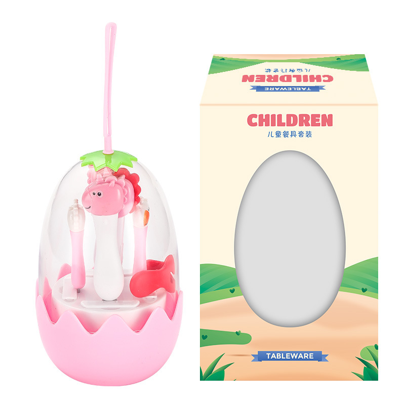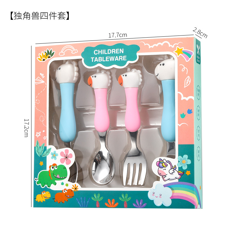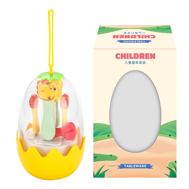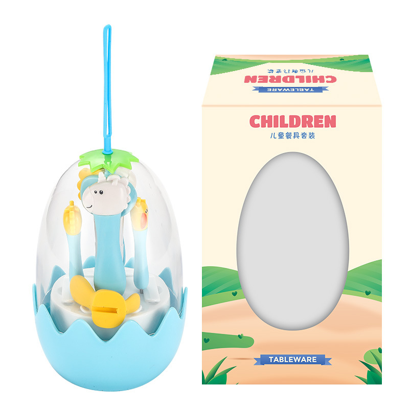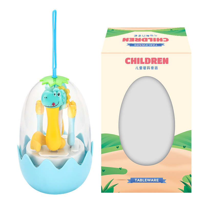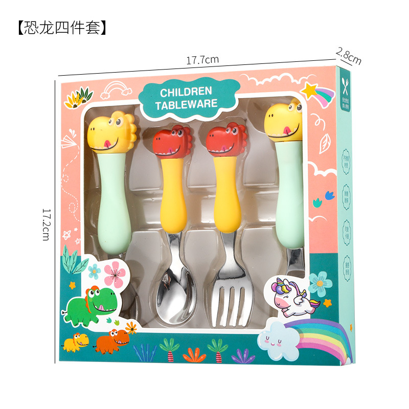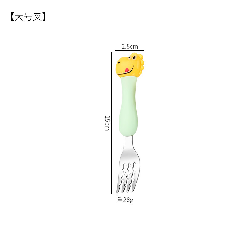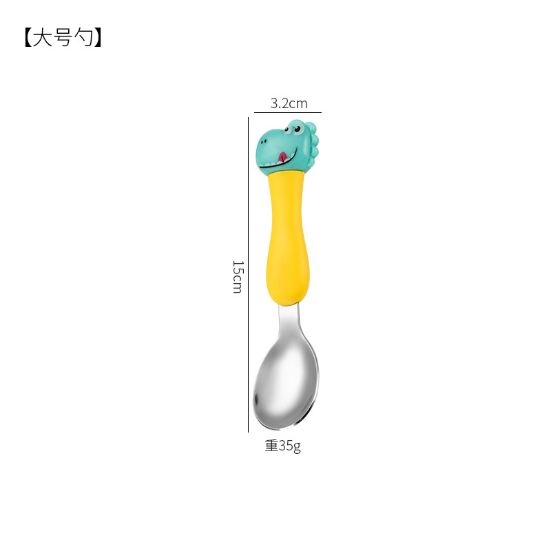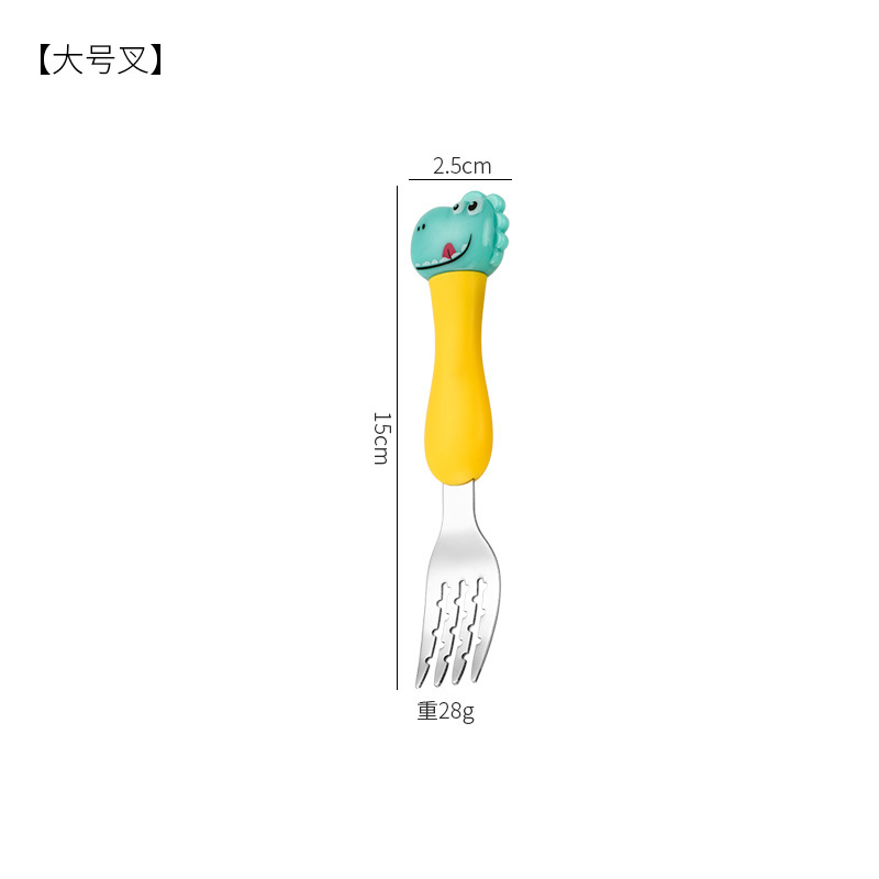 母婴儿童餐具套装辅食勺卡通恐龙训练学习虎口筷子叉勺便捷一套装