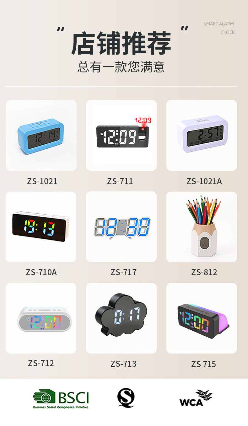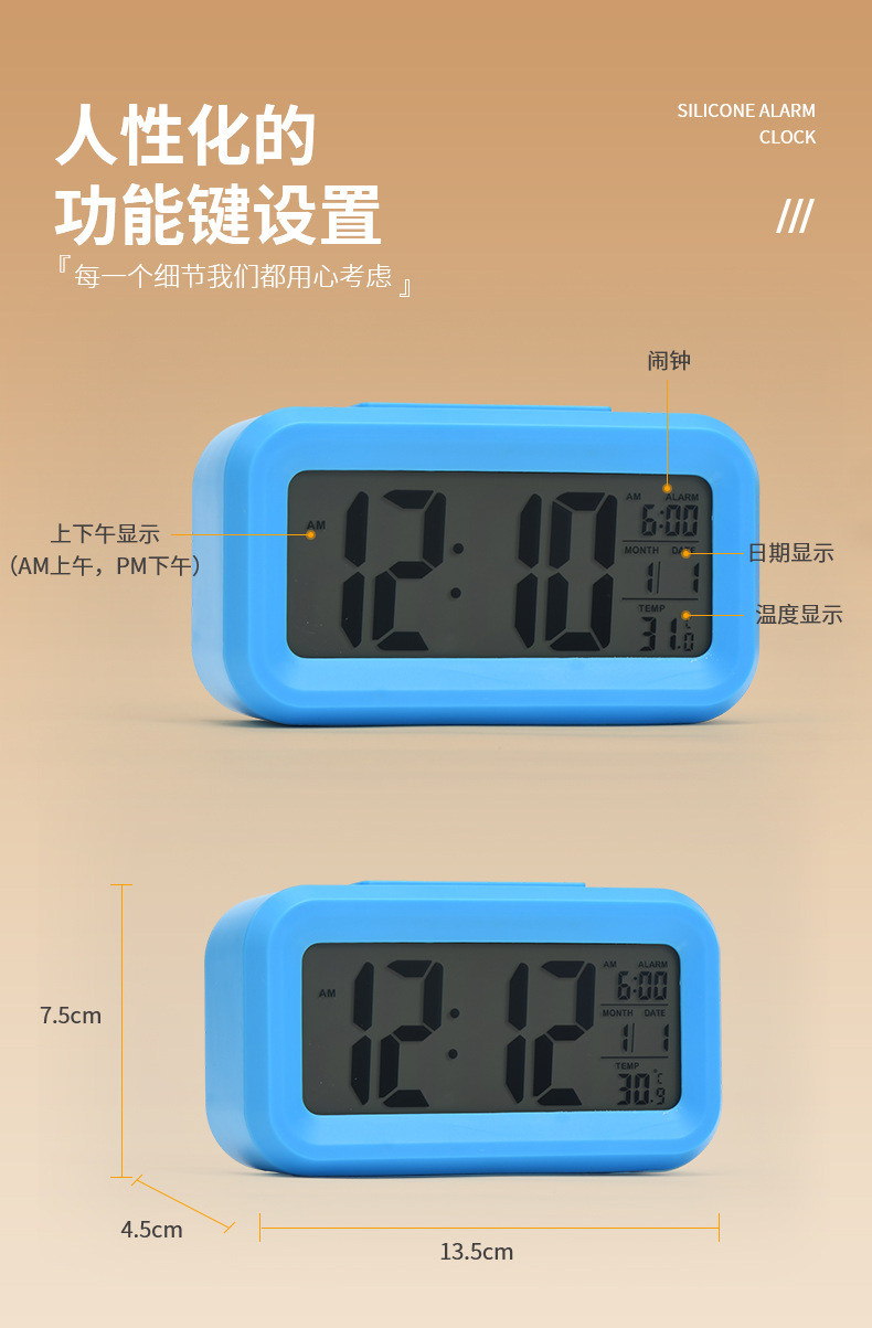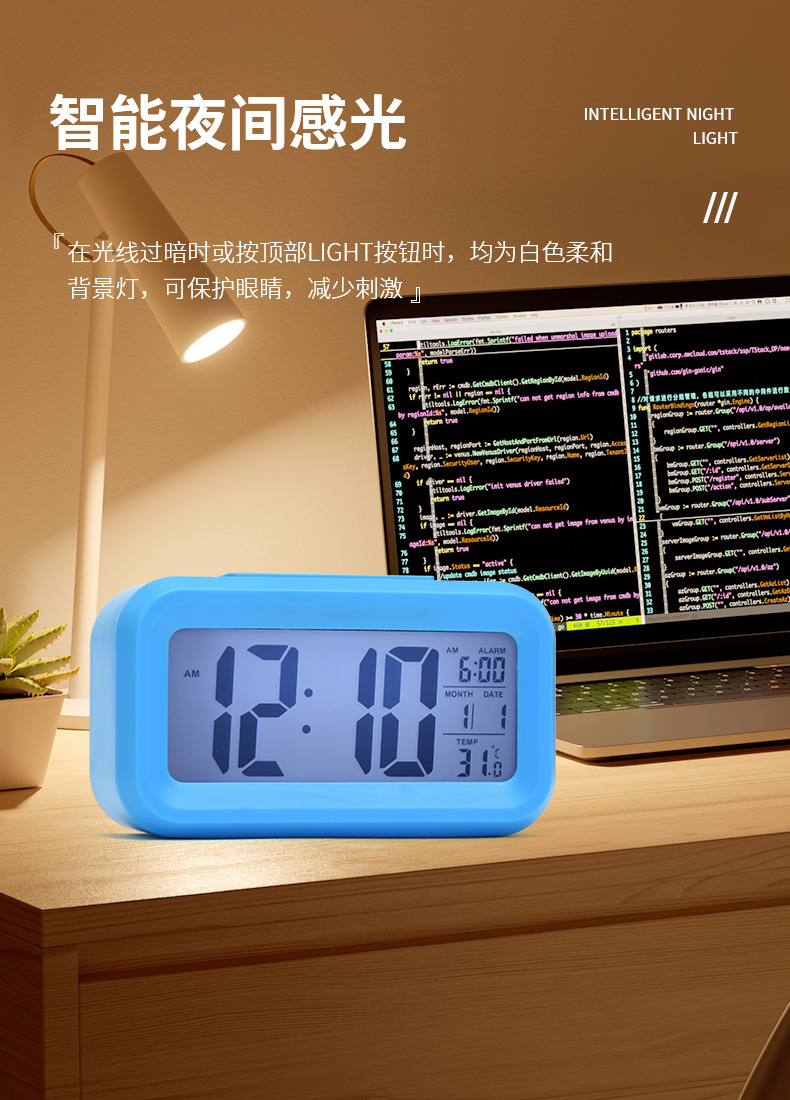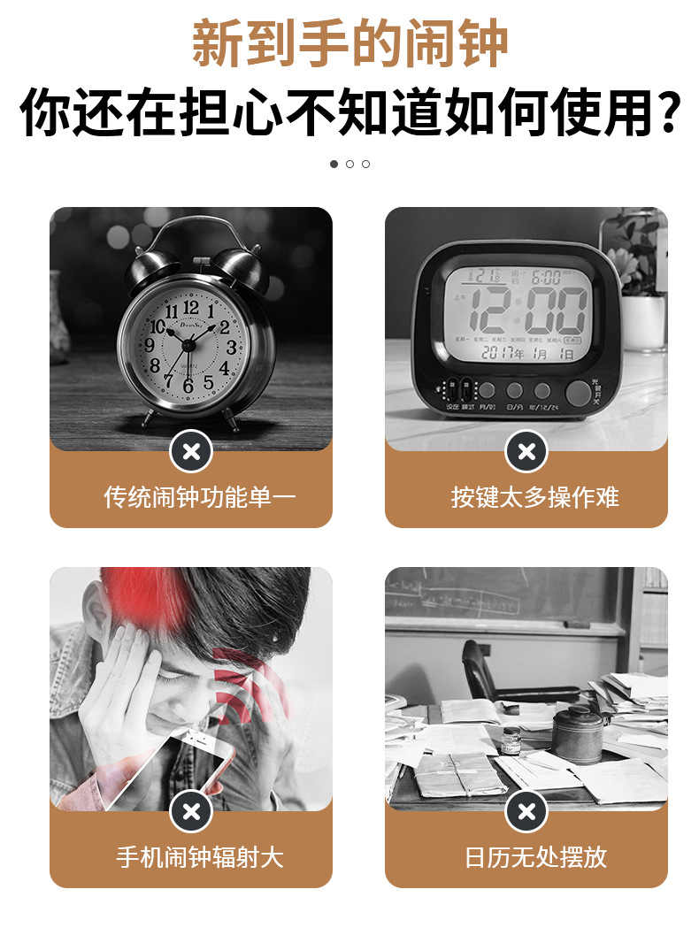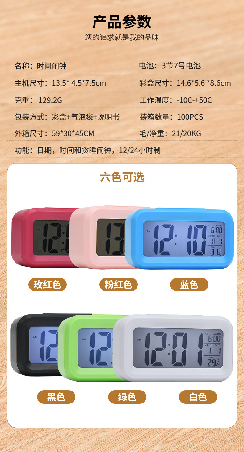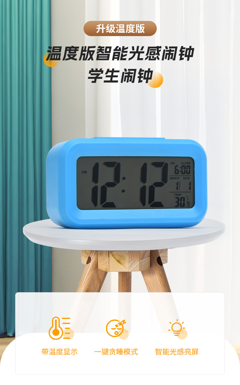 跨境批发聪明钟闹钟温度版日历一组闹铃智能报时创意礼品电子闹钟