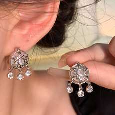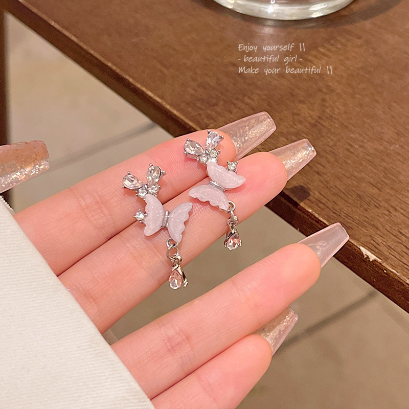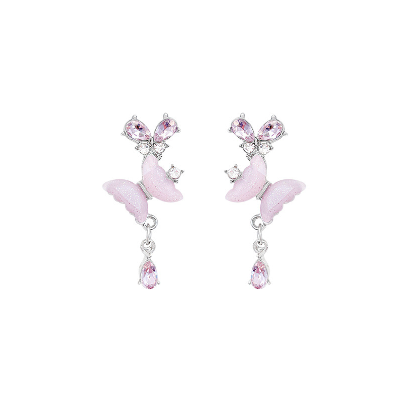 韩系新款粉色蝴蝶耳钉女S925银针轻奢小众超闪锆石蝴蝶耳环耳饰品