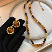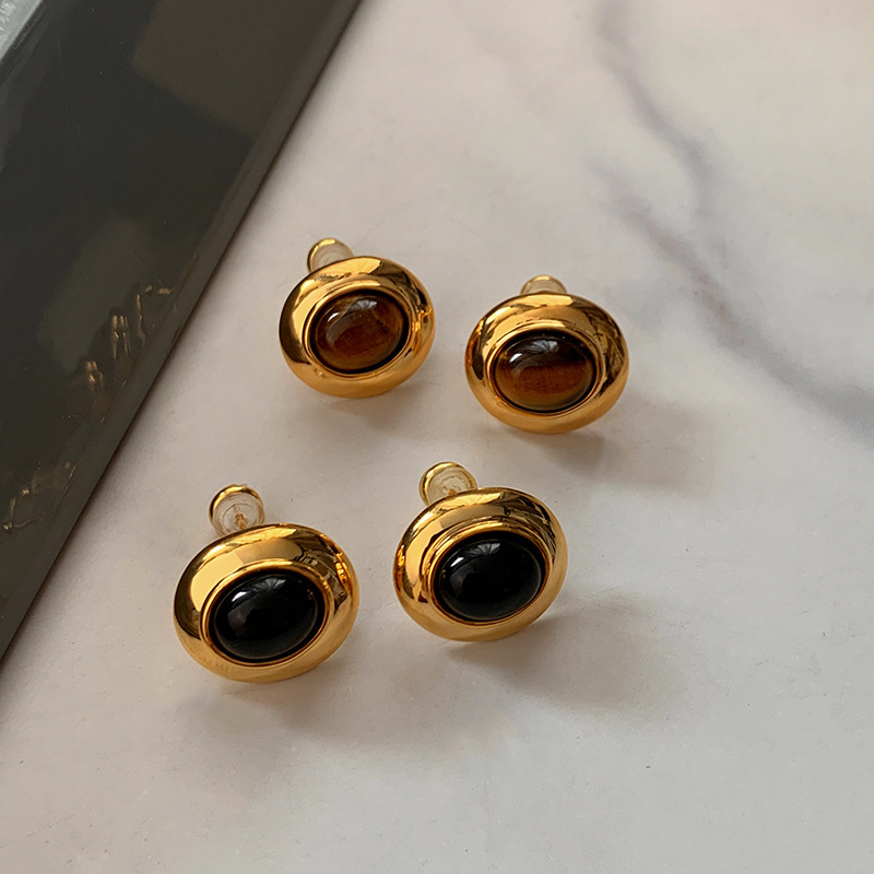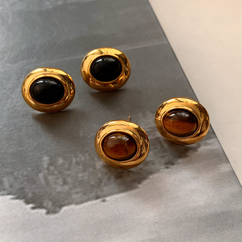 真金电镀复古美拉德虎眼石耳钉轻奢小众独特设计感纯银针耳环耳饰