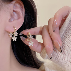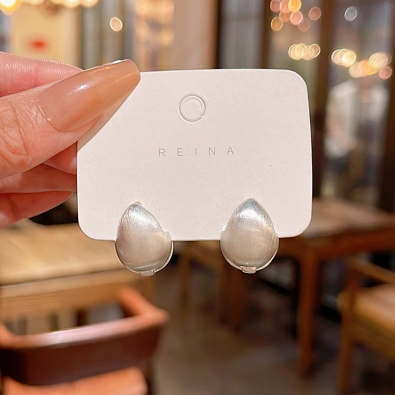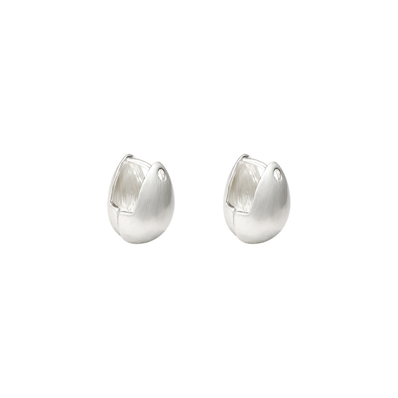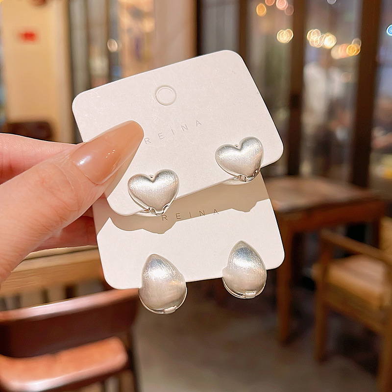 S925银针韩国新款简约爱心耳扣耳环女ins潮哑光银色水滴耳钉耳饰