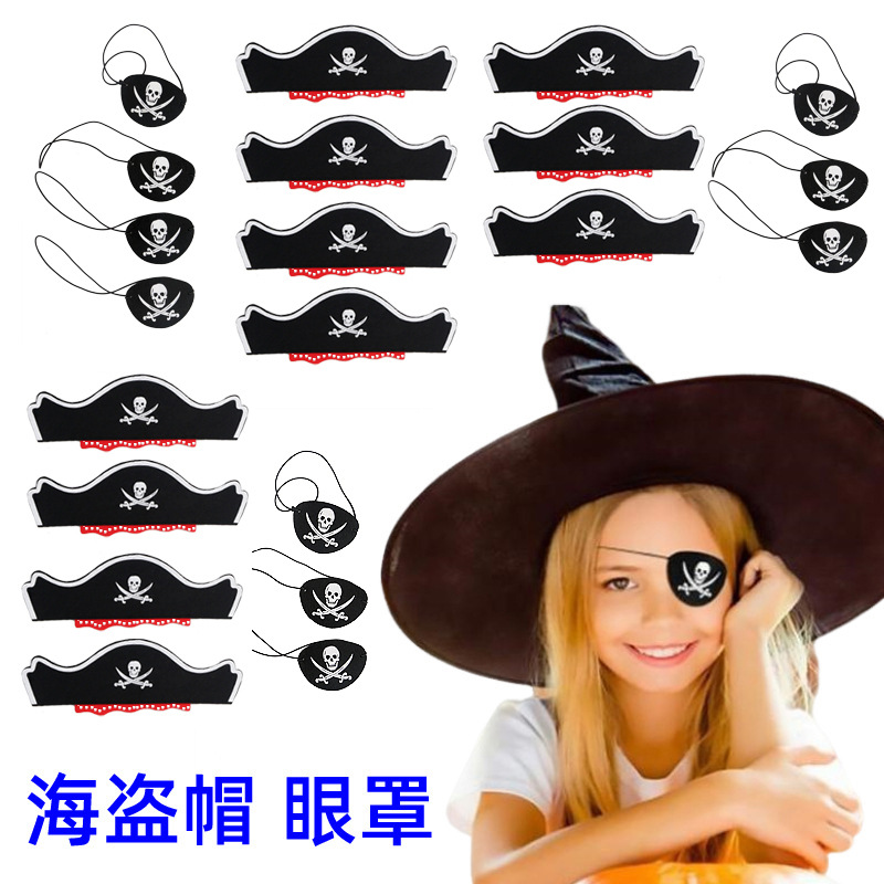 万圣节毛毡海盗帽化妆舞会加勒比海面具独眼龙眼罩万圣节装饰批发