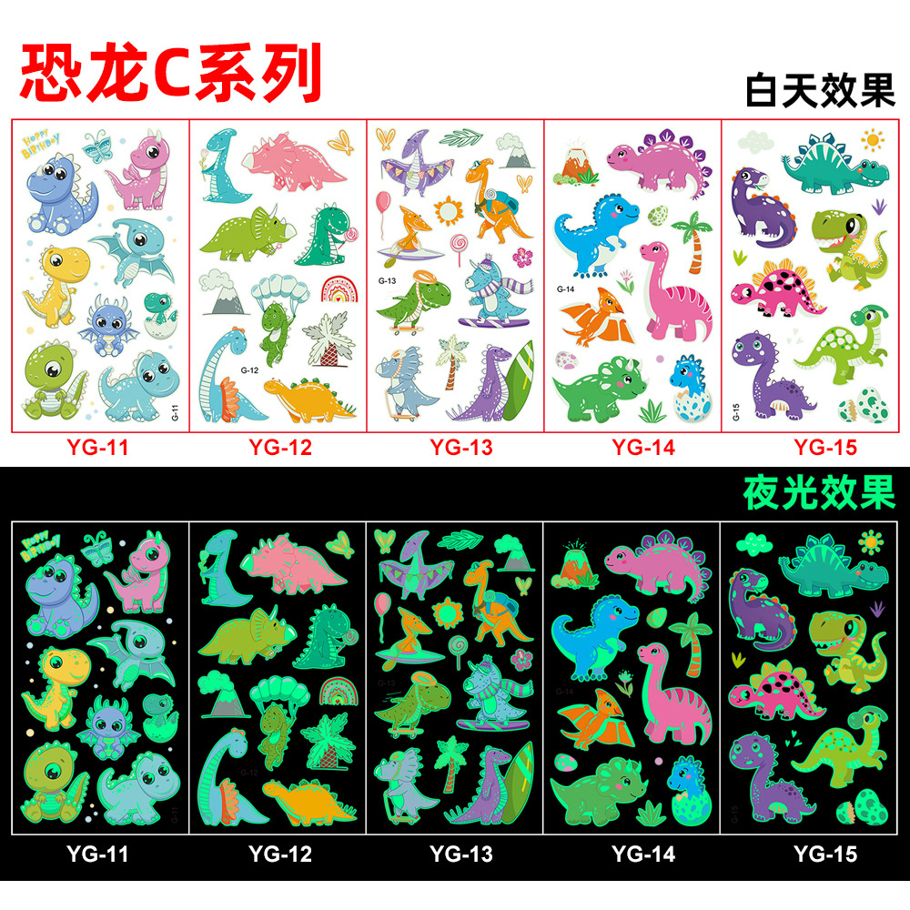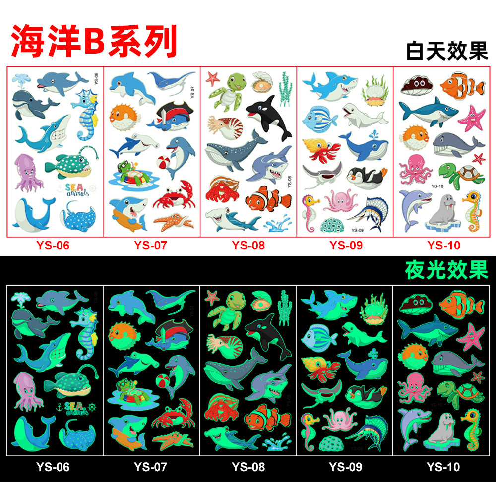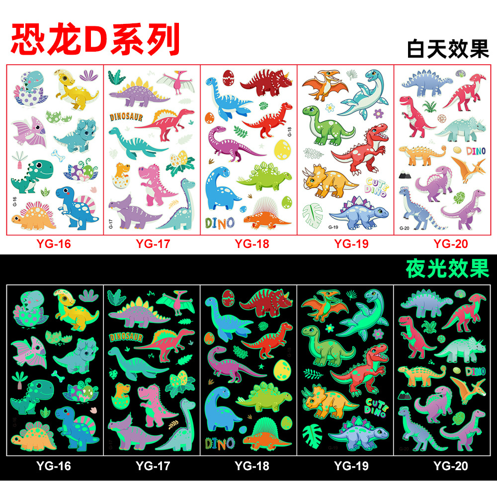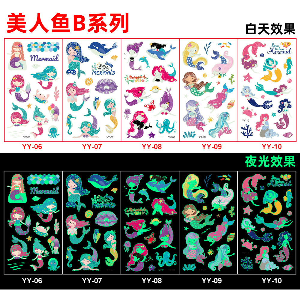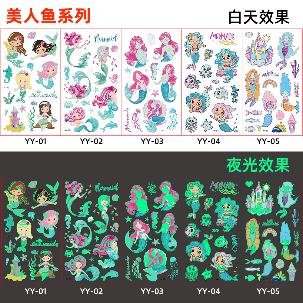 现货批发新款儿童卡通夜光纹身贴 恐龙 美人鱼 可爱派对文身贴纸