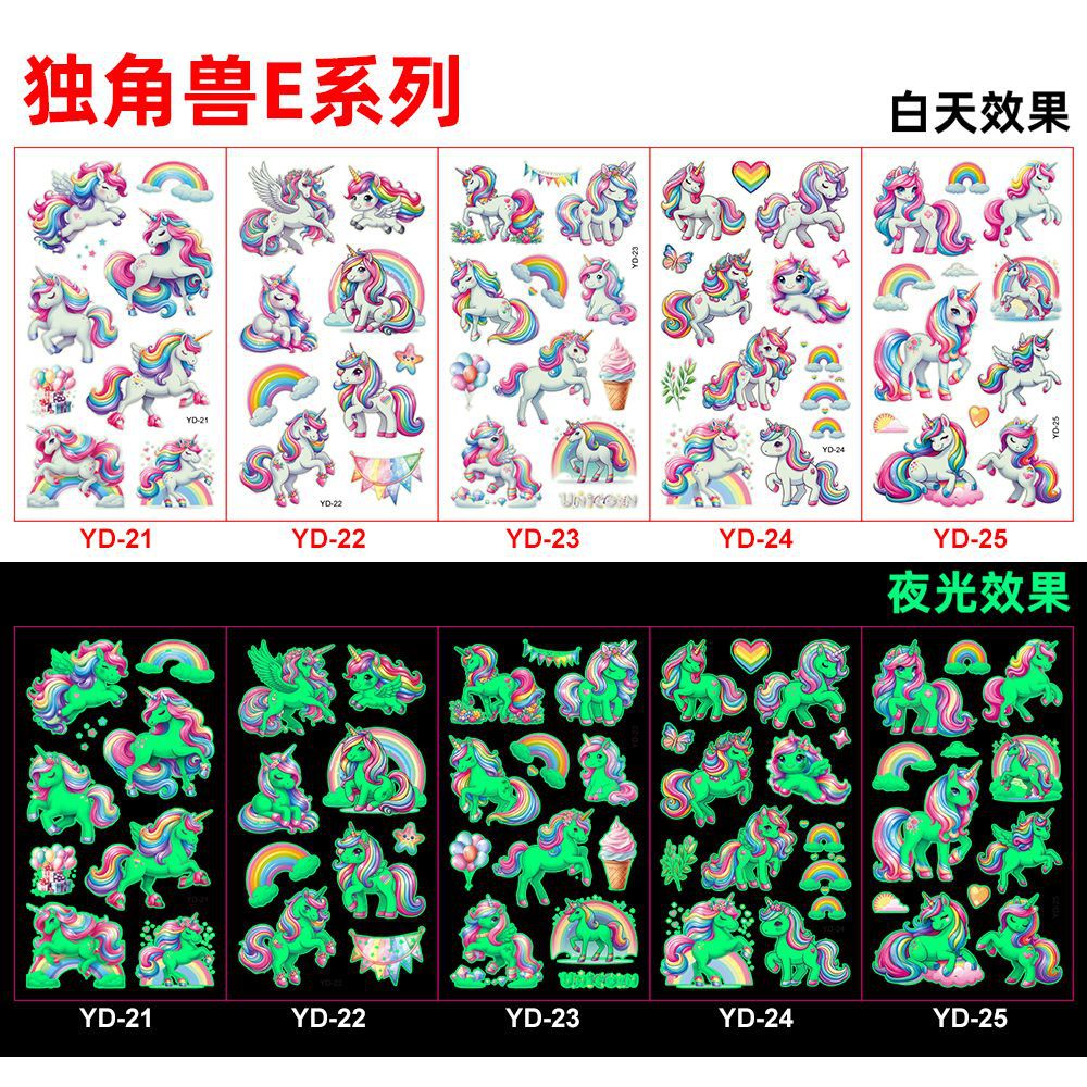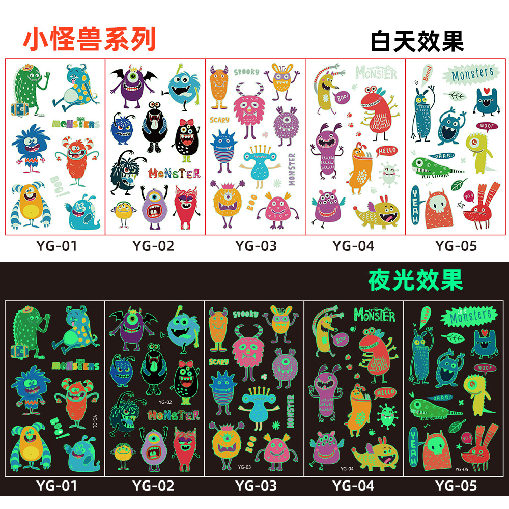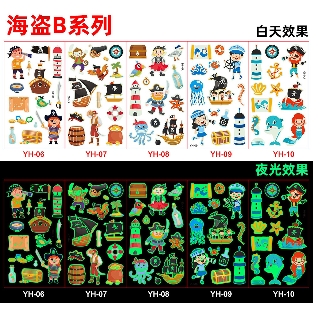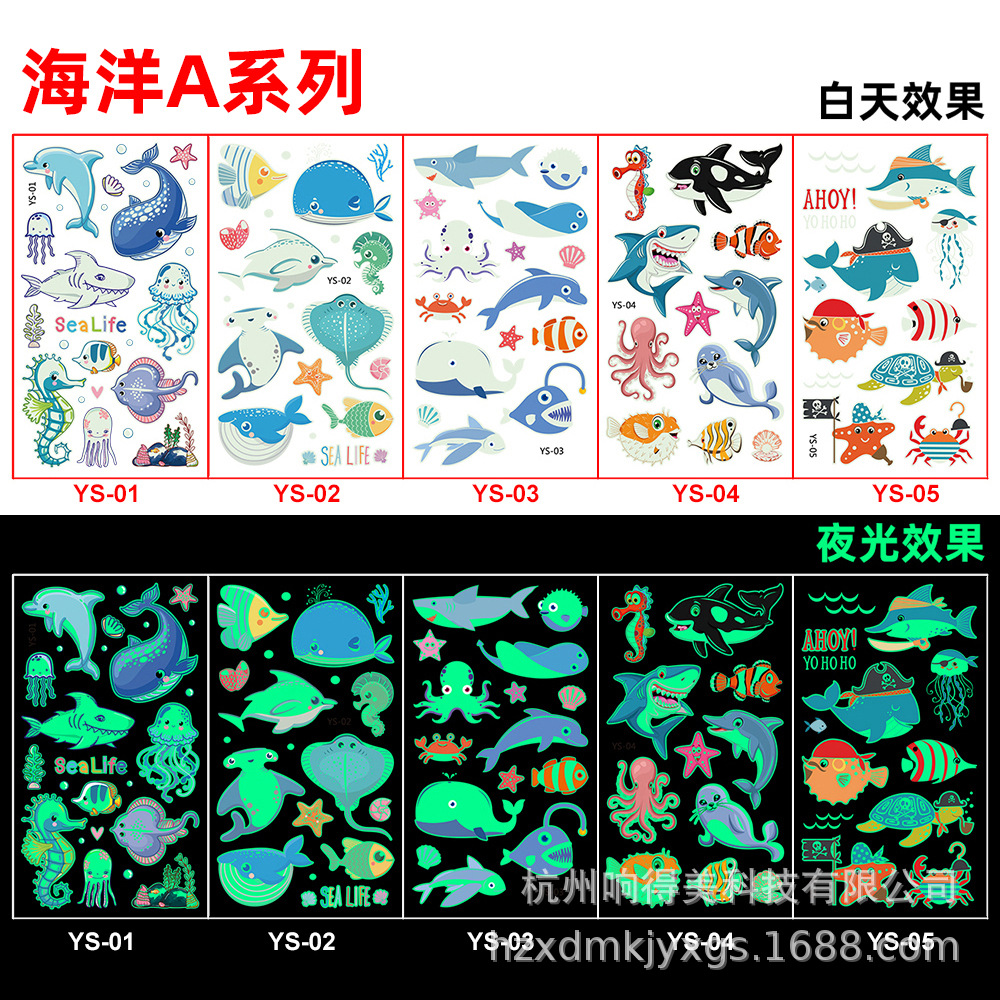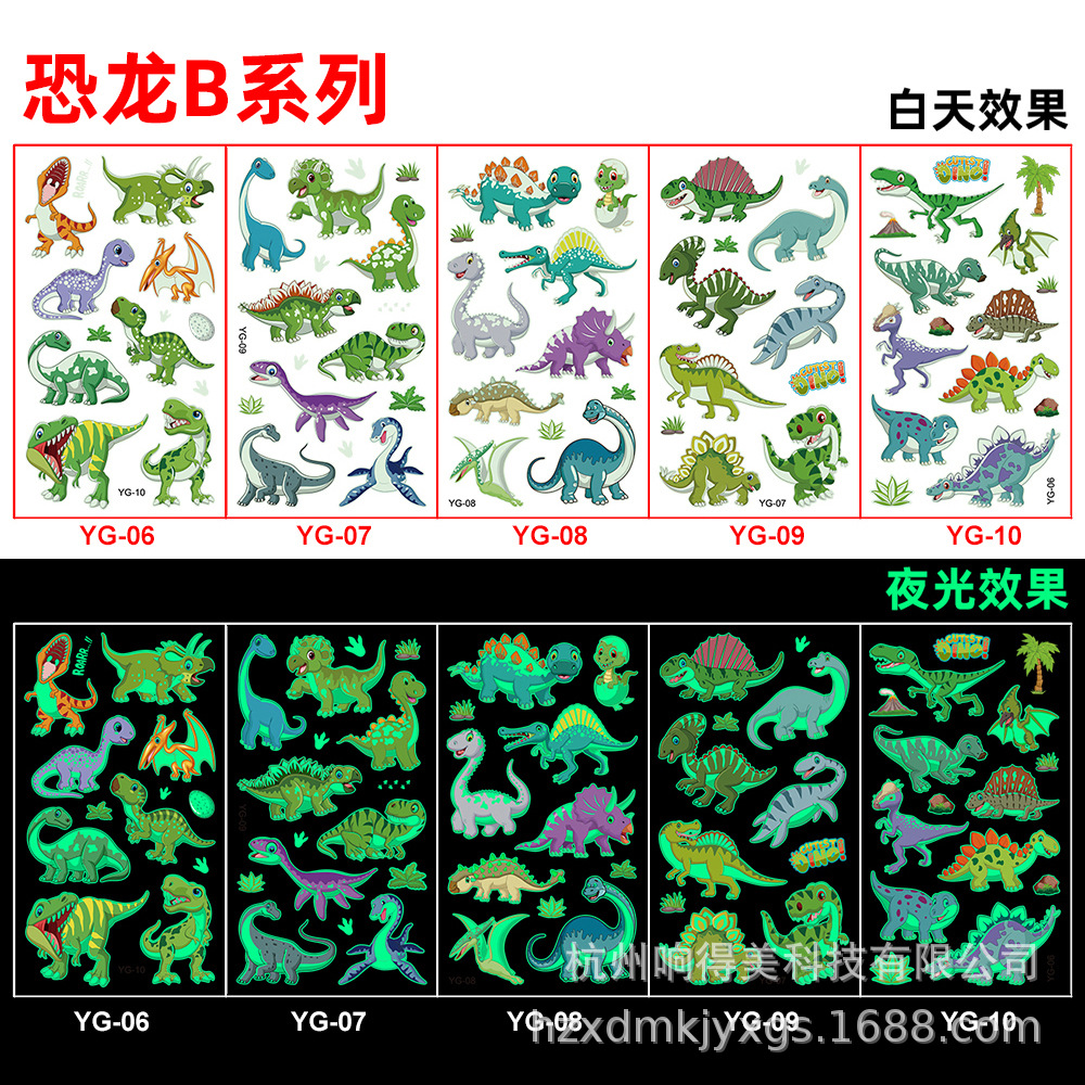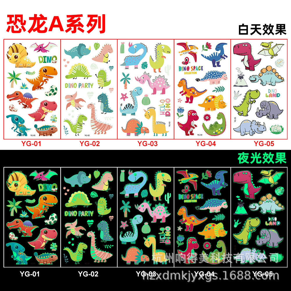 现货批发新款儿童卡通夜光纹身贴 恐龙 美人鱼 可爱派对文身贴纸