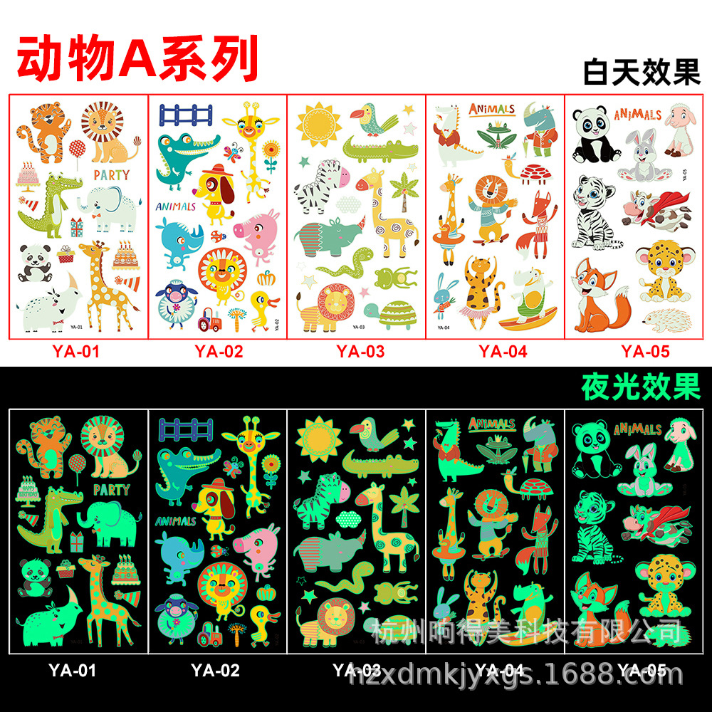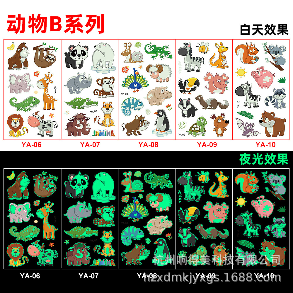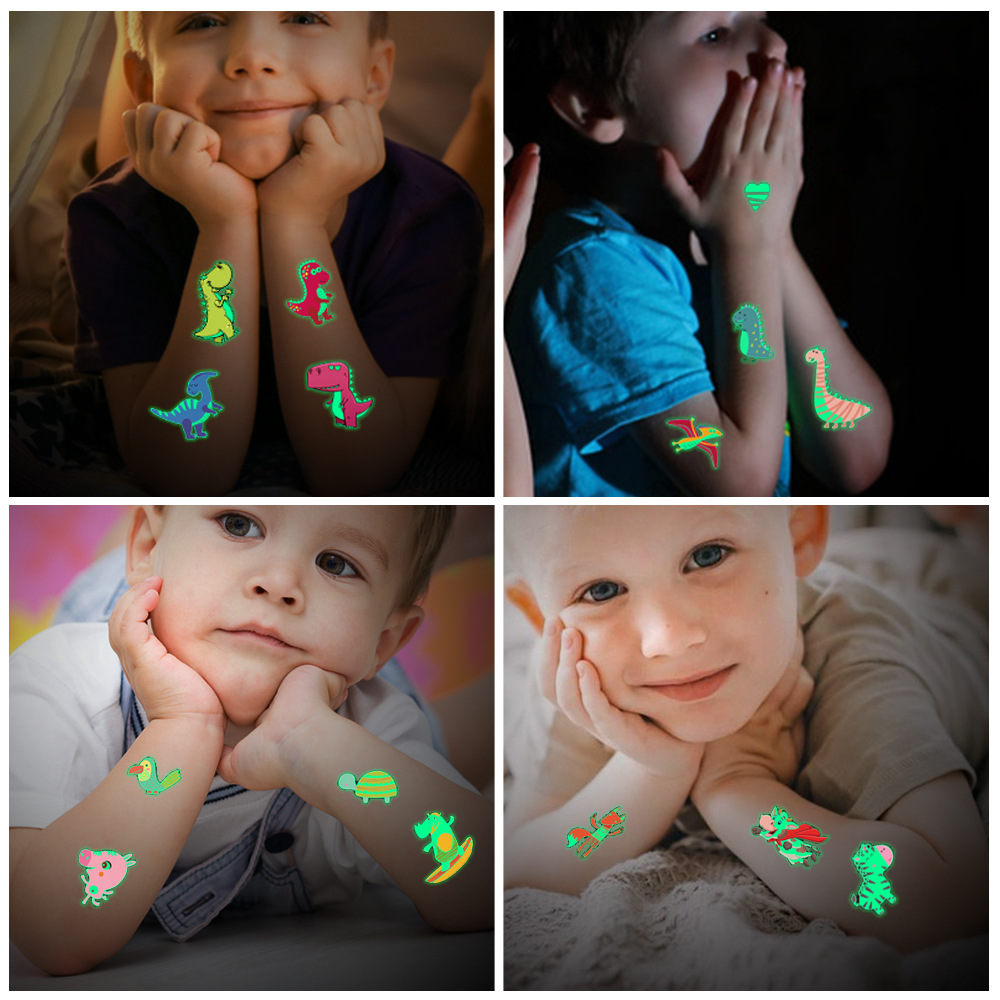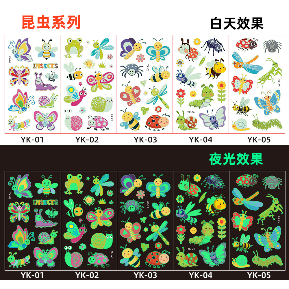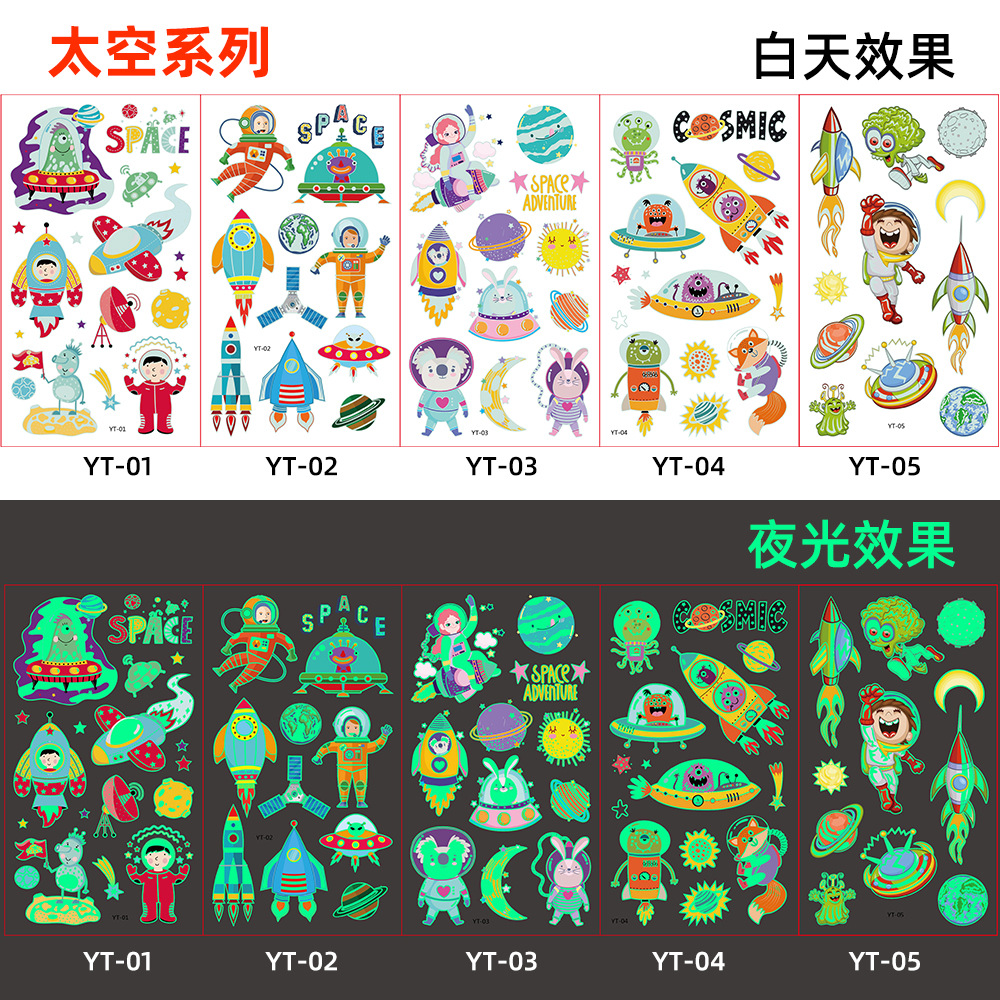 现货批发新款儿童卡通夜光纹身贴 恐龙 美人鱼 可爱派对文身贴纸