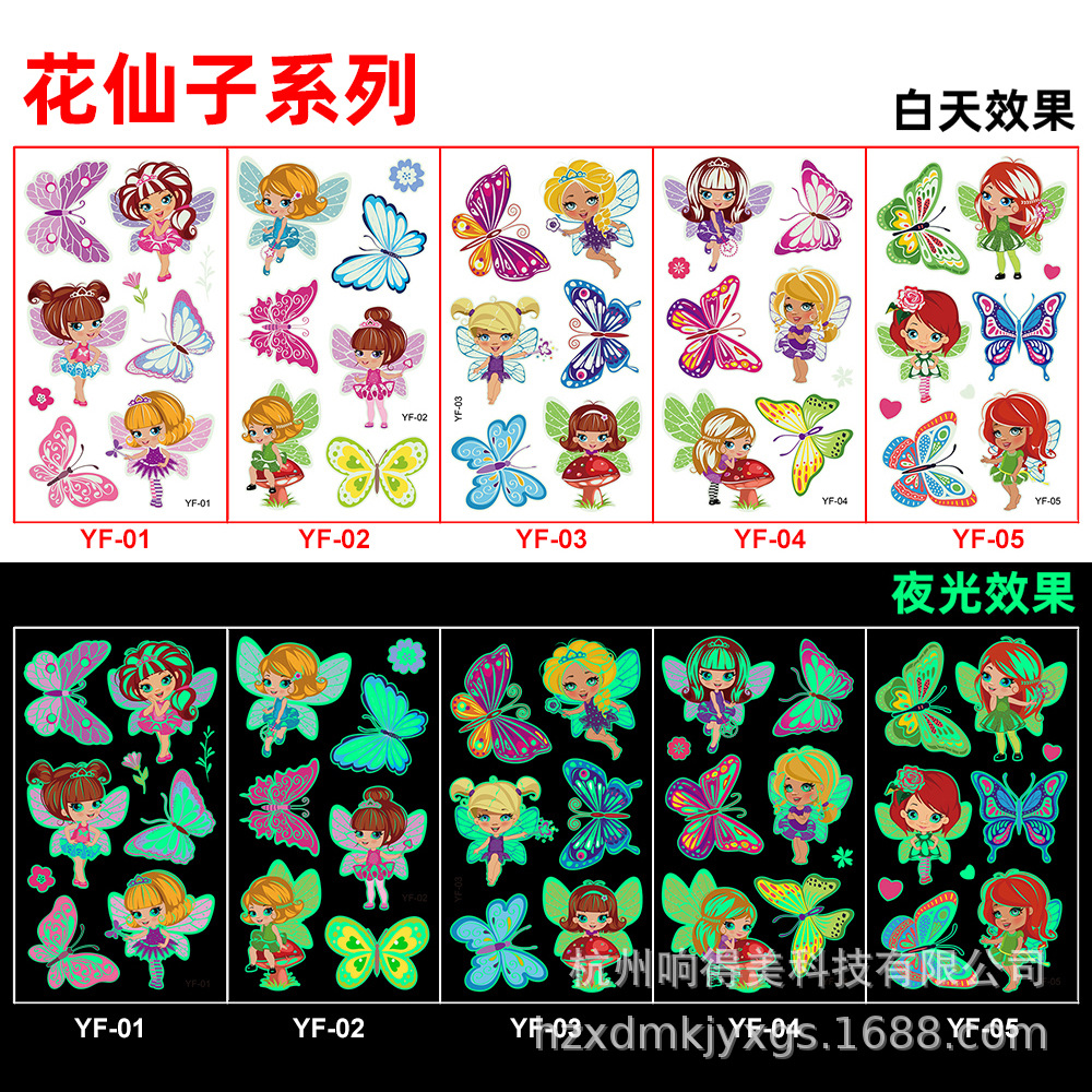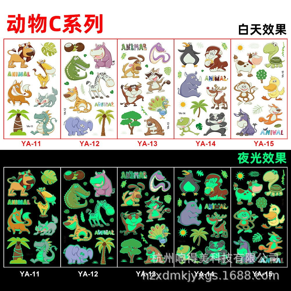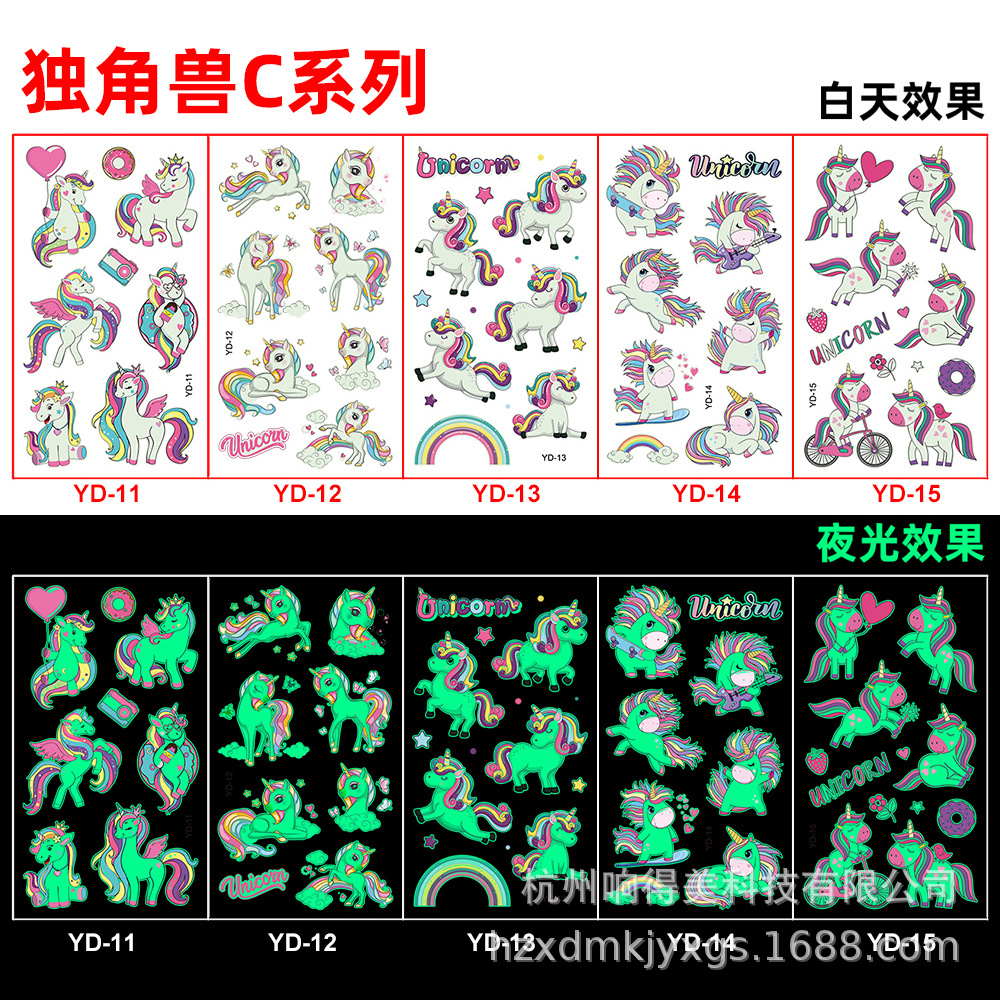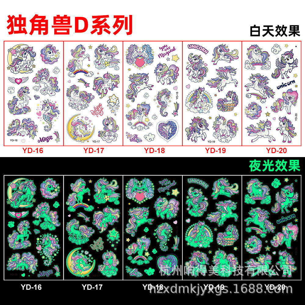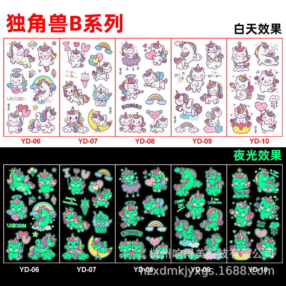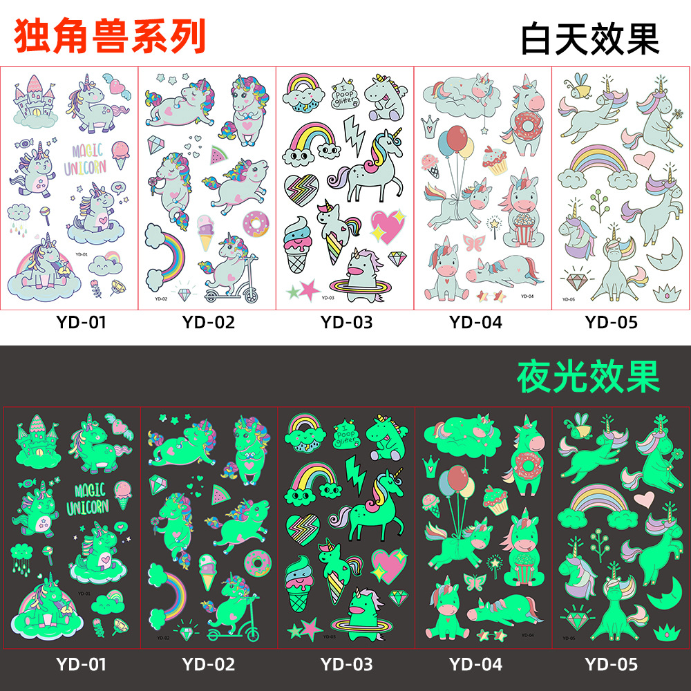 现货批发新款儿童卡通夜光纹身贴 恐龙 美人鱼 可爱派对文身贴纸