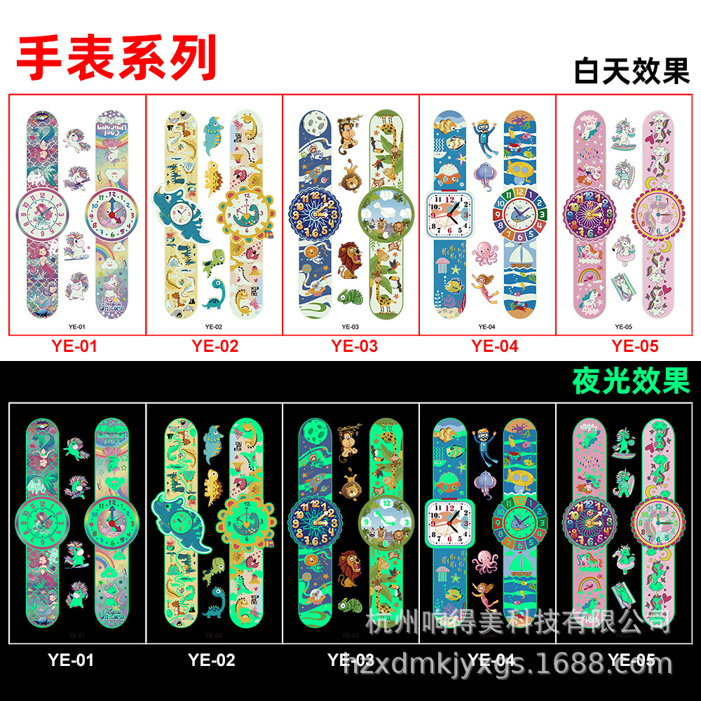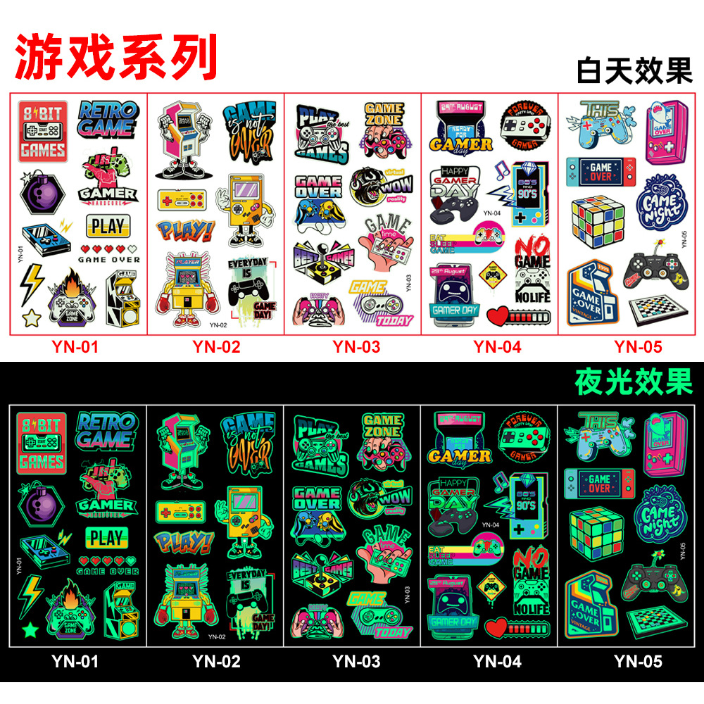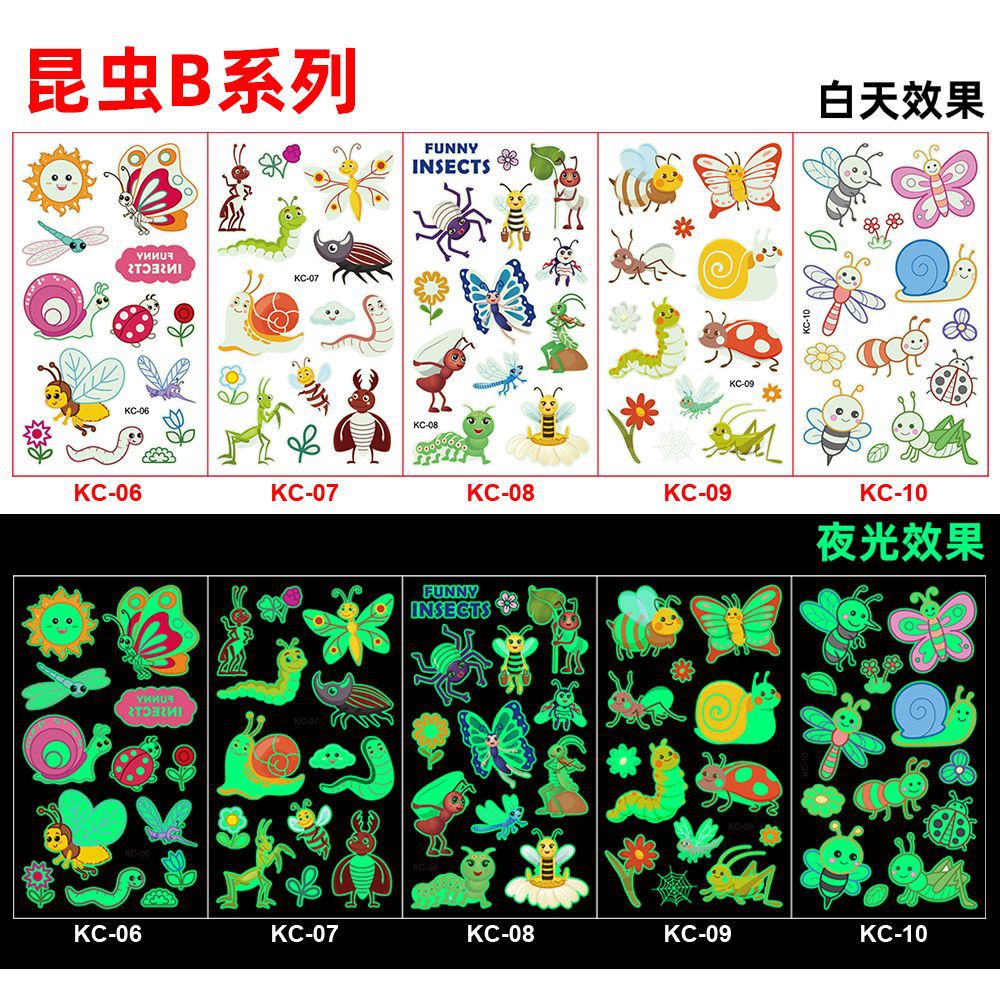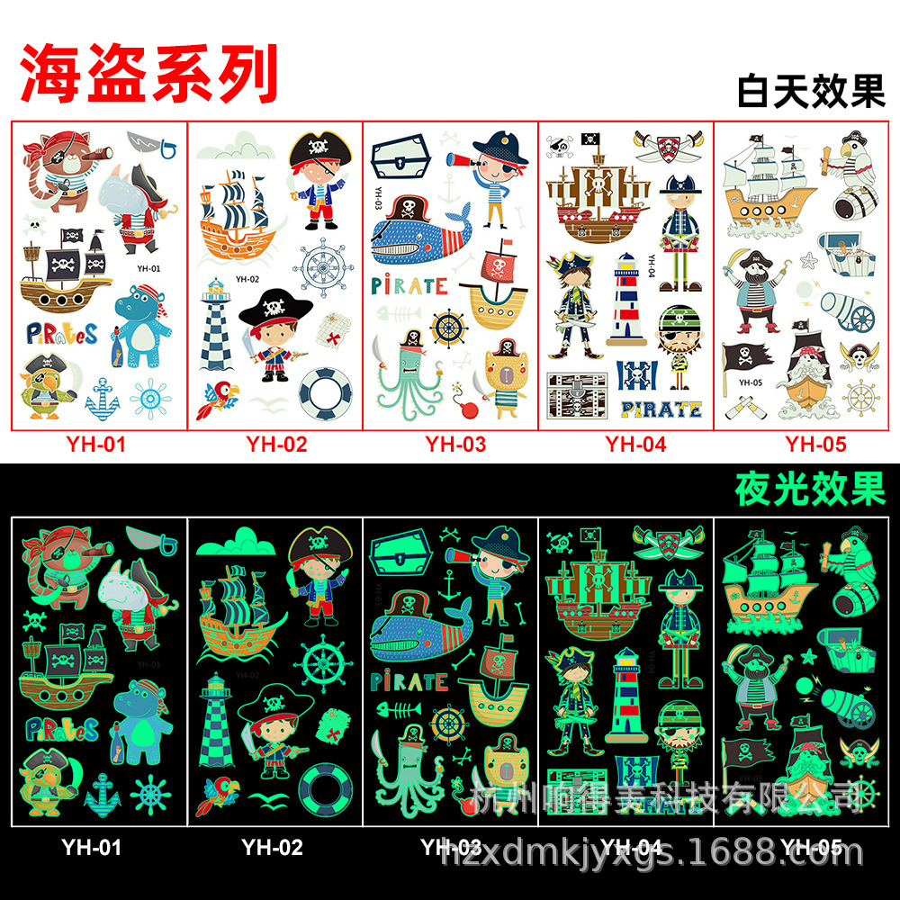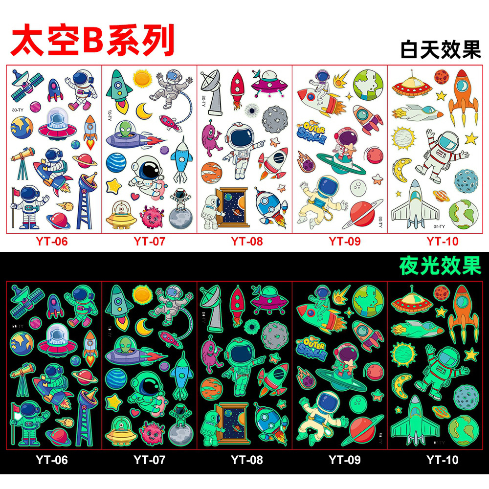 现货批发新款儿童卡通夜光纹身贴 恐龙 美人鱼 可爱派对文身贴纸