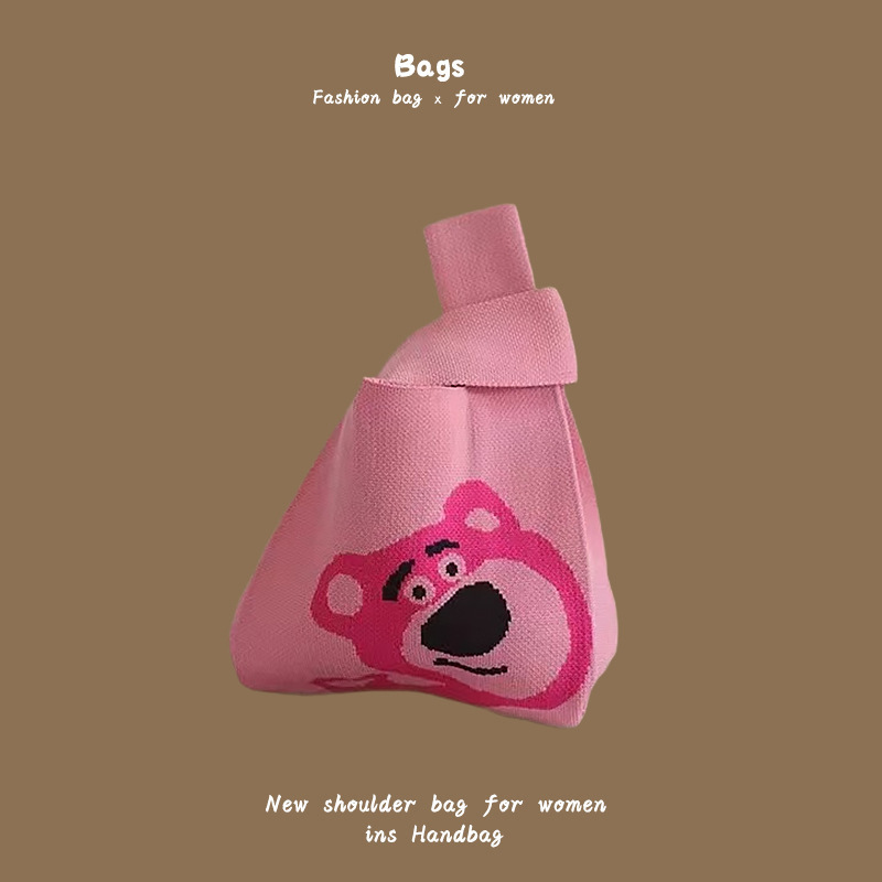 新款ins网红潮手提包女针织毛线水桶包手拎休闲托特包盒饭袋批发