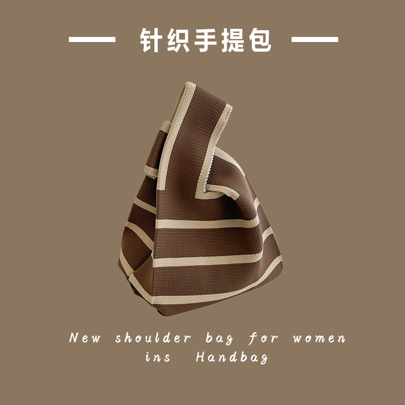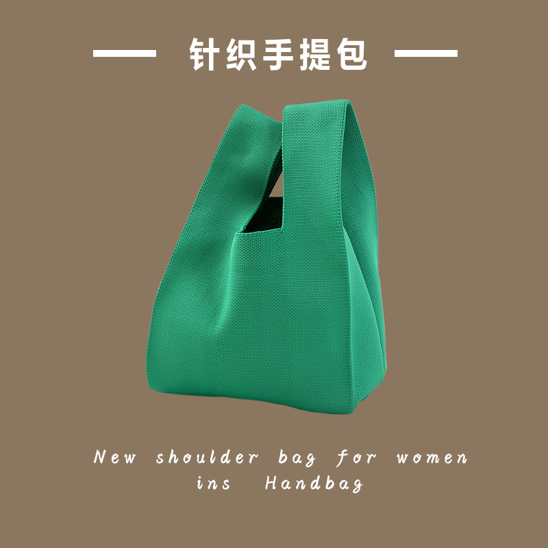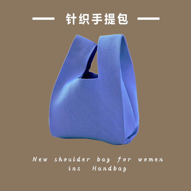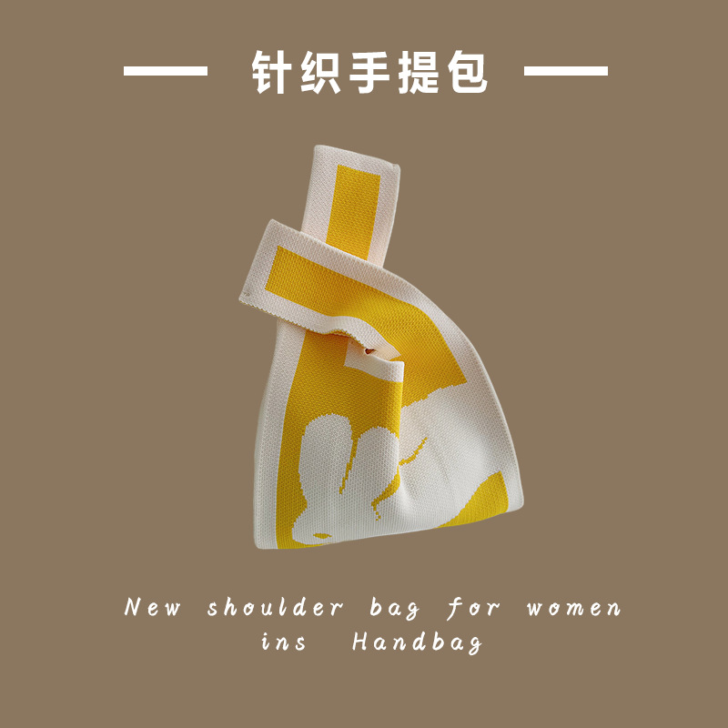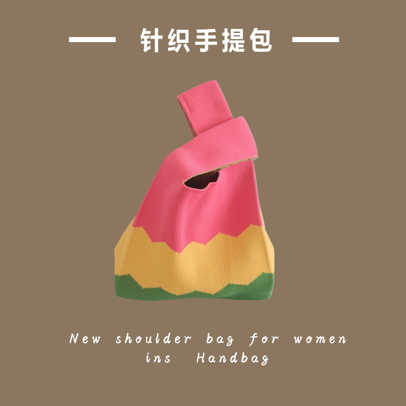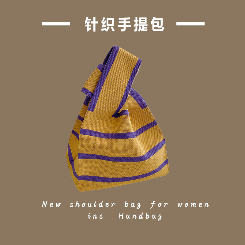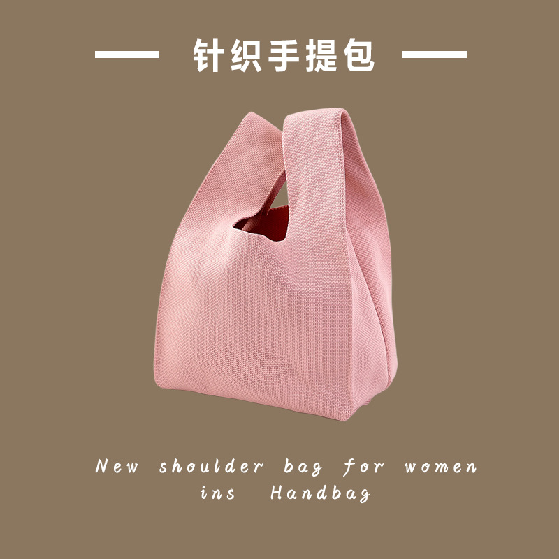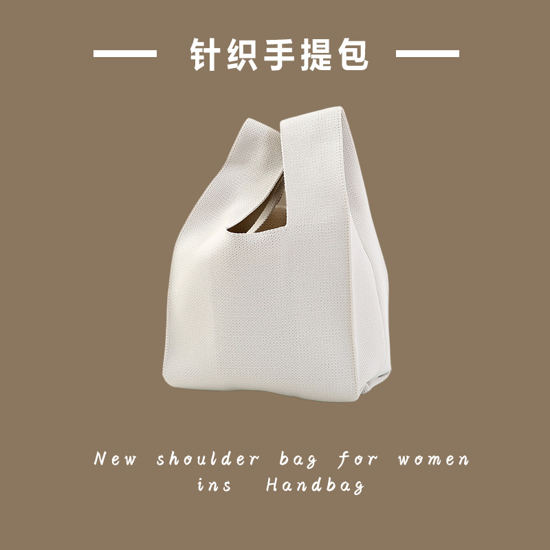 新款ins网红潮手提包女针织毛线水桶包手拎休闲托特包盒饭袋批发