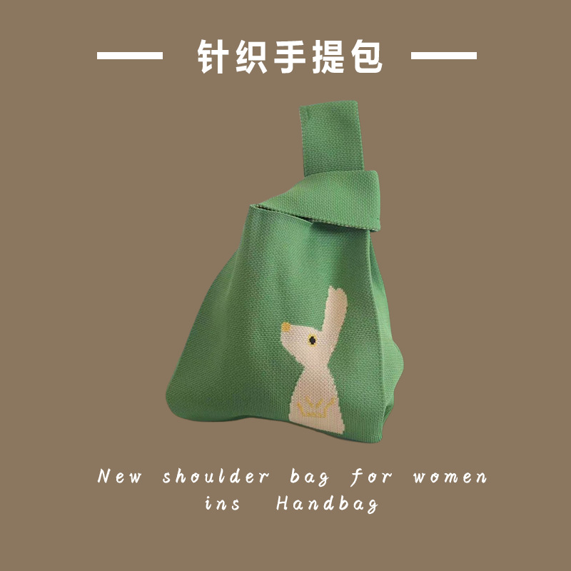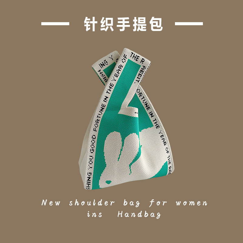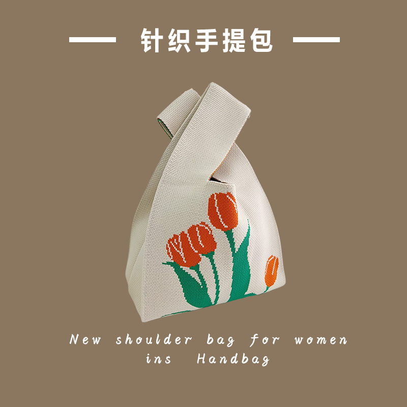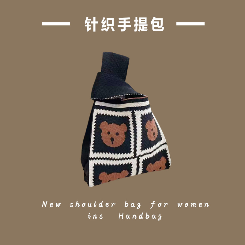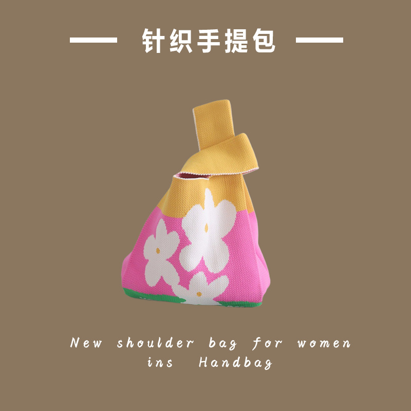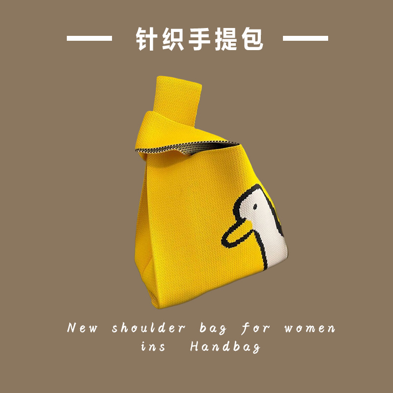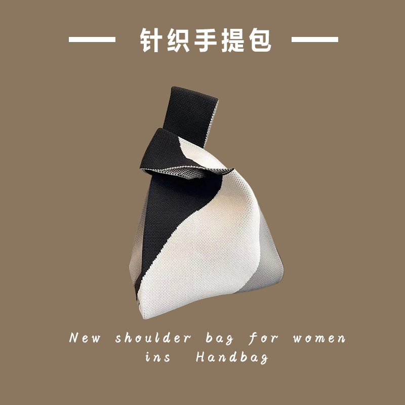 新款ins网红潮手提包女针织毛线水桶包手拎休闲托特包盒饭袋批发