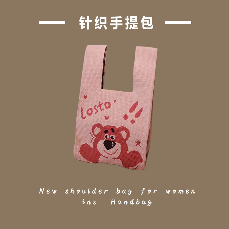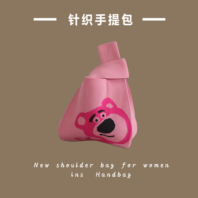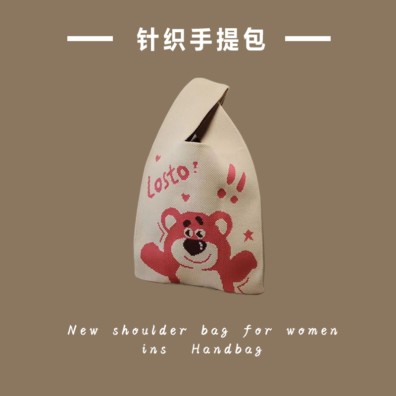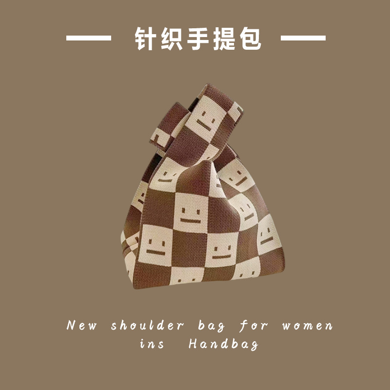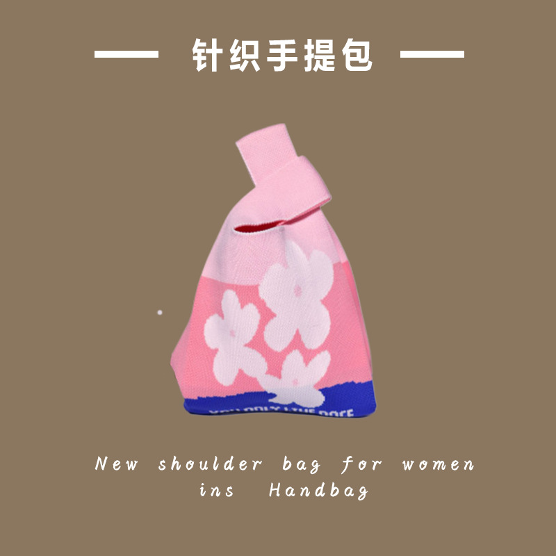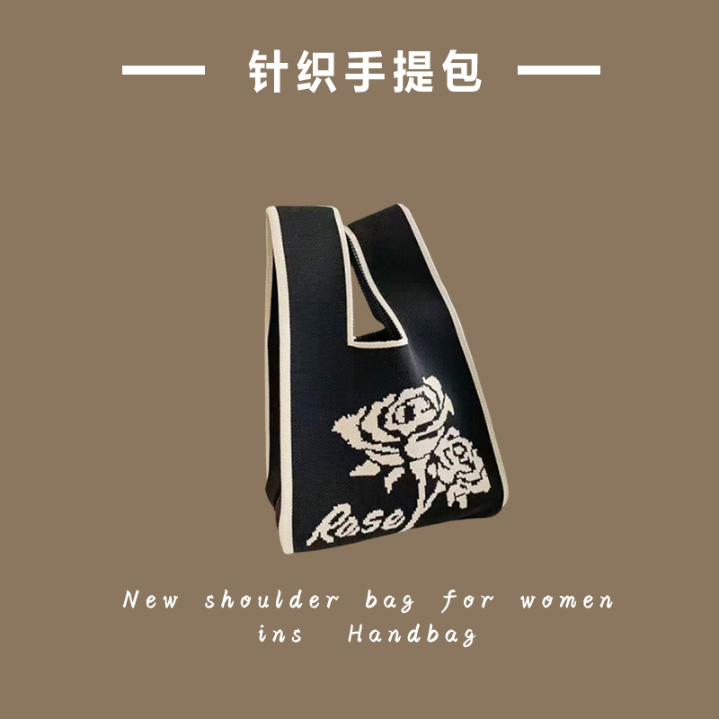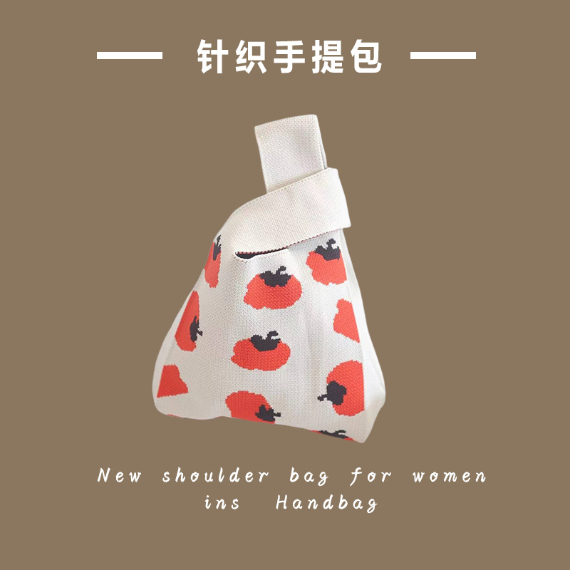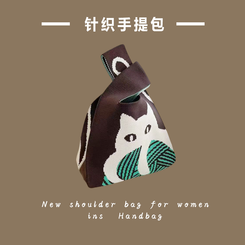 新款ins网红潮手提包女针织毛线水桶包手拎休闲托特包盒饭袋批发