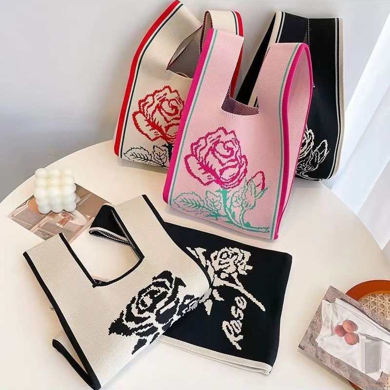 小众设计少女爱心拼色针织手提包女单肩编制新款百搭个性性感潮包