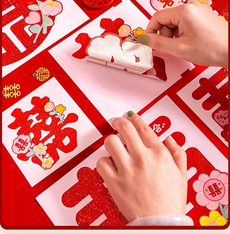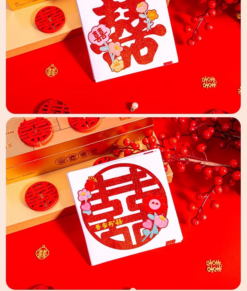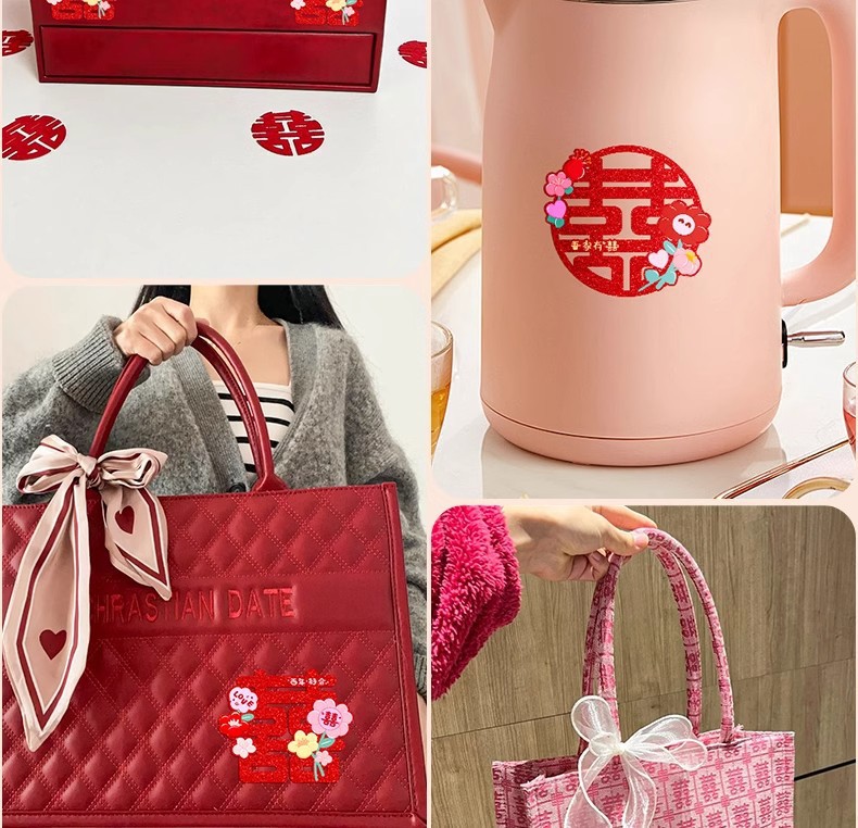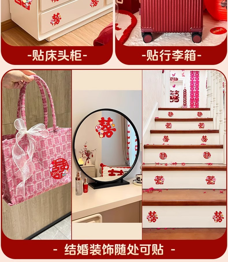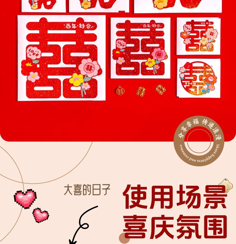 多巴胺镭射喜字结婚庆用品批发不干胶喜字贴金葱小囍字装饰彩色喜