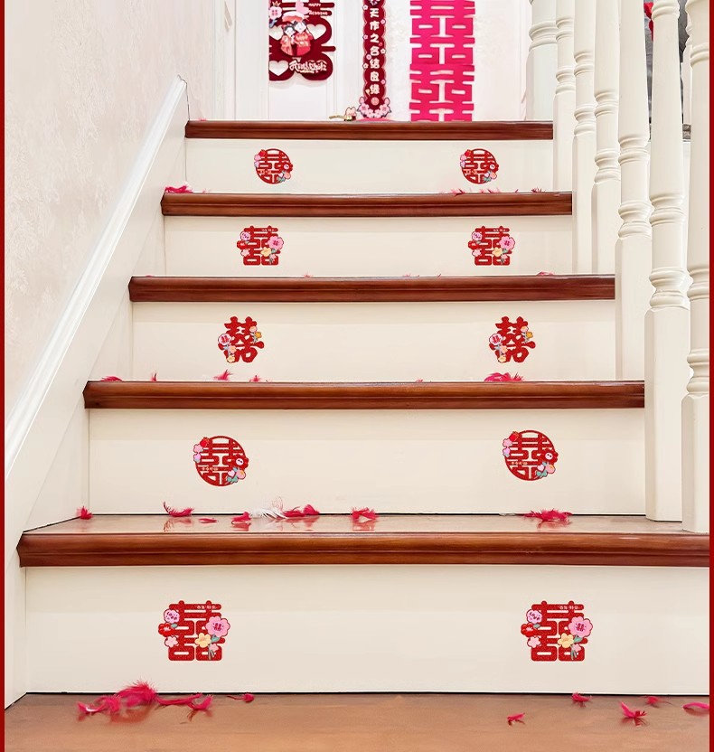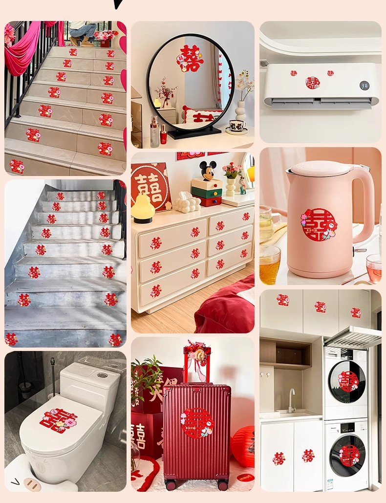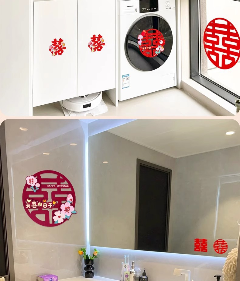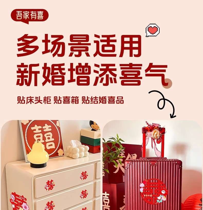 多巴胺镭射喜字结婚庆用品批发不干胶喜字贴金葱小囍字装饰彩色喜