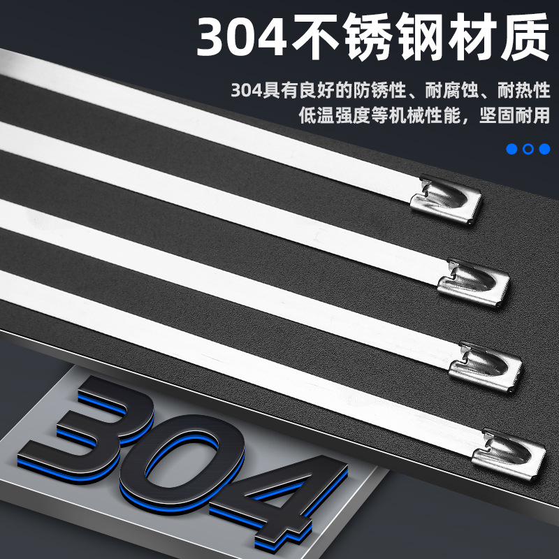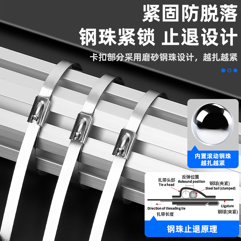 钢珠自锁式304不锈钢扎带4.6*300mm金属扎带钢扎带束线带电缆扎带