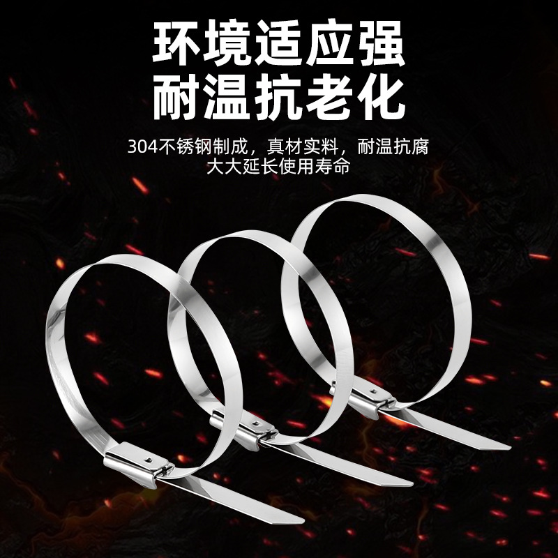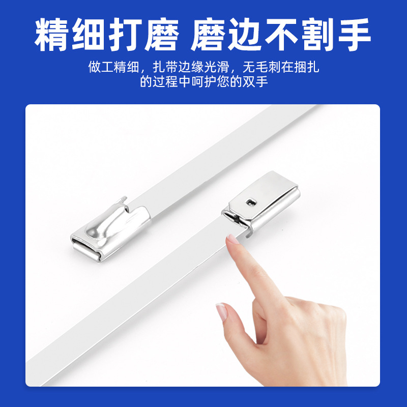 304不锈钢扎带钢珠自锁4.6mm 7.9mm耐高温船舶金属扎带束线收紧器
