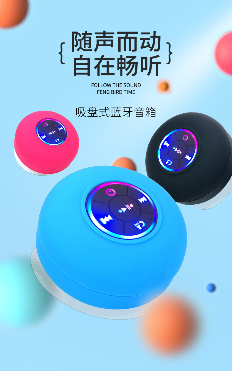 跨境热销大吸盘带灯版防水蓝牙音响LED炫彩BTS07礼品音箱可印logo