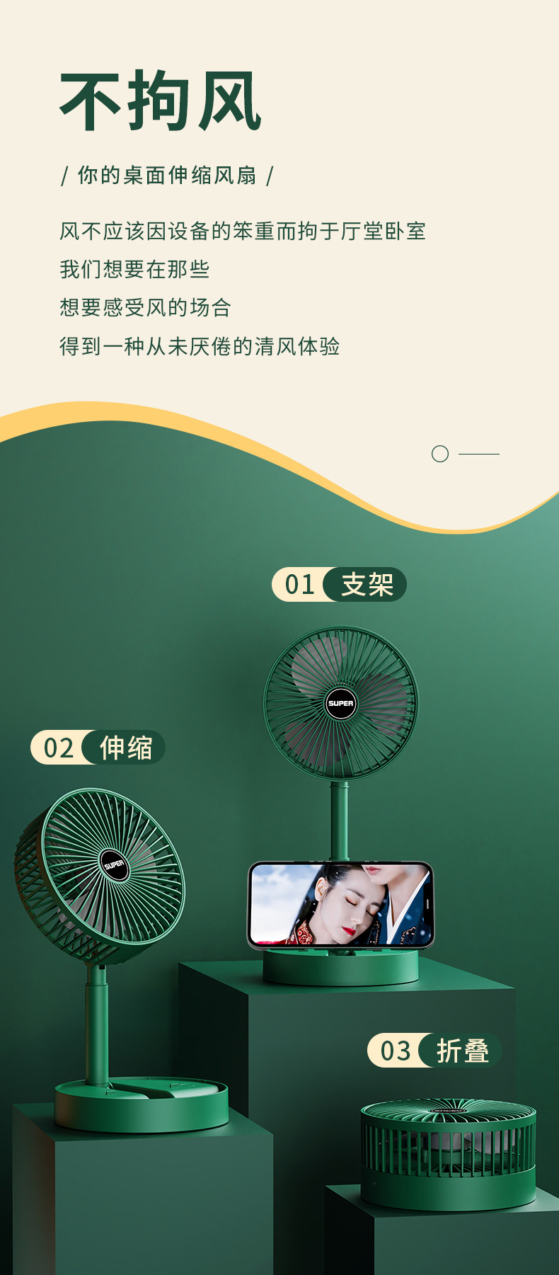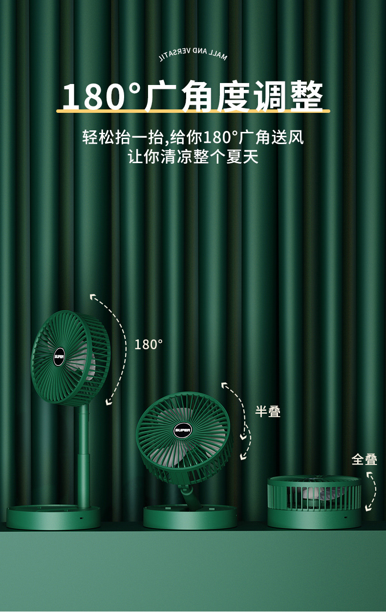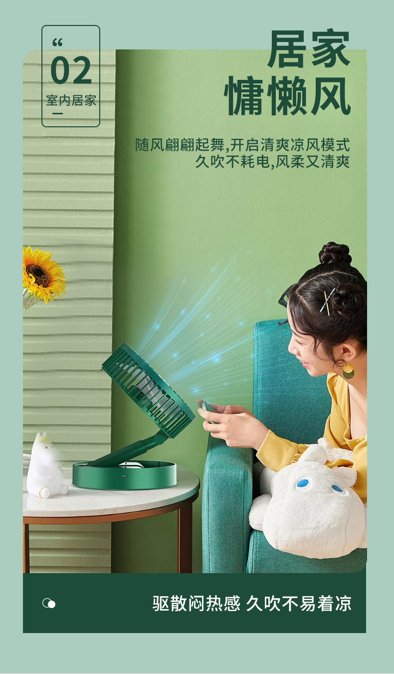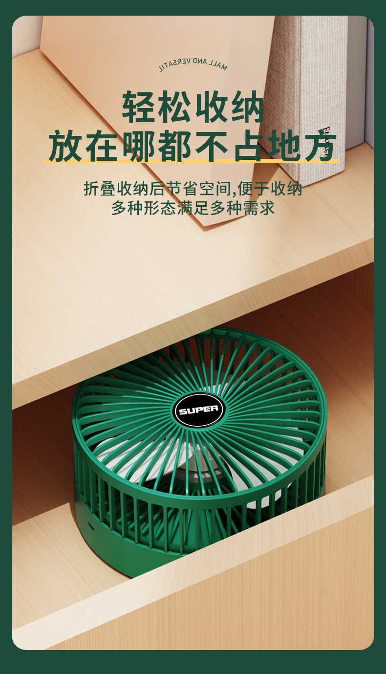 2023usb充电小风扇家用折叠落地台扇家用手持宿舍床上桌面多功能
