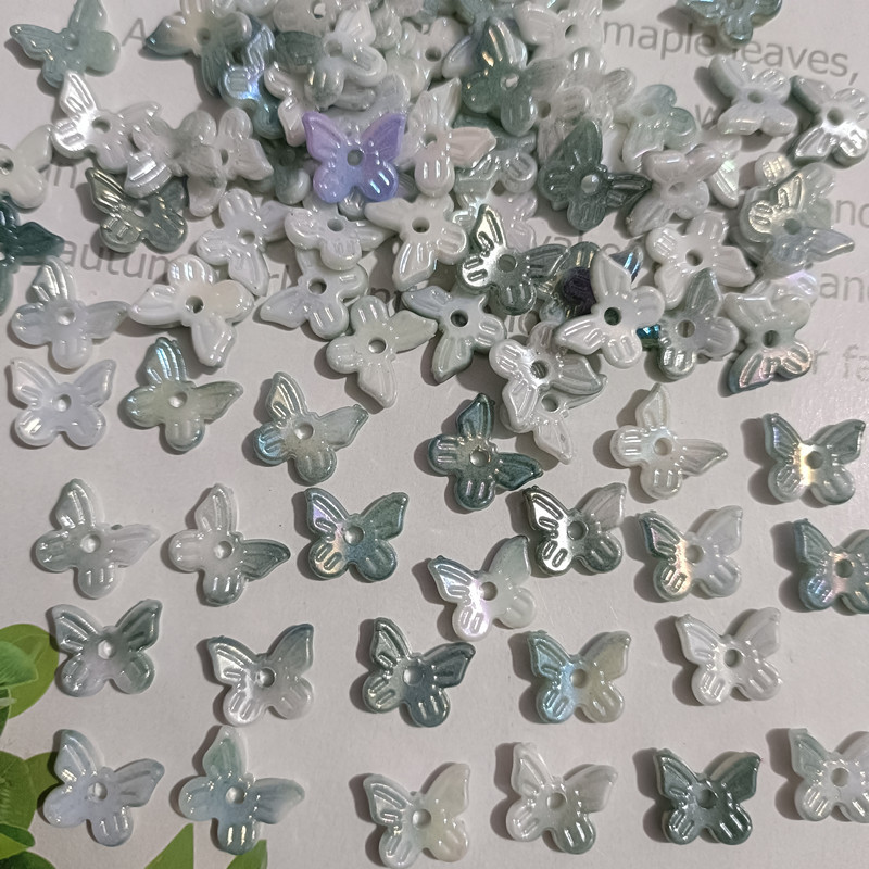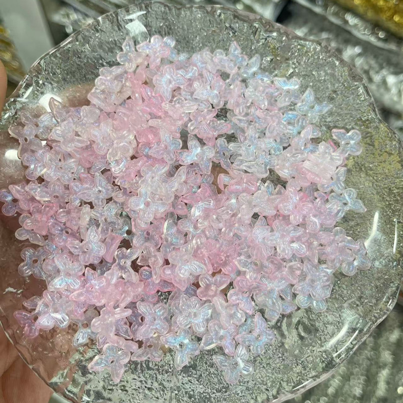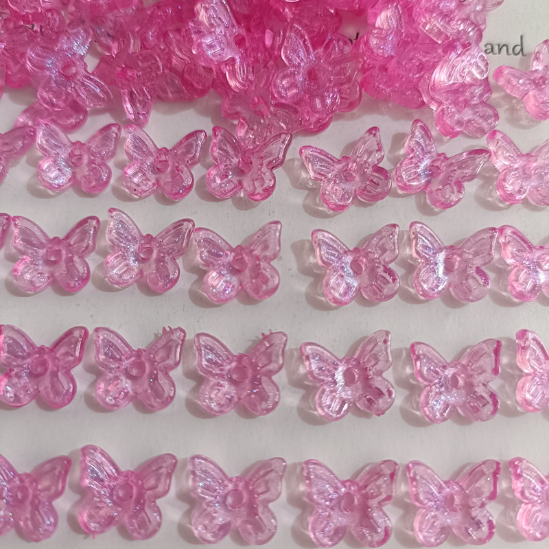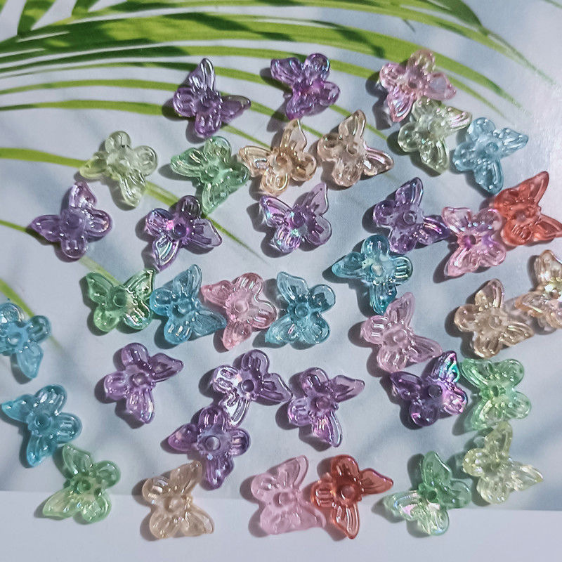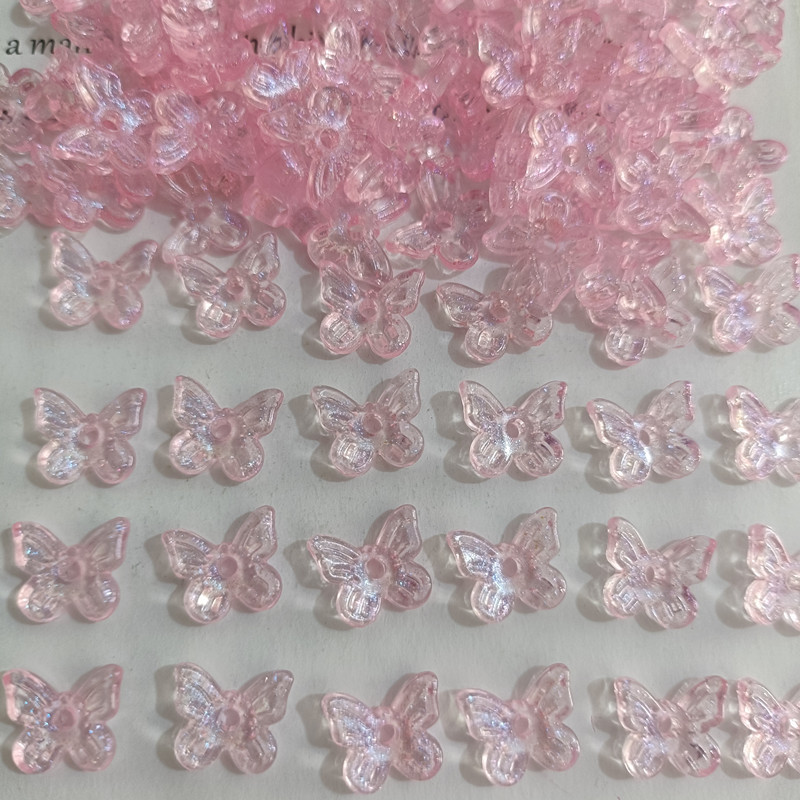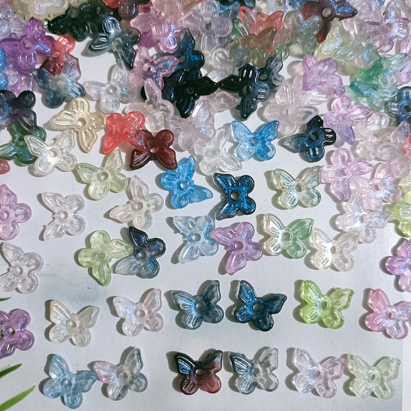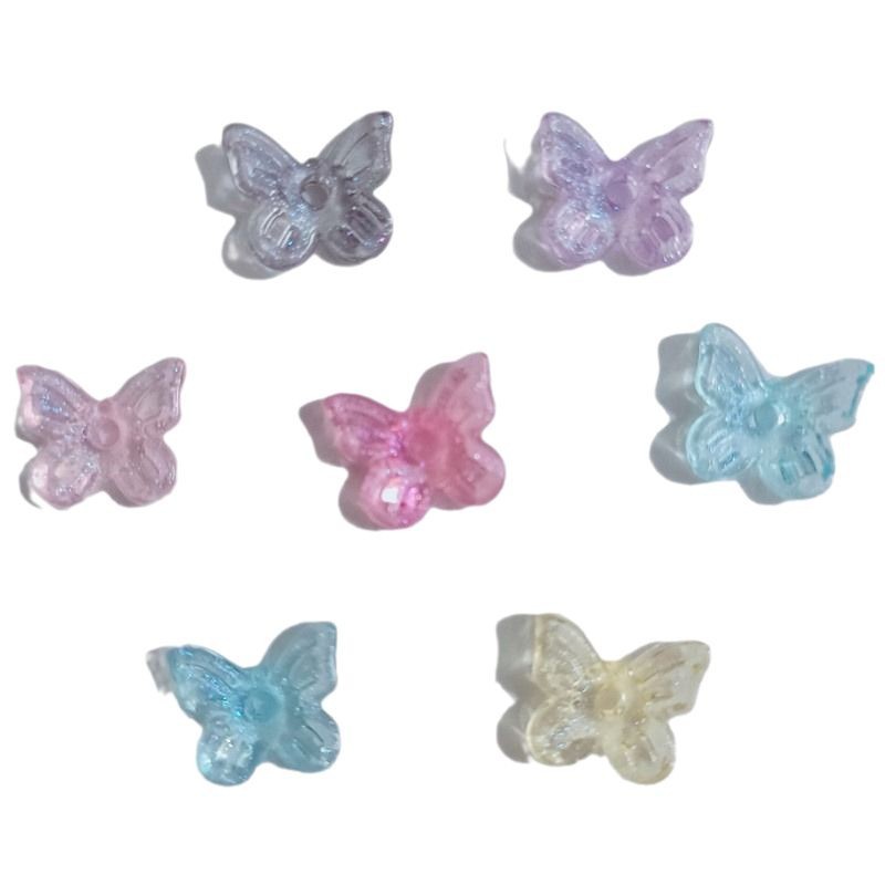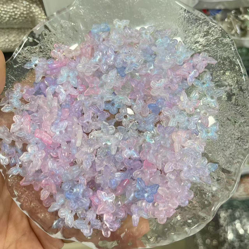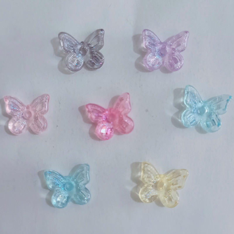 爆款透明双色闪粉幻彩中孔小蝴蝶串珠diy头饰吊饰饰品配件批发