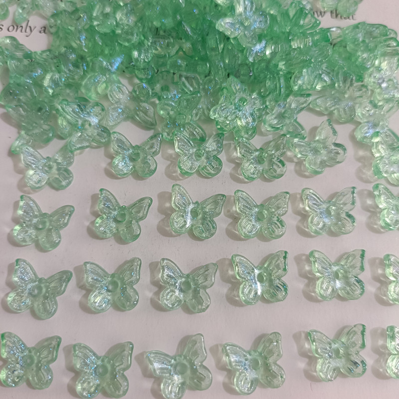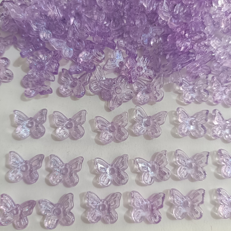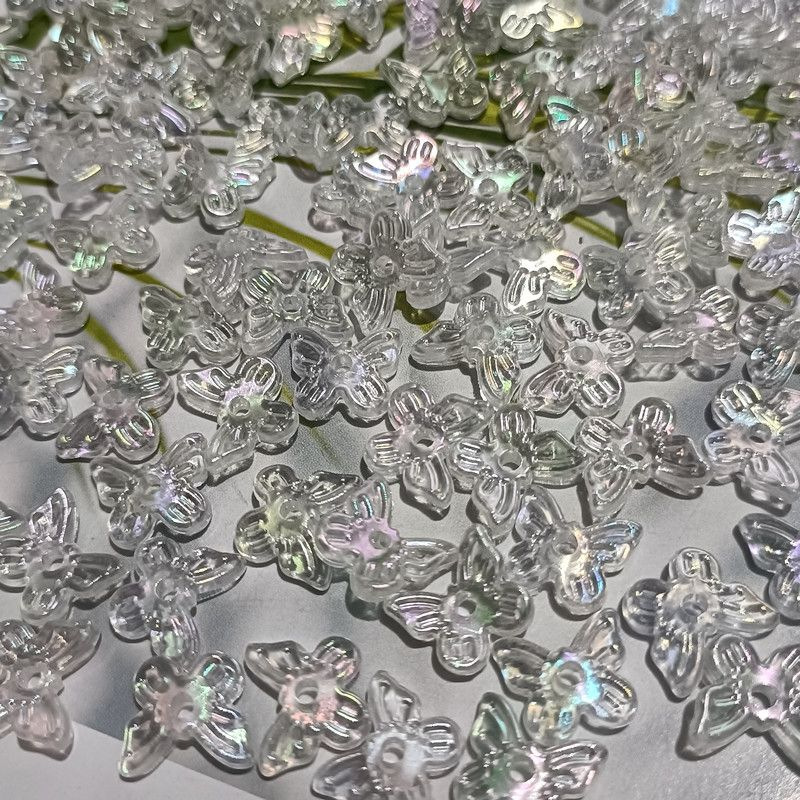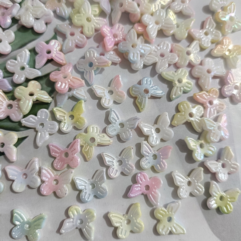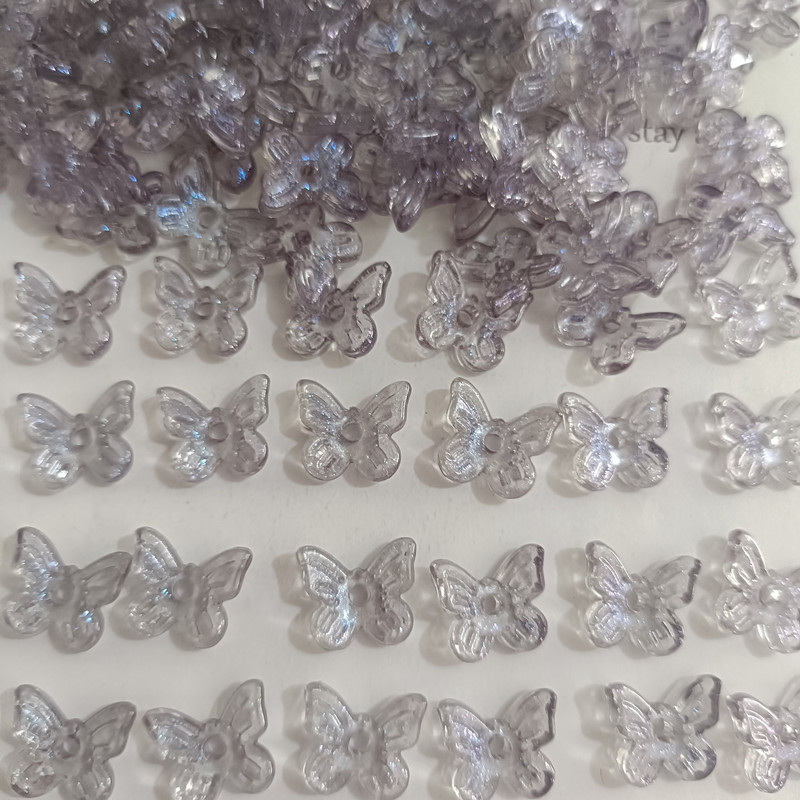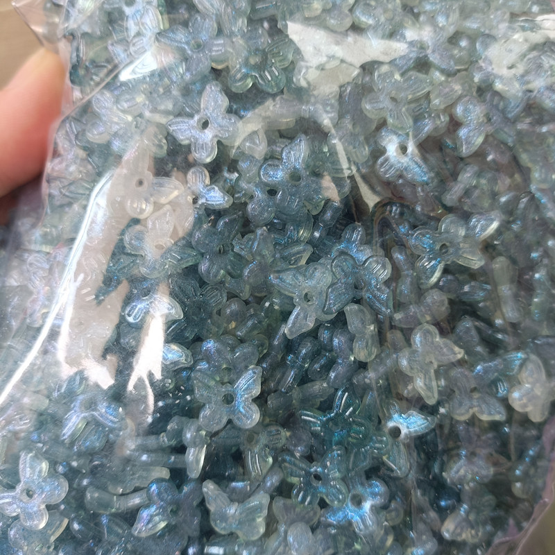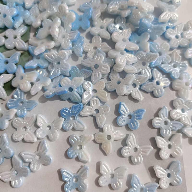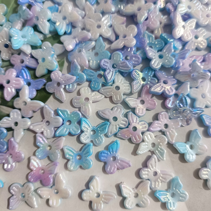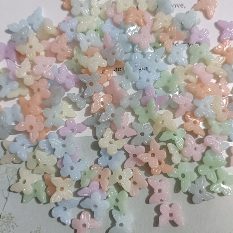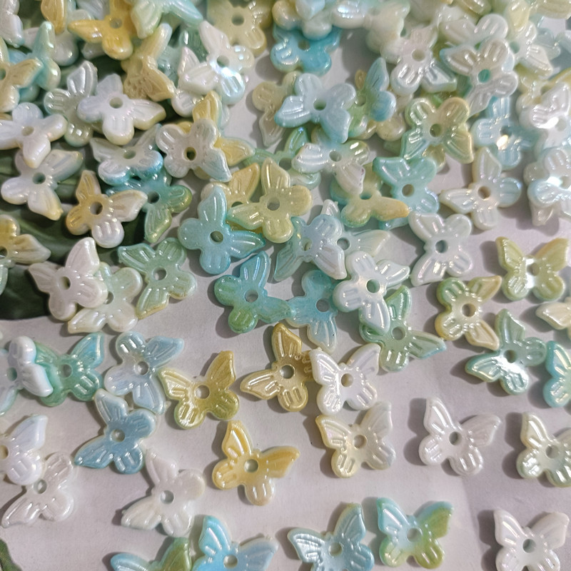 爆款透明双色闪粉幻彩中孔小蝴蝶串珠diy头饰吊饰饰品配件批发