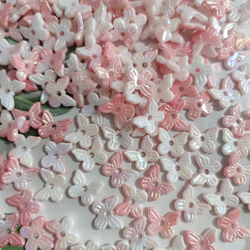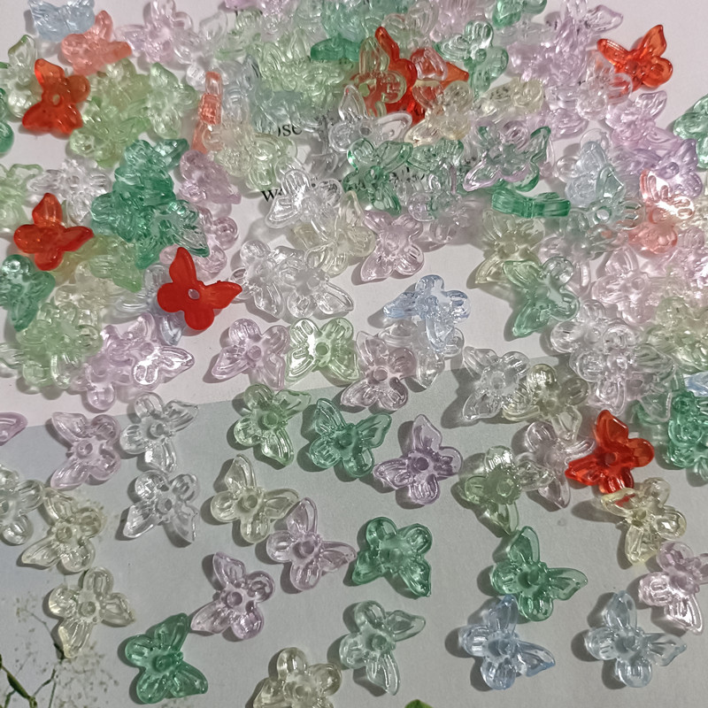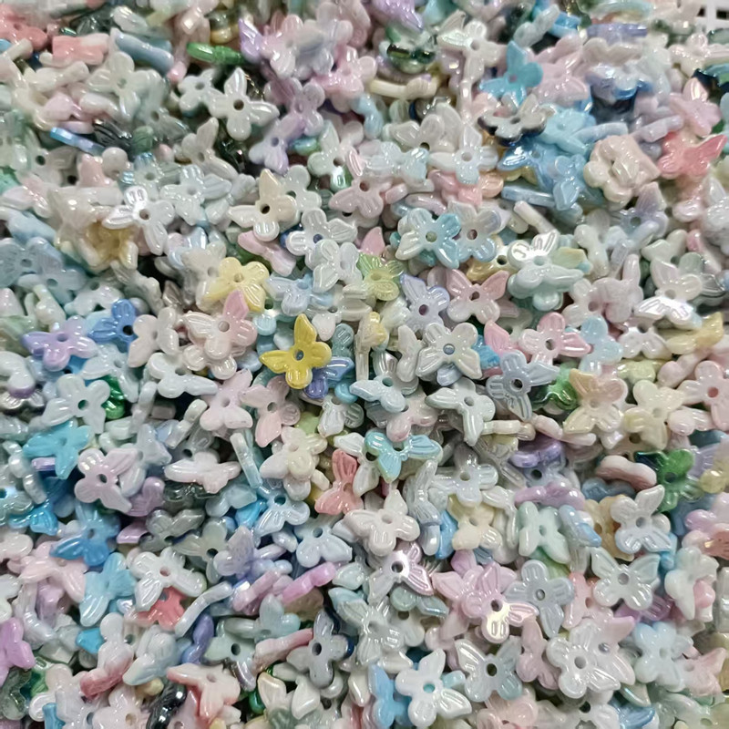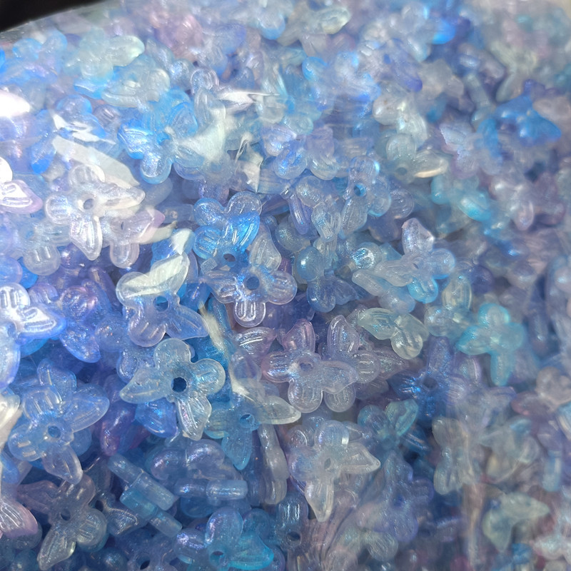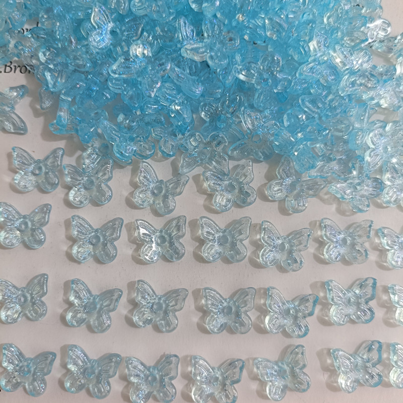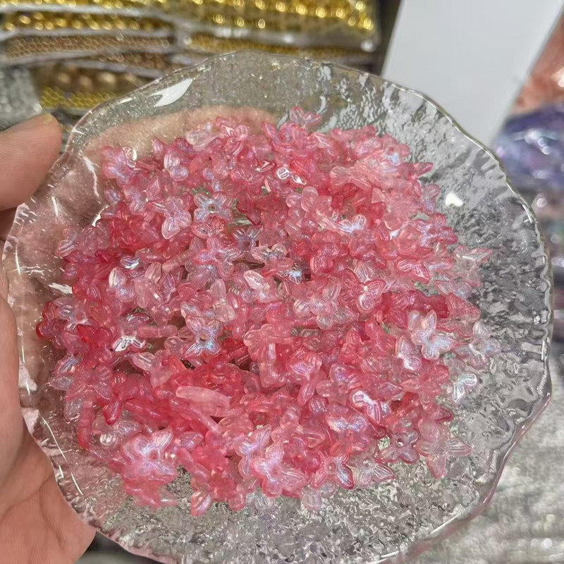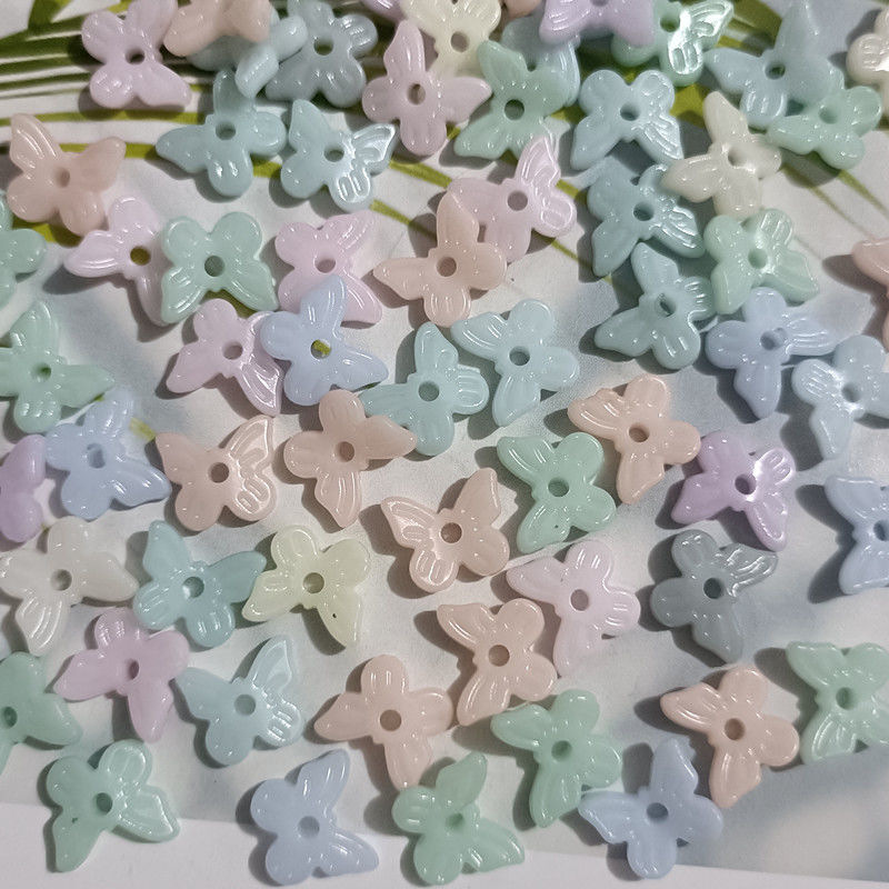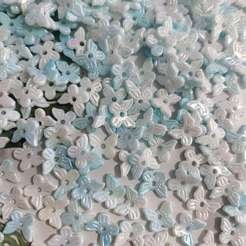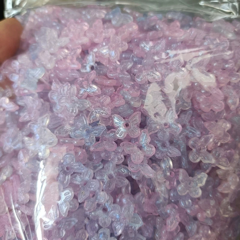 爆款透明双色闪粉幻彩中孔小蝴蝶串珠diy头饰吊饰饰品配件批发