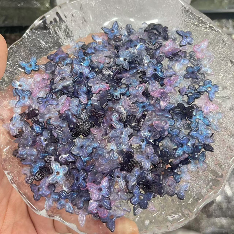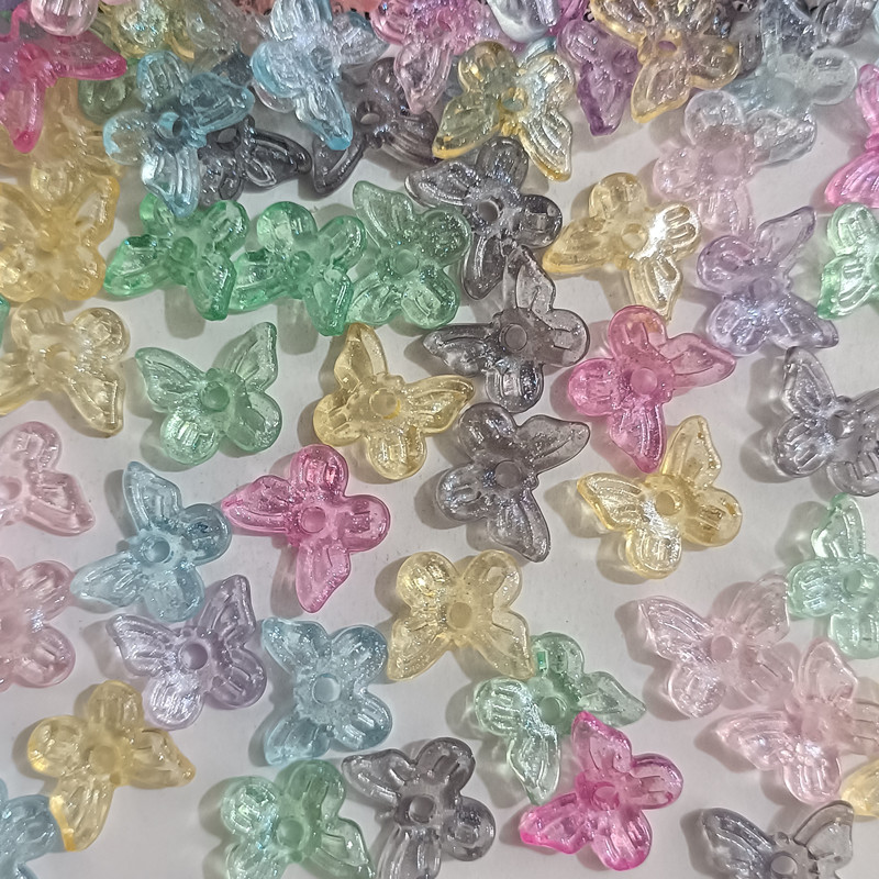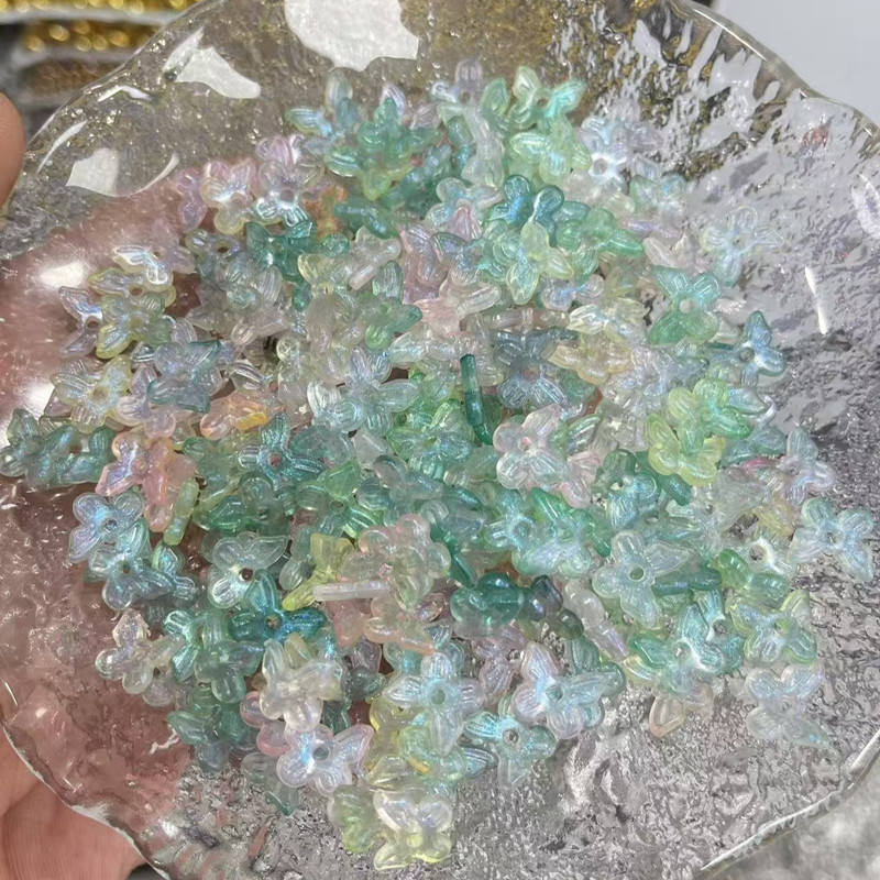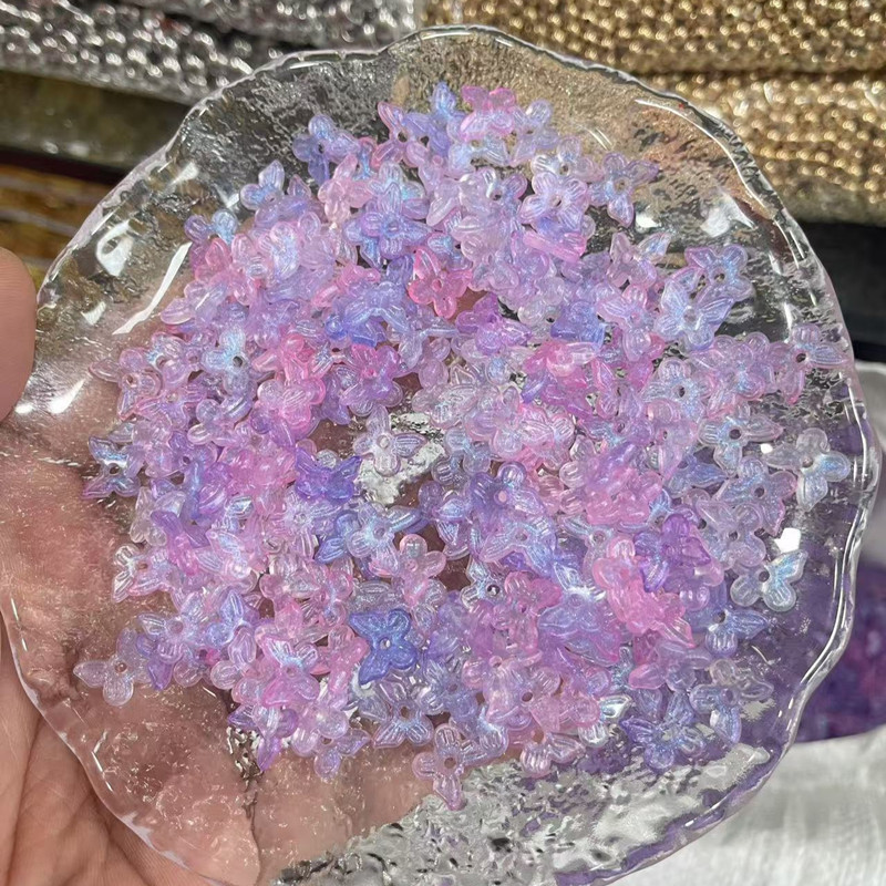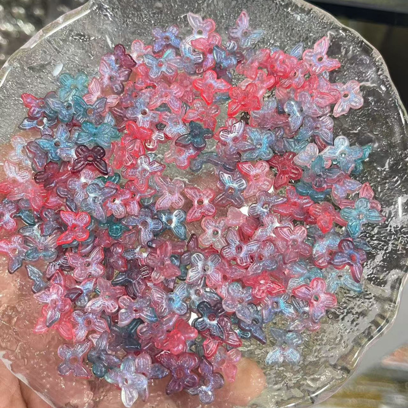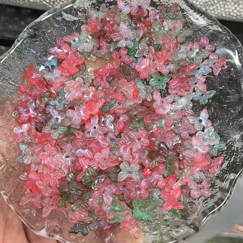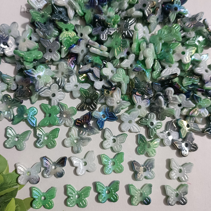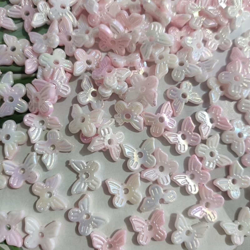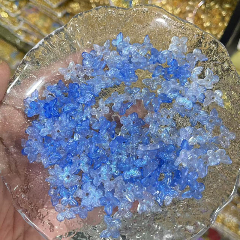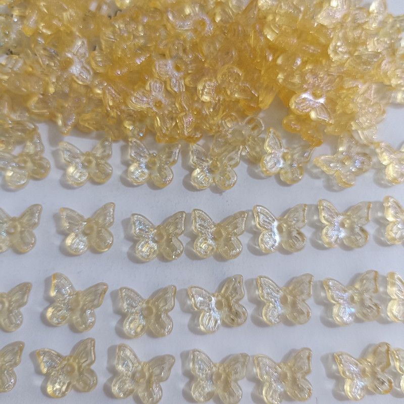 爆款透明双色闪粉幻彩中孔小蝴蝶串珠diy头饰吊饰饰品配件批发