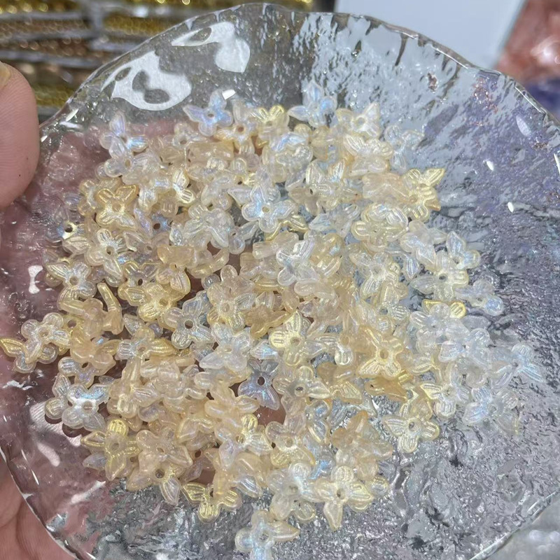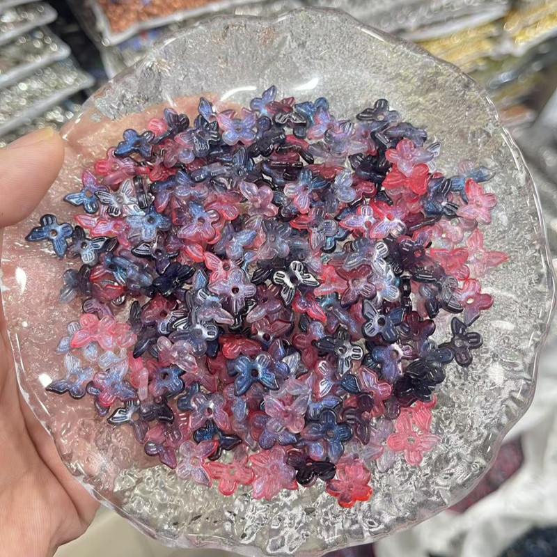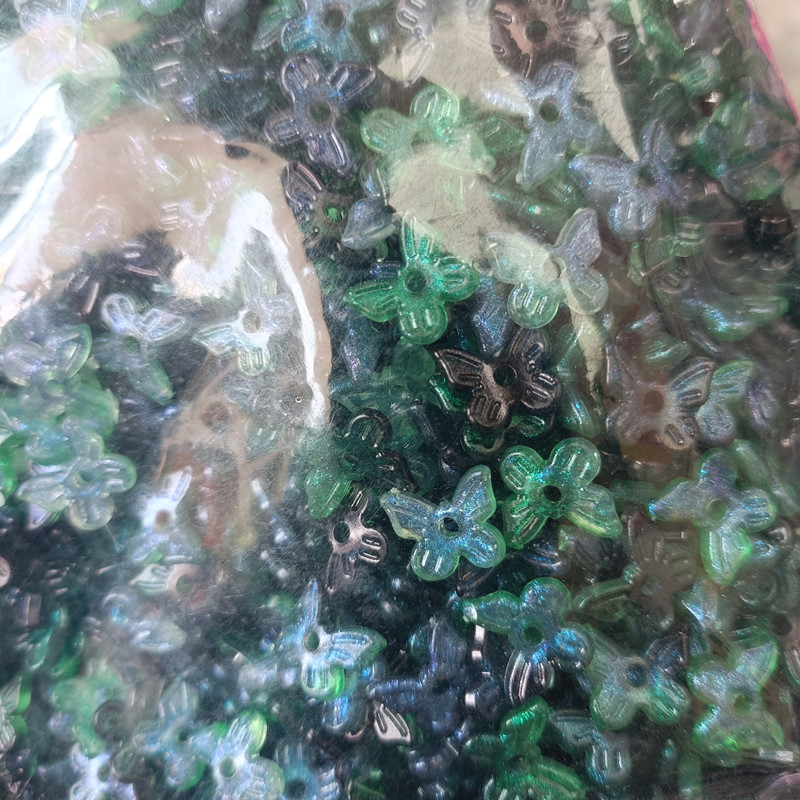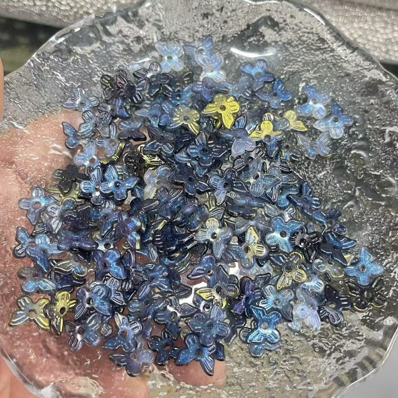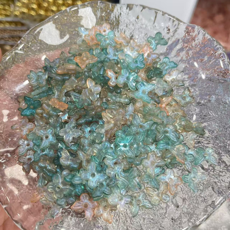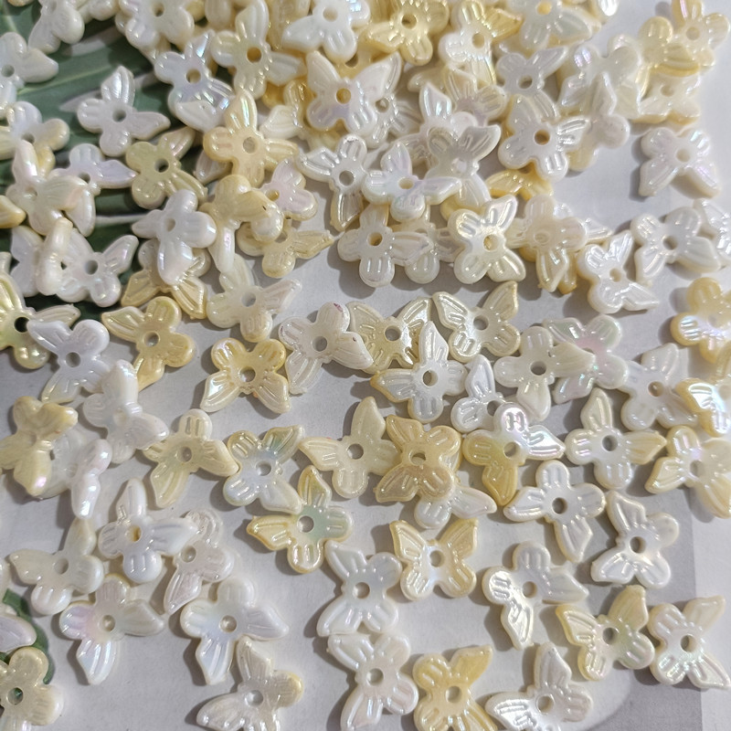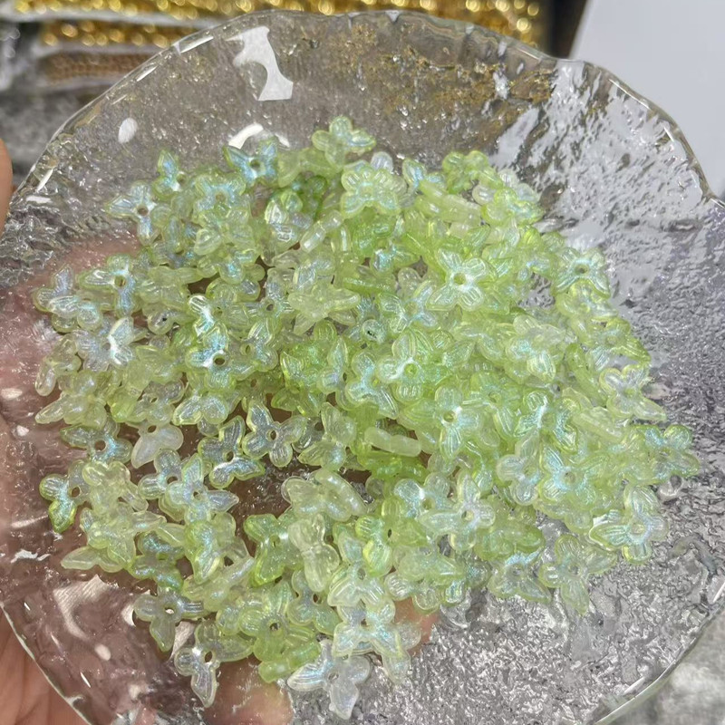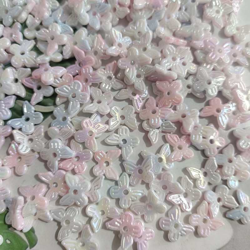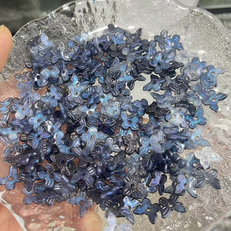爆款透明双色闪粉幻彩中孔小蝴蝶串珠diy头饰吊饰饰品配件批发