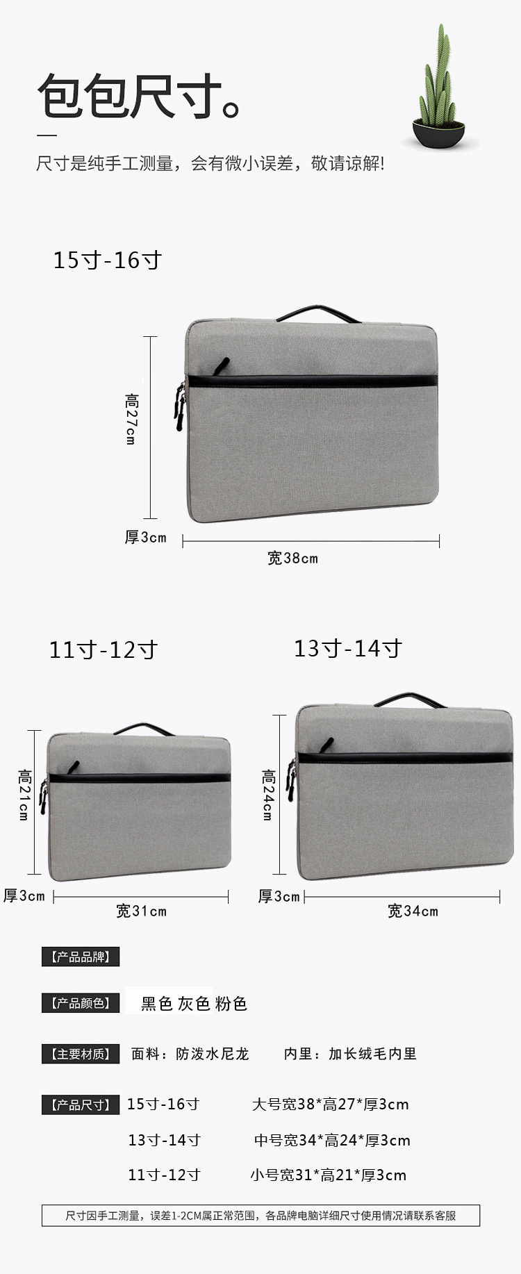 手提笔记本内胆平板电脑包12寸14寸15寸粉色男女简约绒布电脑包