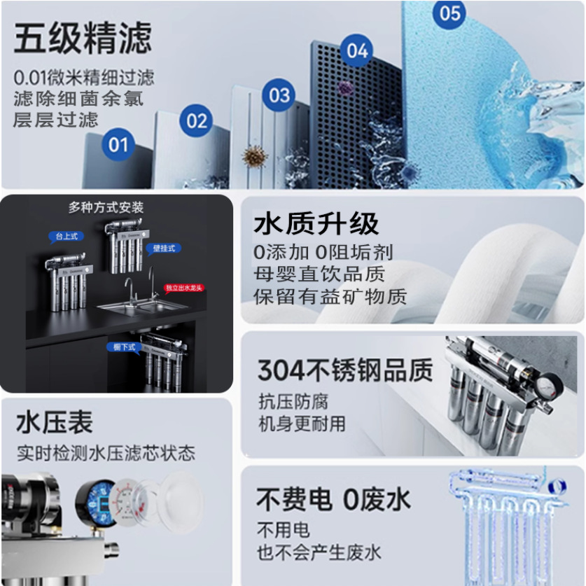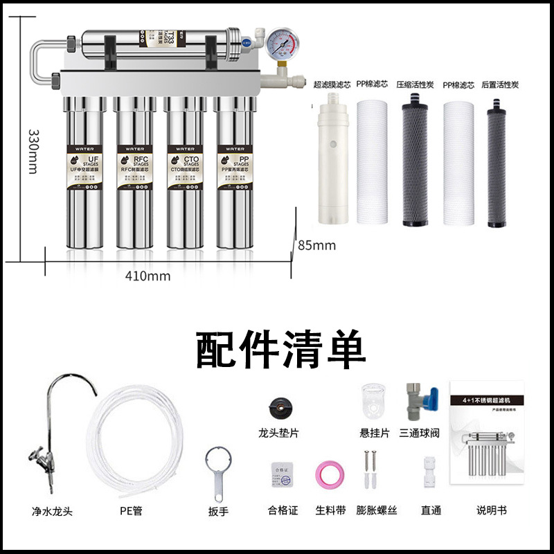家用直饮厨房净水器 自来水龙头前置过滤器五级超滤不锈钢净水机