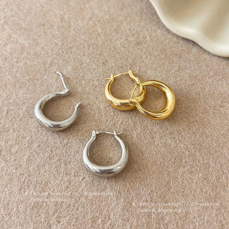 韩系爆款冷淡风金属感耳环女轻奢小众欧美夸张几何形耳扣耳钉批发