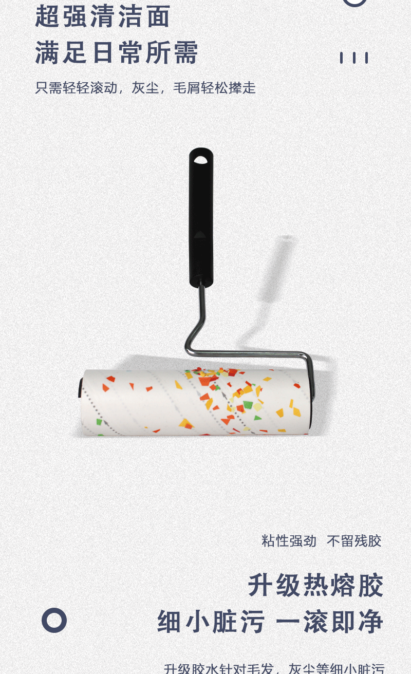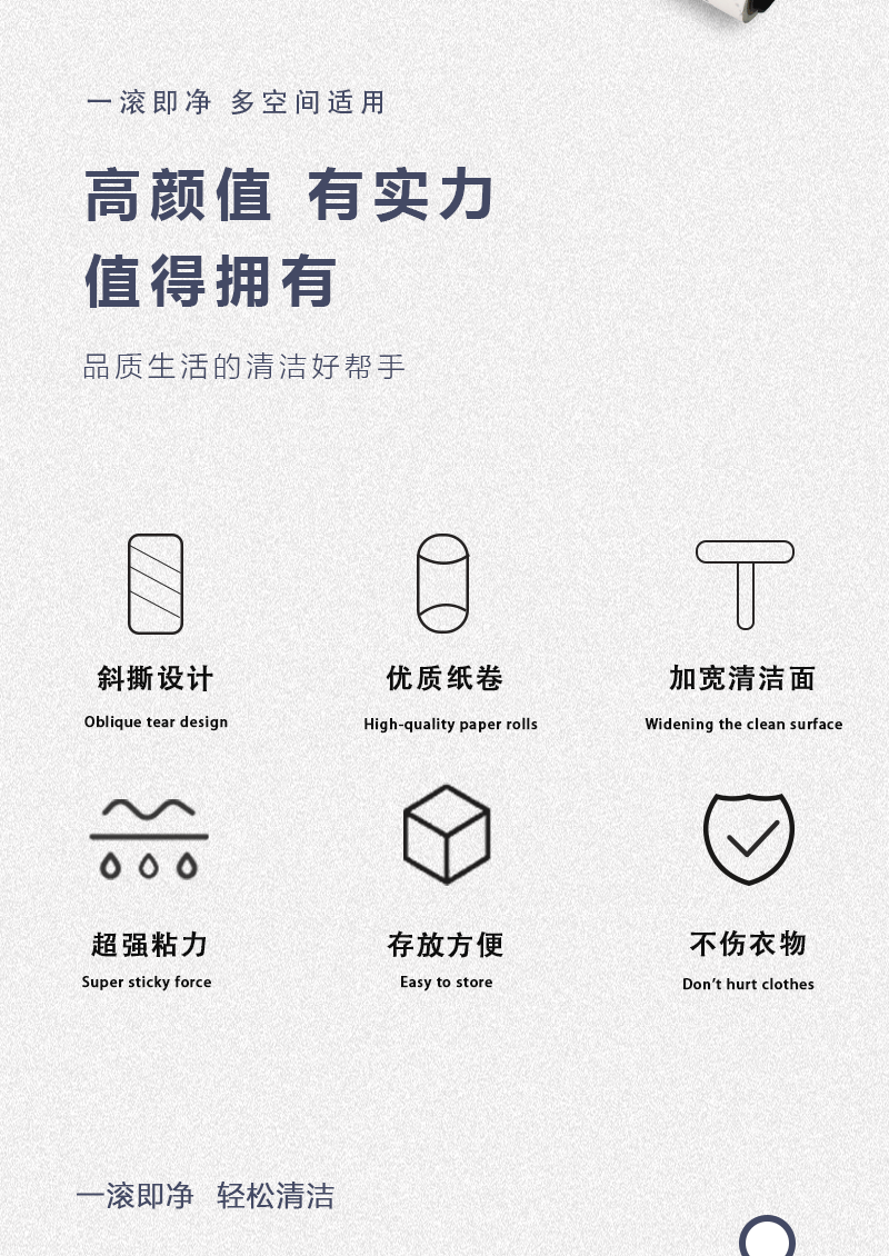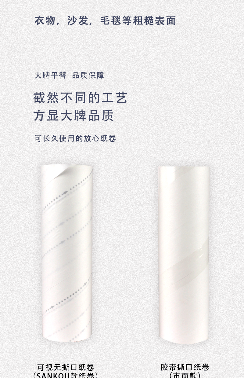 自主生产粘毛器可斜撕滚筒去毛刷清洁胶带粘毛除尘卷纸粘尘纸套装