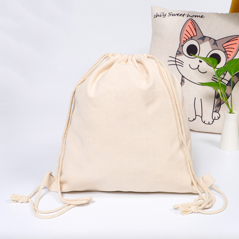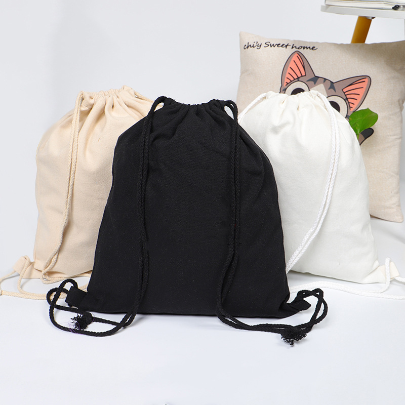 束口袋空白现货帆布收纳布袋可定制logo印花抽绳书本背带双肩背包