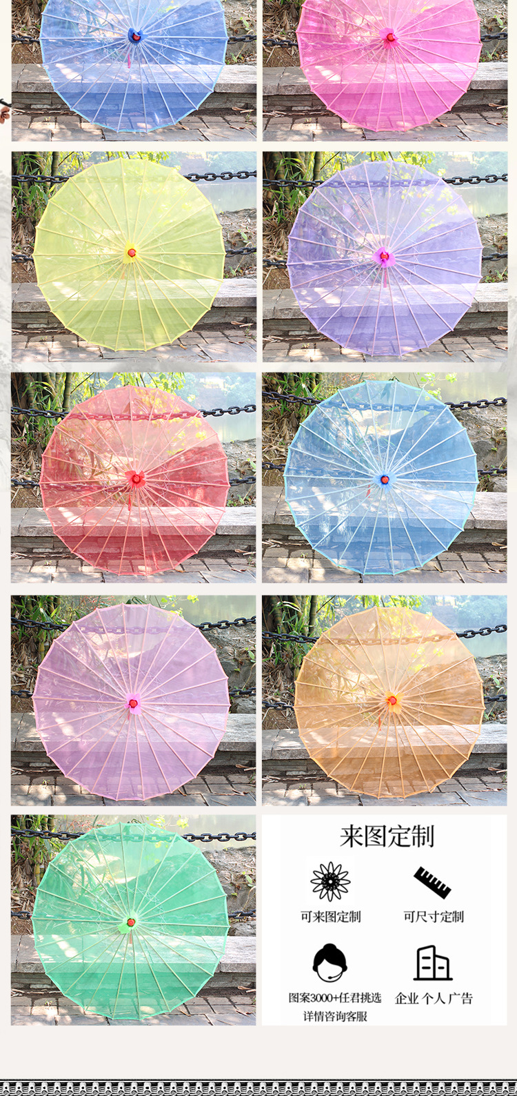 丝绢跳舞伞工艺伞古风演出道具油纸伞装饰伞旗袍走秀透明纯色伞