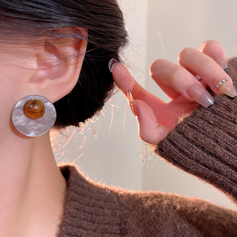 港风复古美拉德咖色简约几何形耳环女轻奢小众百搭气质耳钉耳饰品