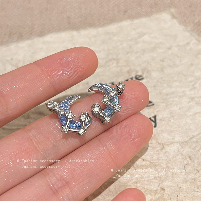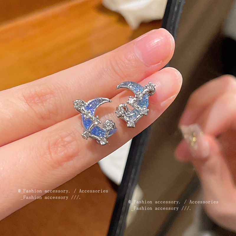 轻奢小众高级感梦幻蓝色月亮星星耳钉S925银针高级感网红同款耳环