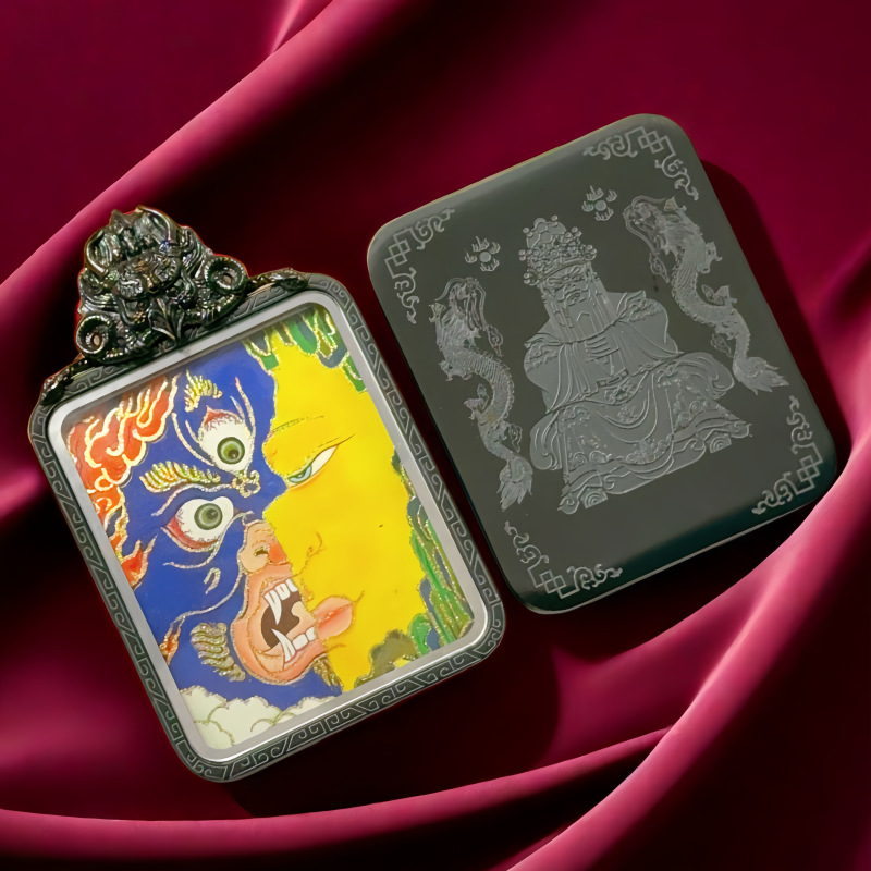 钛钢大鹏鸟唐卡盒吊坠 金色嘎乌盒防水唐卡项链扎基拉姆4*5不锈钢
