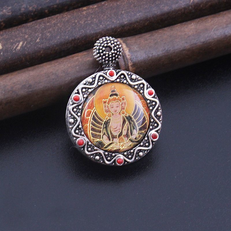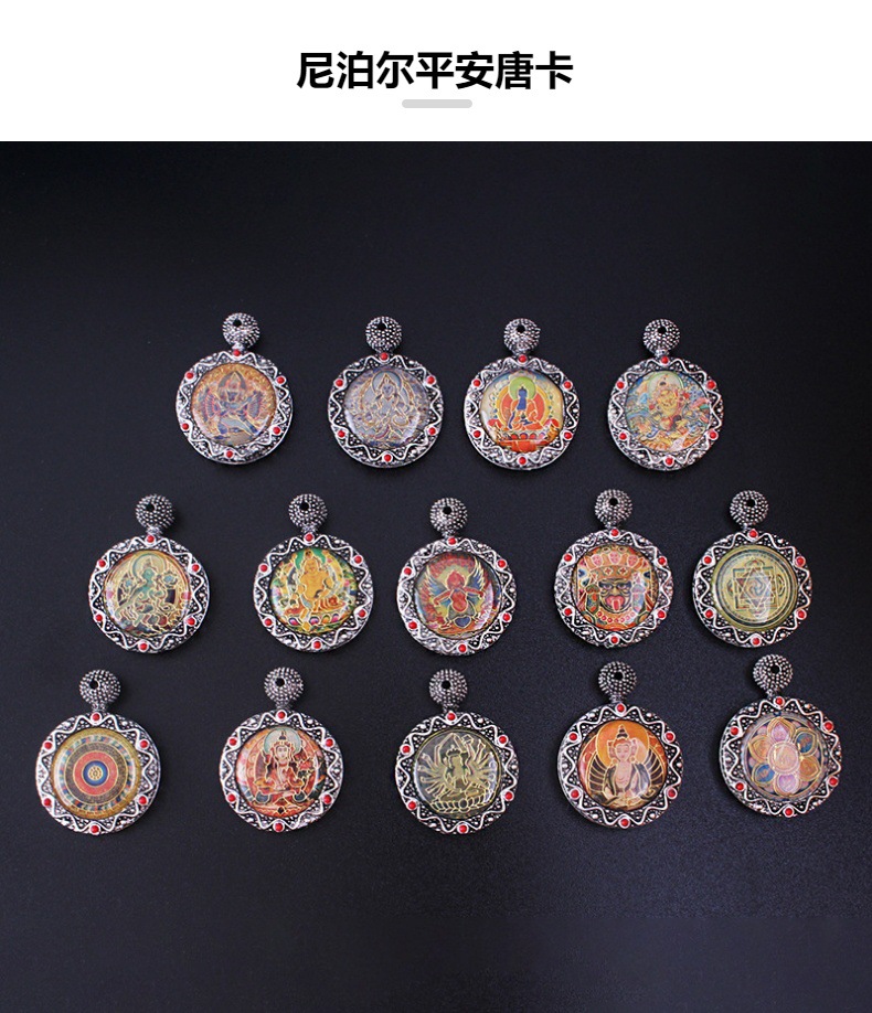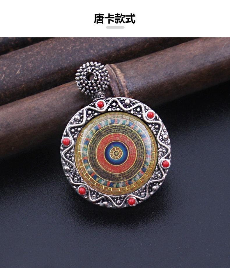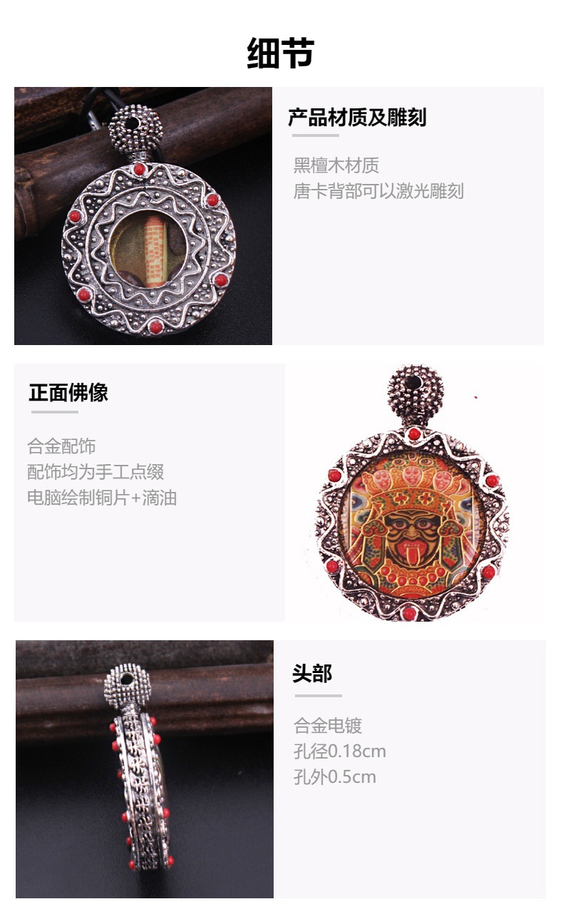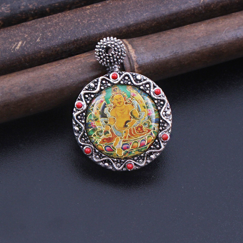 唐卡随身佛牌合金吊坠六字真言黄财神项链吊坠带经文迷你唐卡画盒