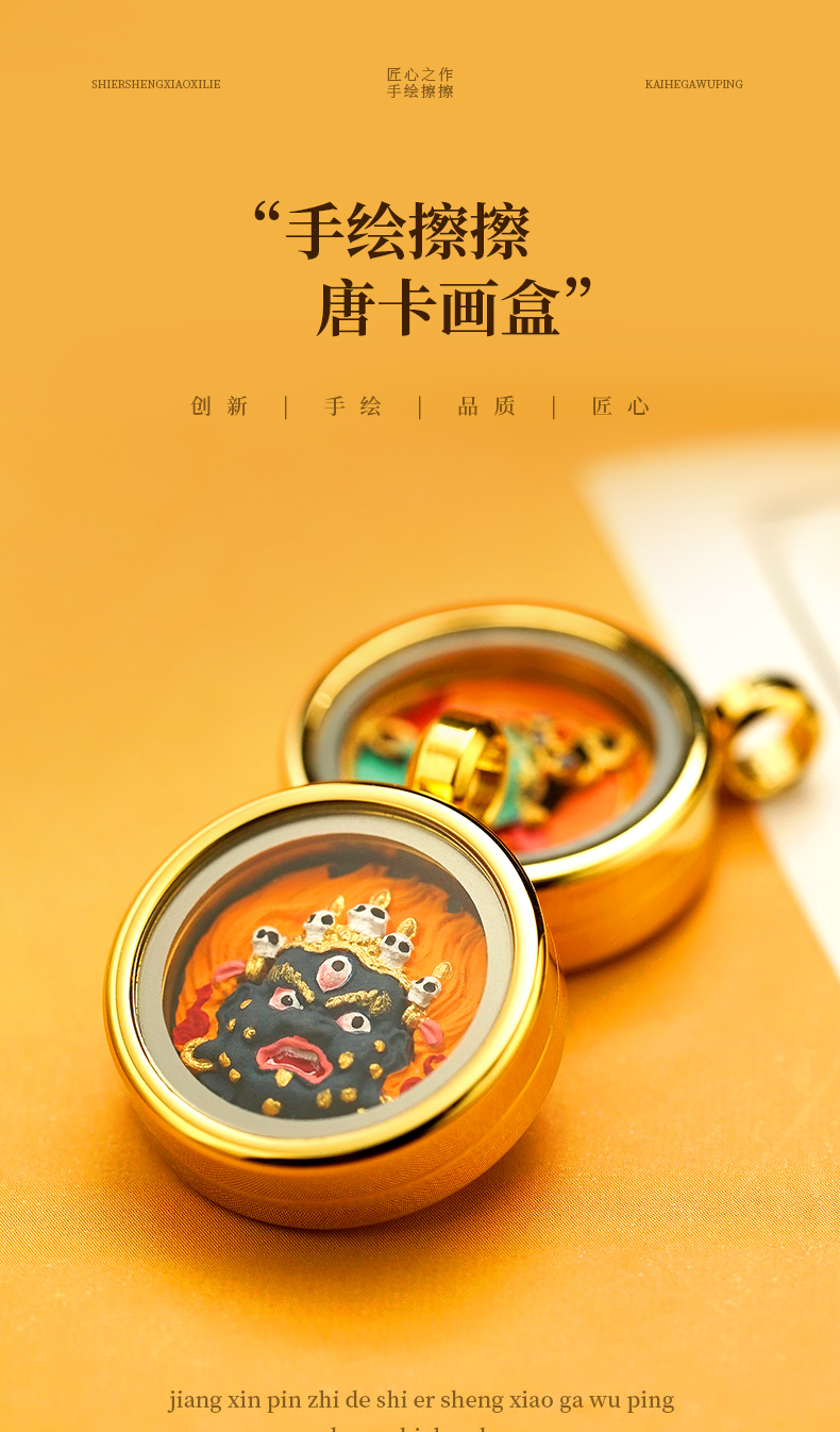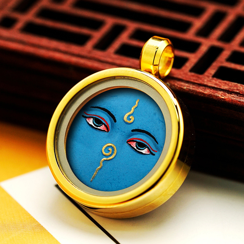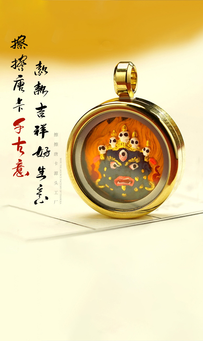 擦擦唐卡手工彩绘扎基拉姆五爷钛钢1.5cm小立体唐卡擦擦嘎乌盒吊