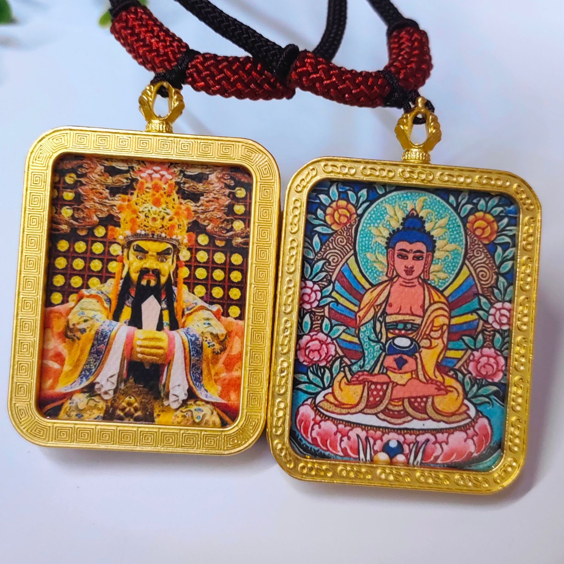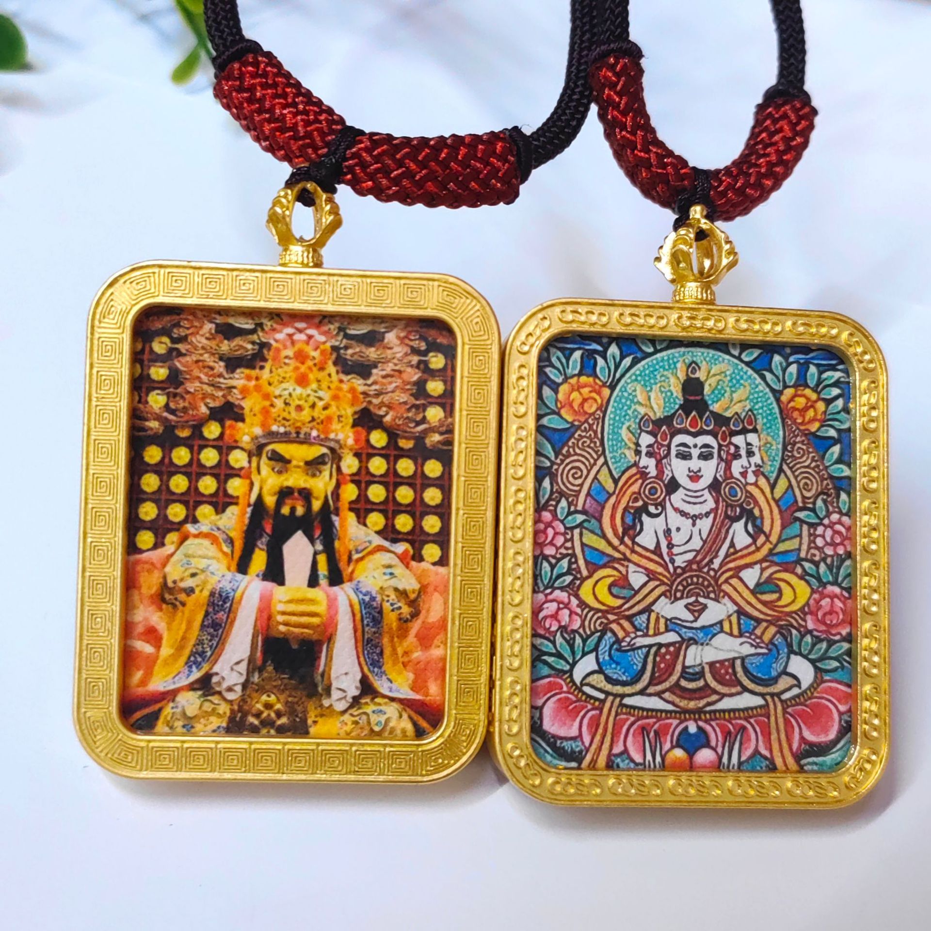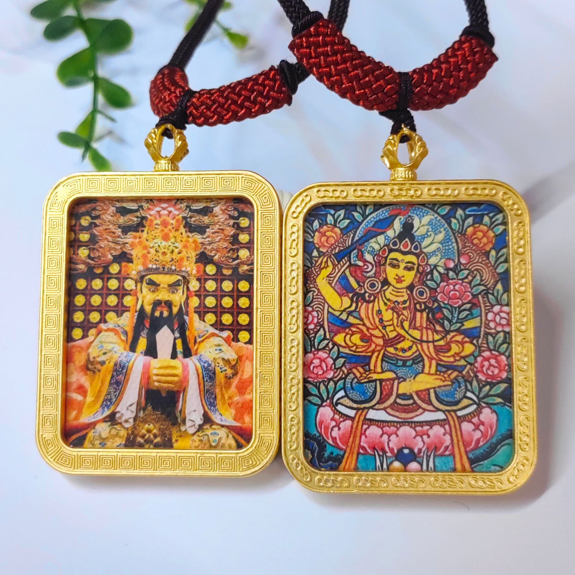 双面款非手绘五台山龙五爷文殊八大守护神唐卡藏式嘎乌盒吊坠景区