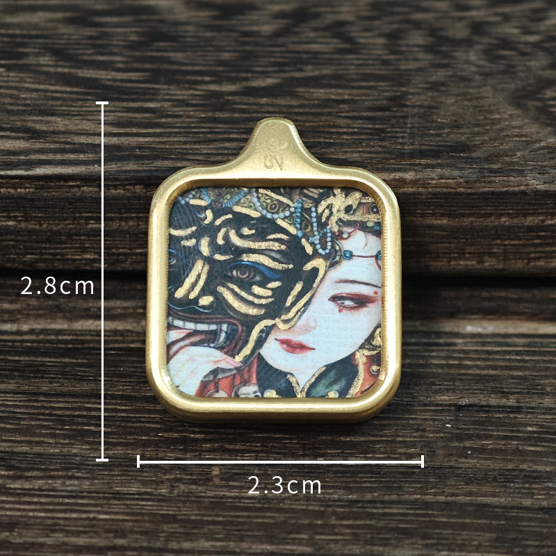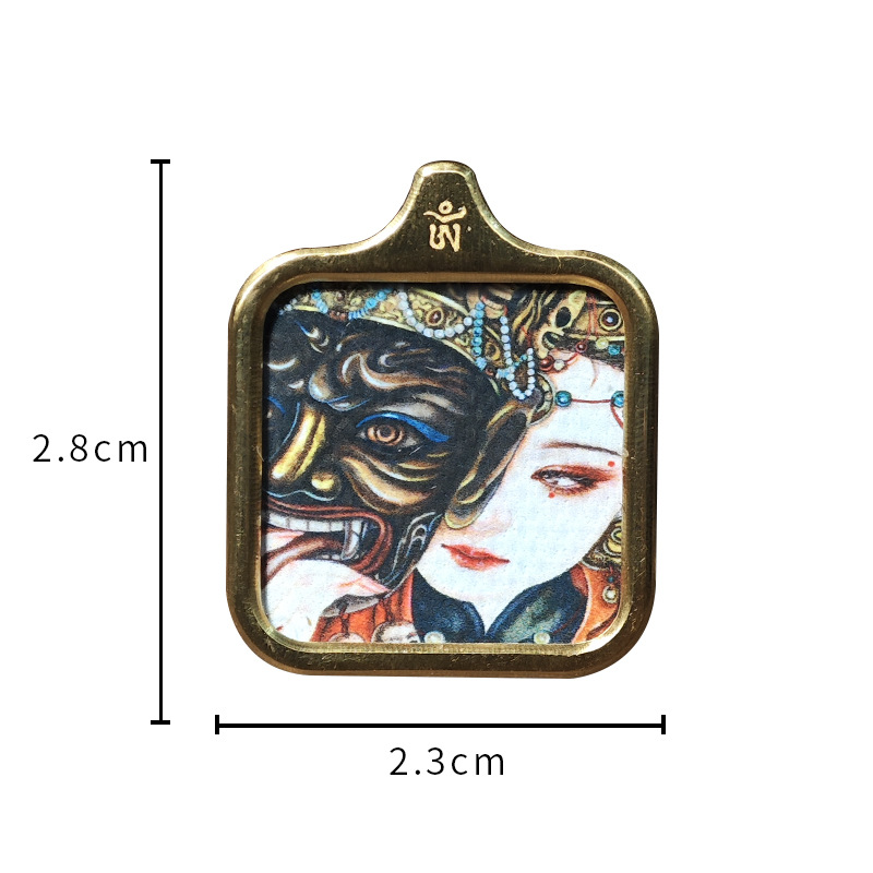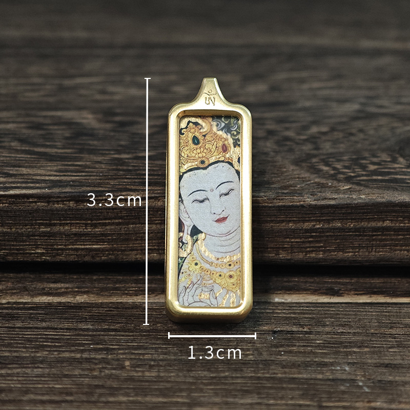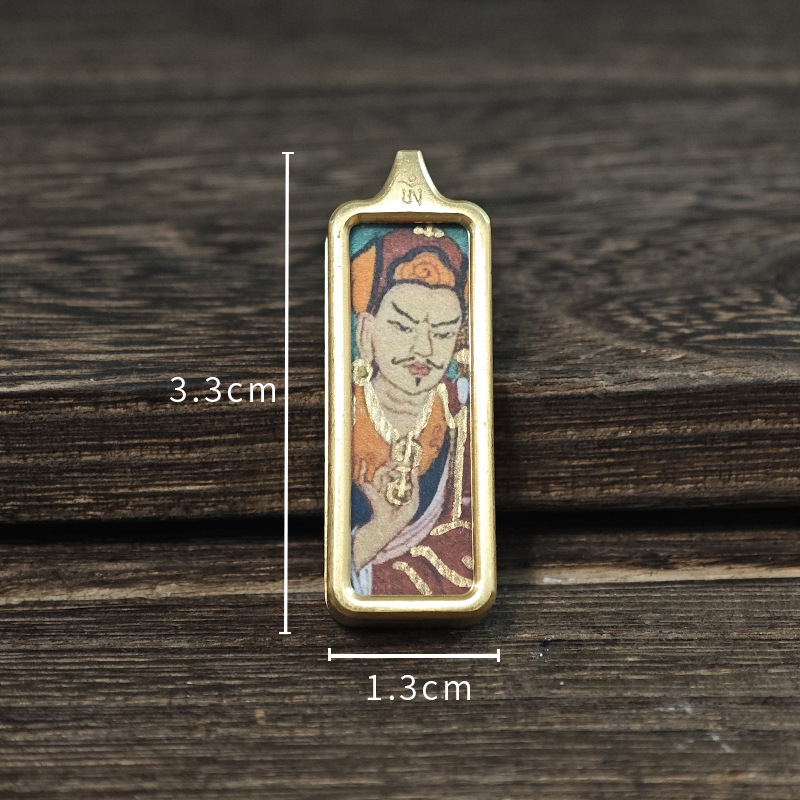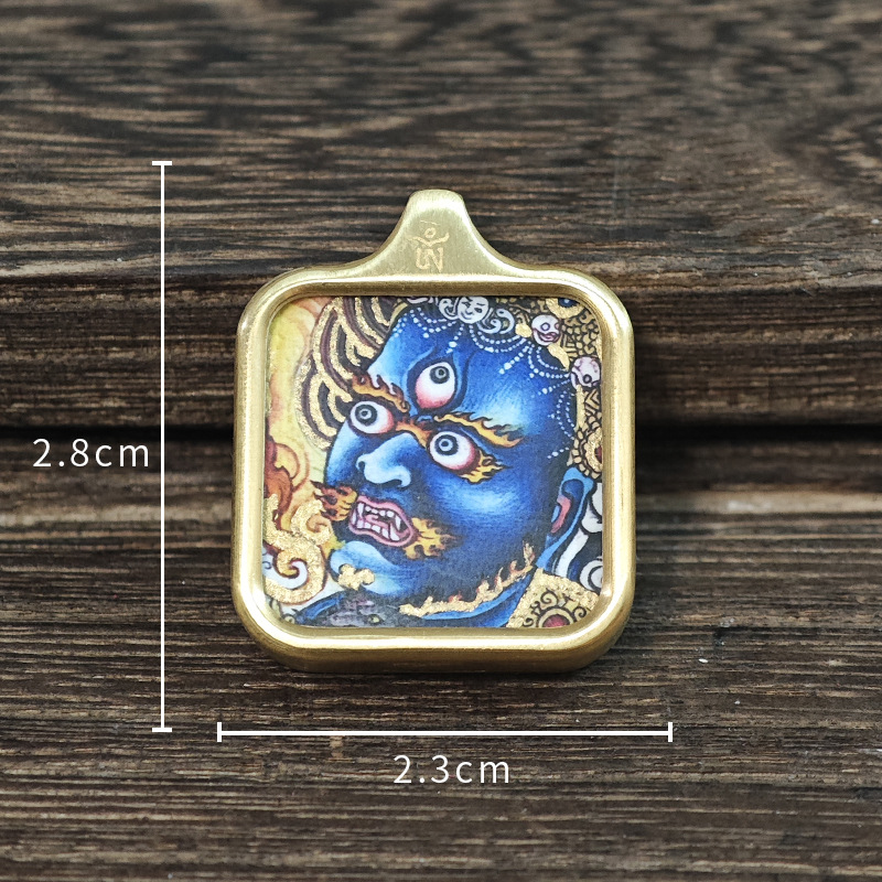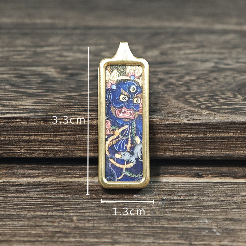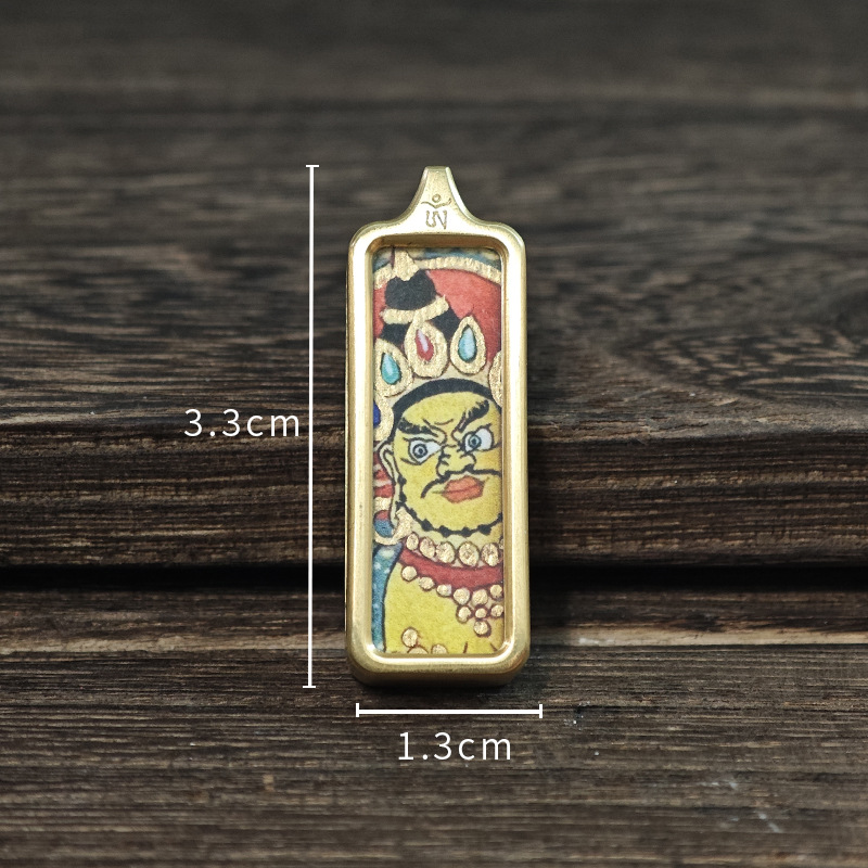 钛钢手绘小唐卡扎基拉姆五爷黄财神观音本命佛牌吊坠嘎噶乌盒空盒