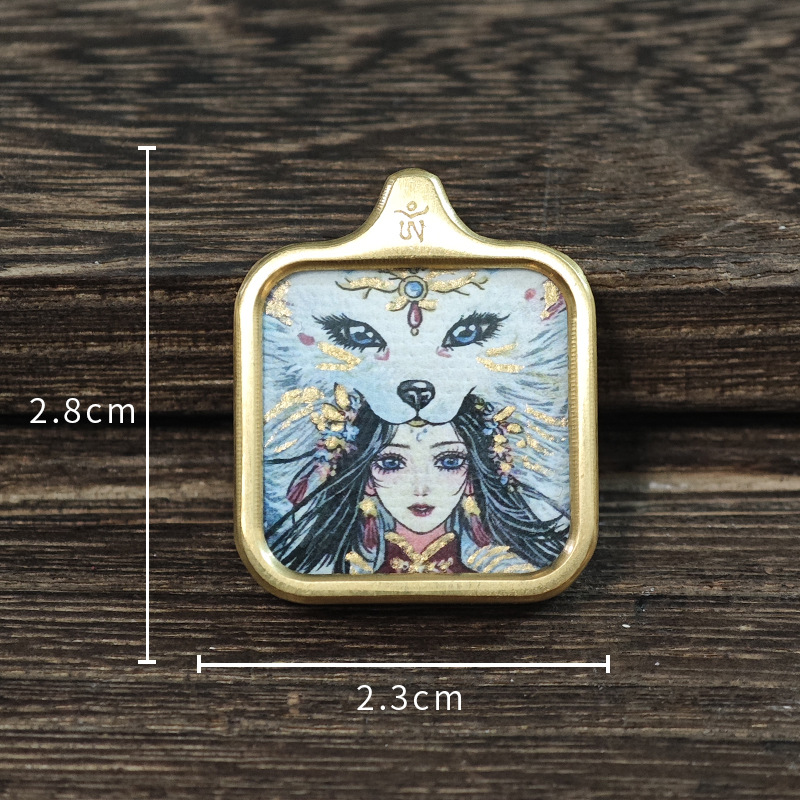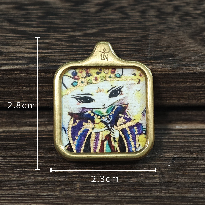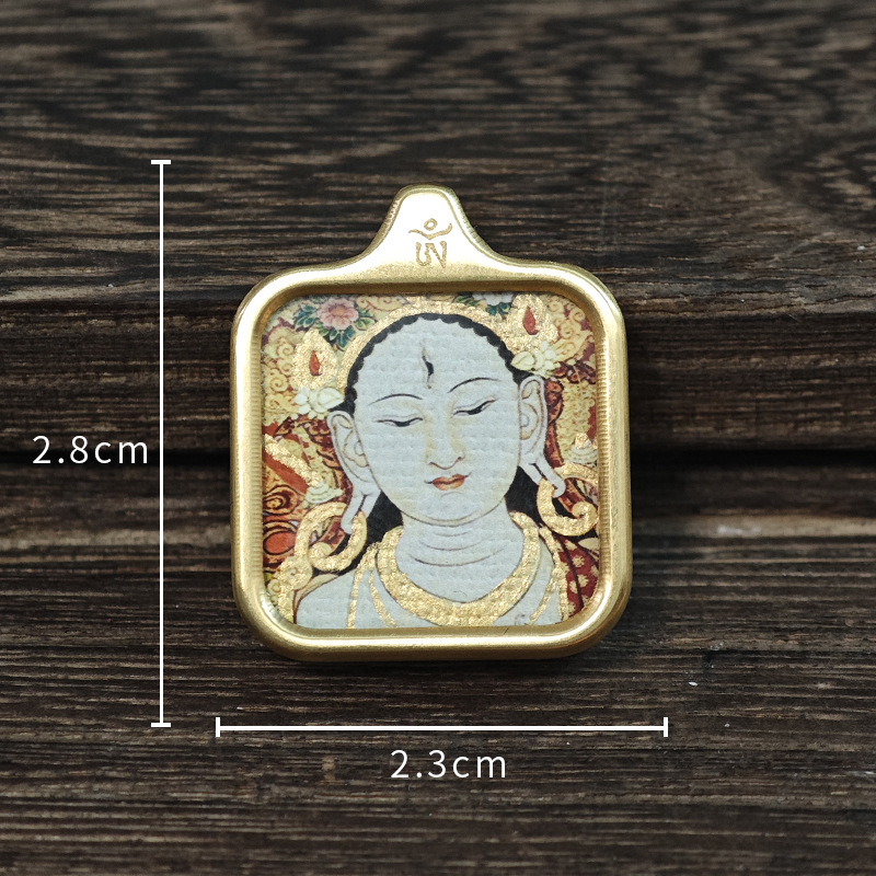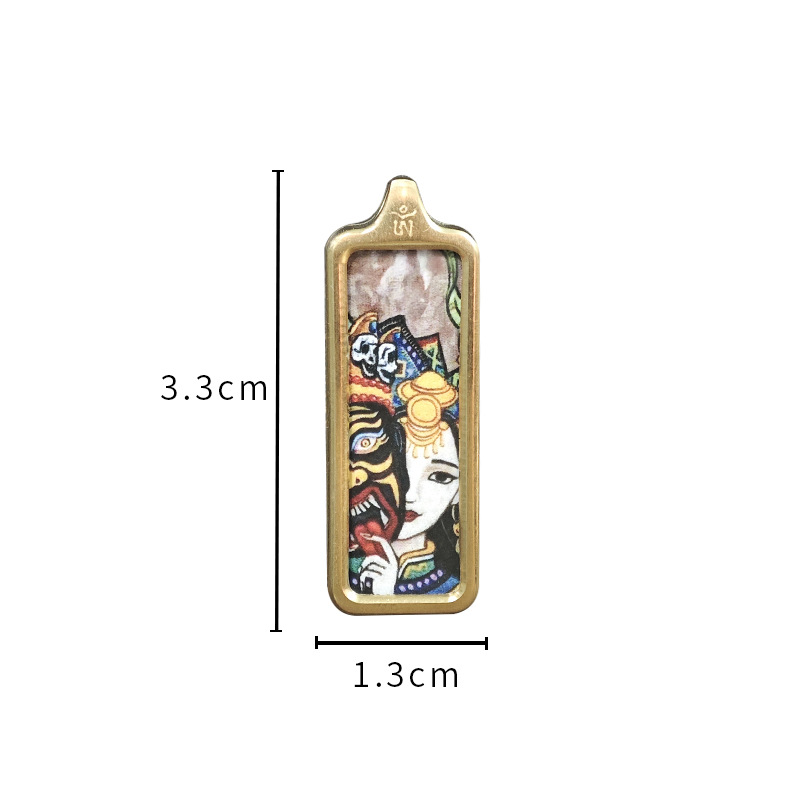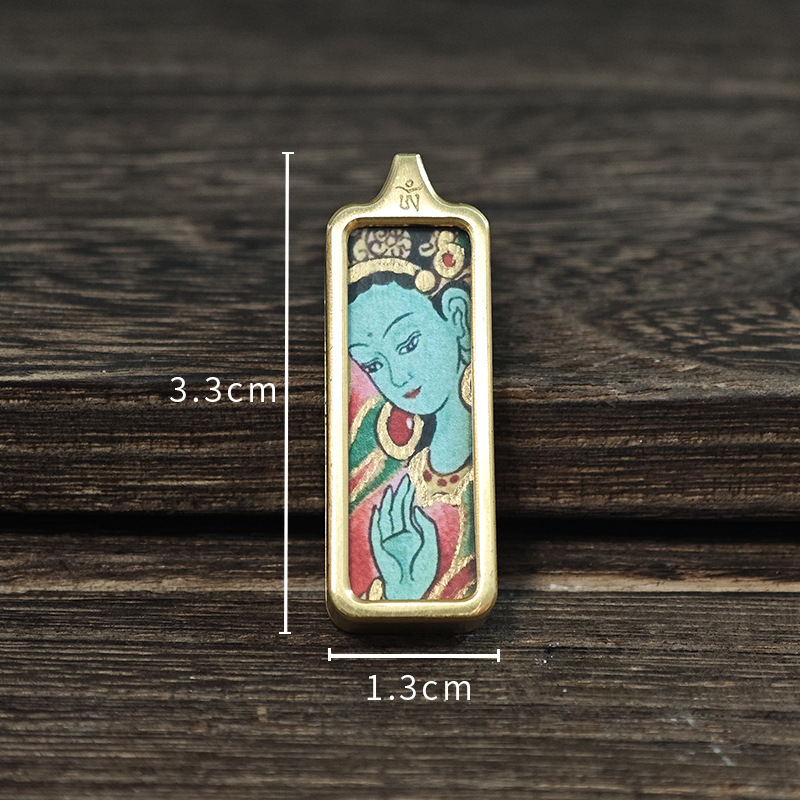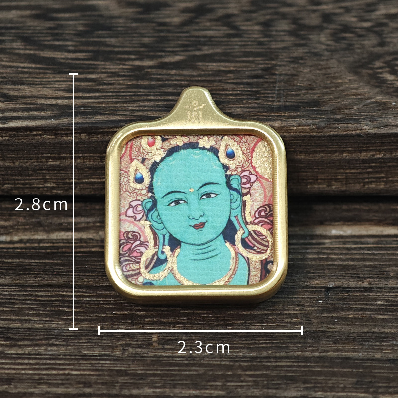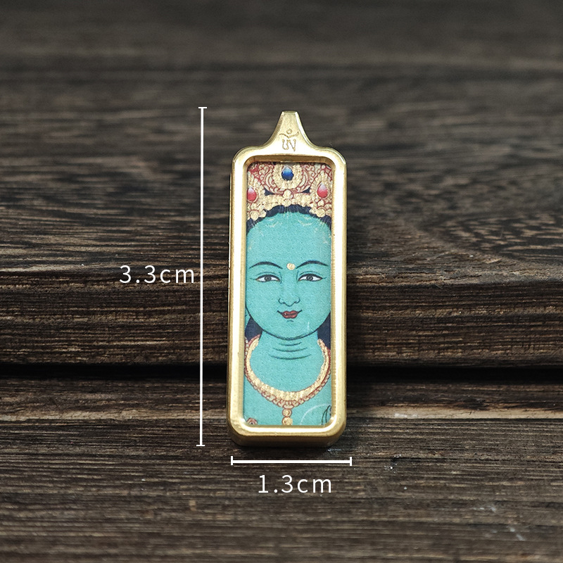 钛钢手绘小唐卡扎基拉姆五爷黄财神观音本命佛牌吊坠嘎噶乌盒空盒