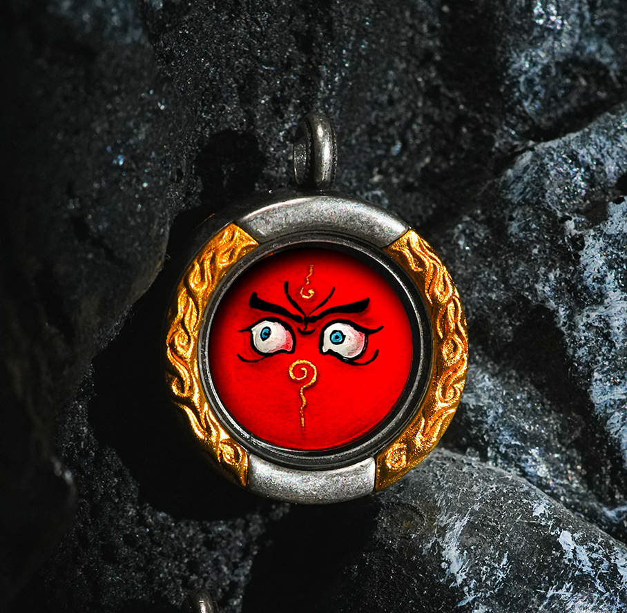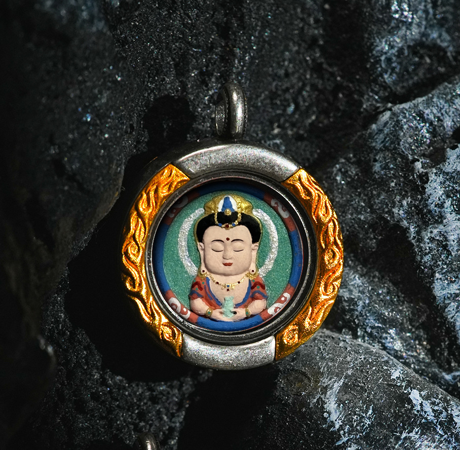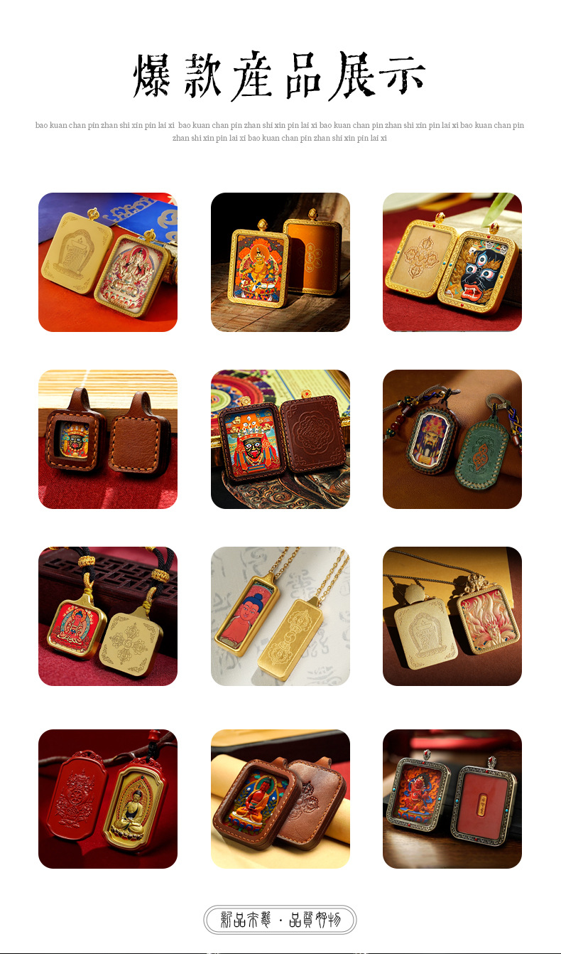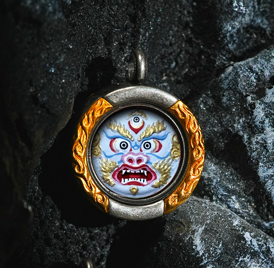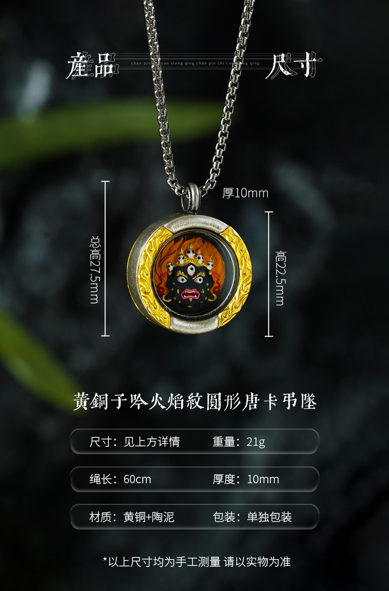 新非遗手绘上色陶泥擦擦唐卡黄铜火焰纹圆形狮子嘎乌盒吊坠复古绳