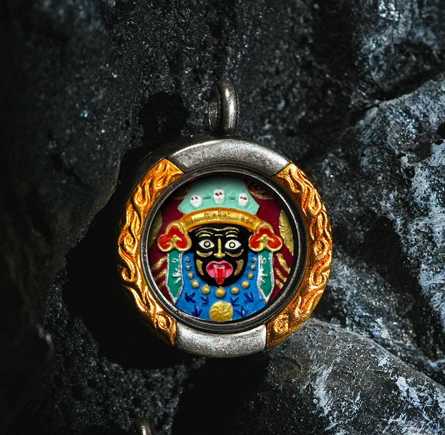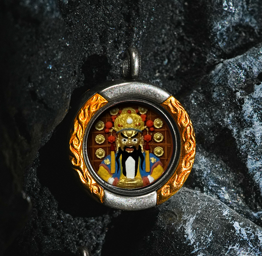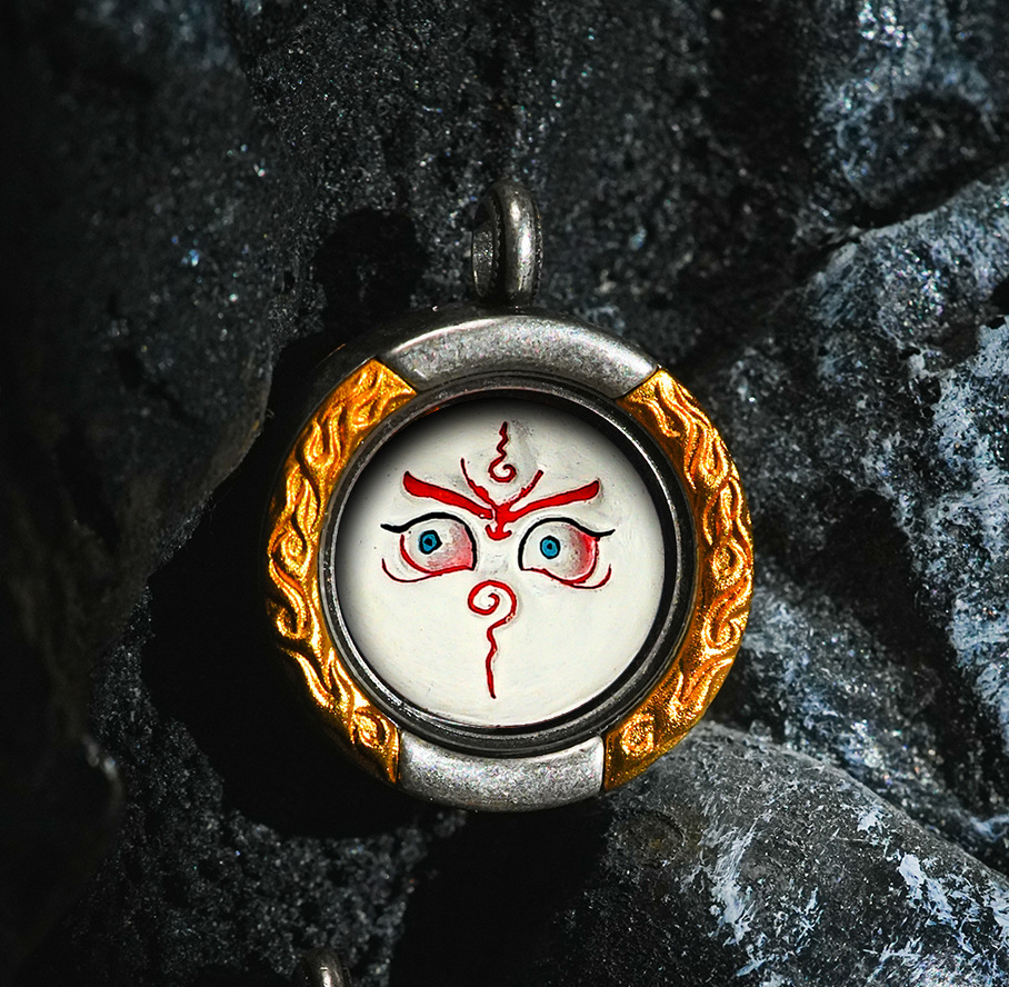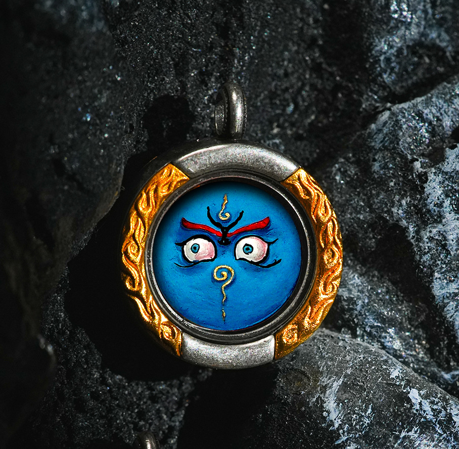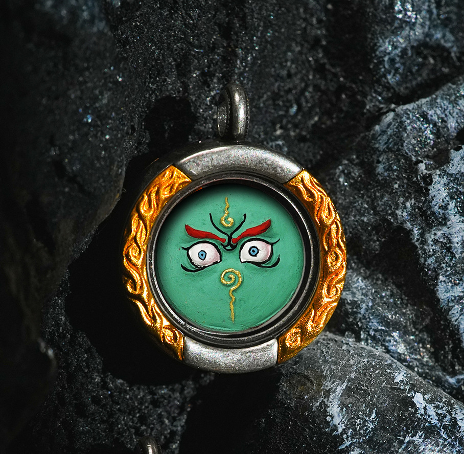 新非遗手绘上色陶泥擦擦唐卡黄铜火焰纹圆形狮子嘎乌盒吊坠复古绳