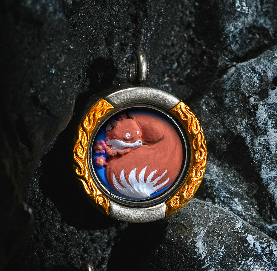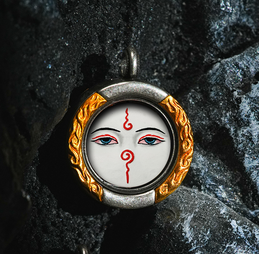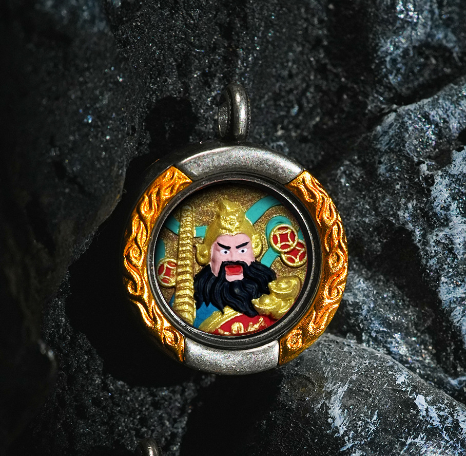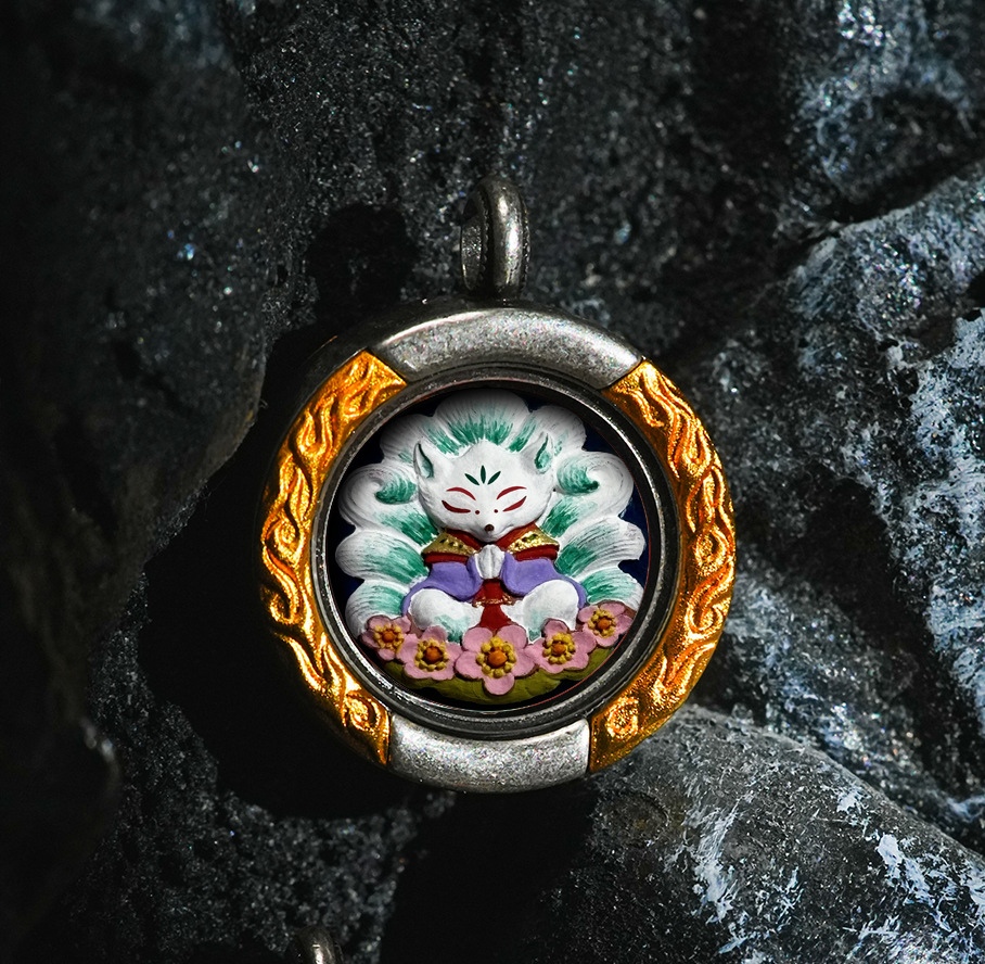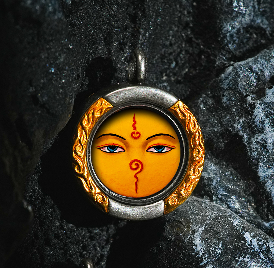 新非遗手绘上色陶泥擦擦唐卡黄铜火焰纹圆形狮子嘎乌盒吊坠复古绳