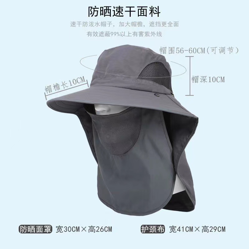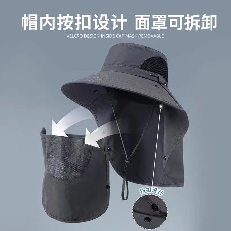 夏季遮阳帽户外钓鱼登山旅游防晒帽加大帽沿防晒护脸可拆卸太阳帽