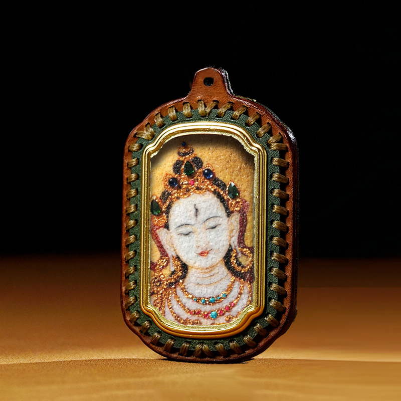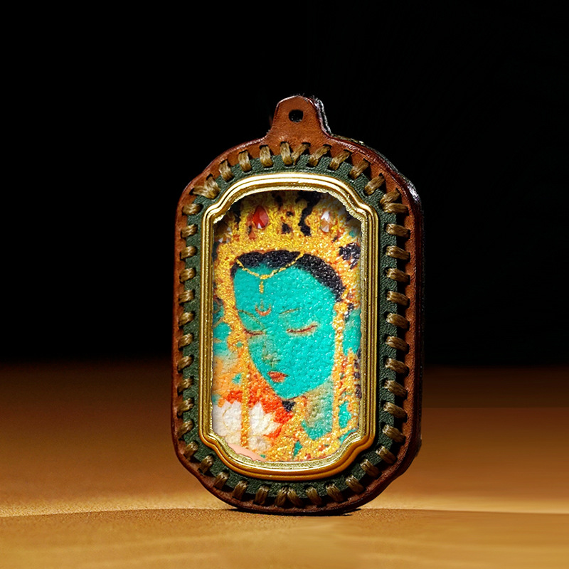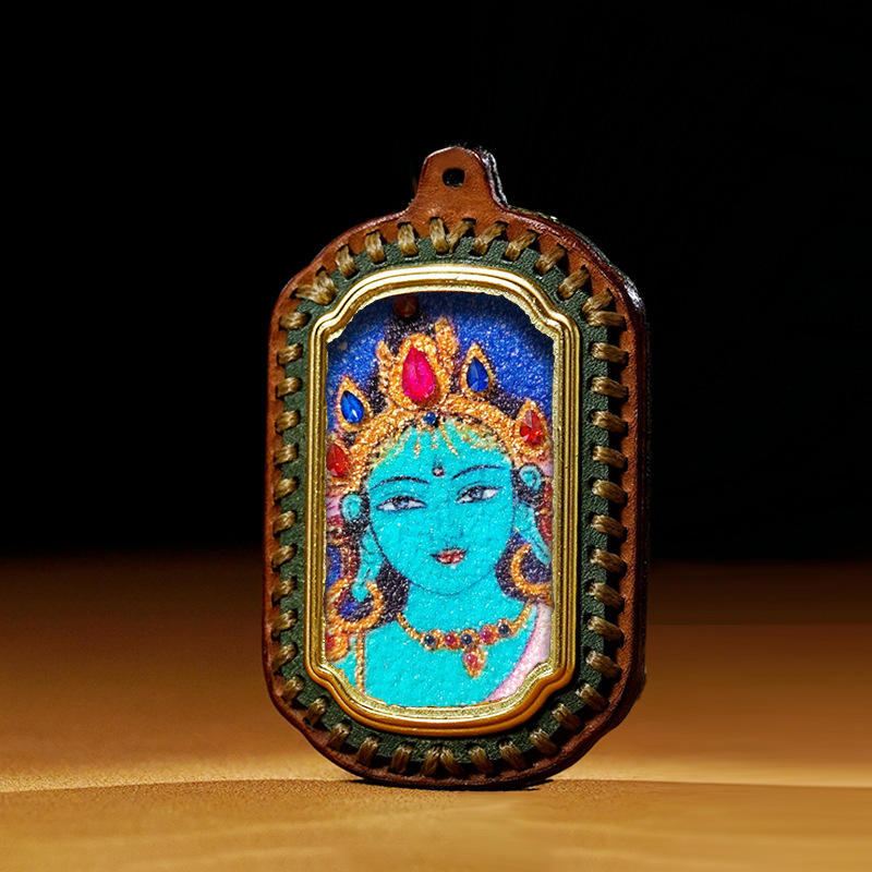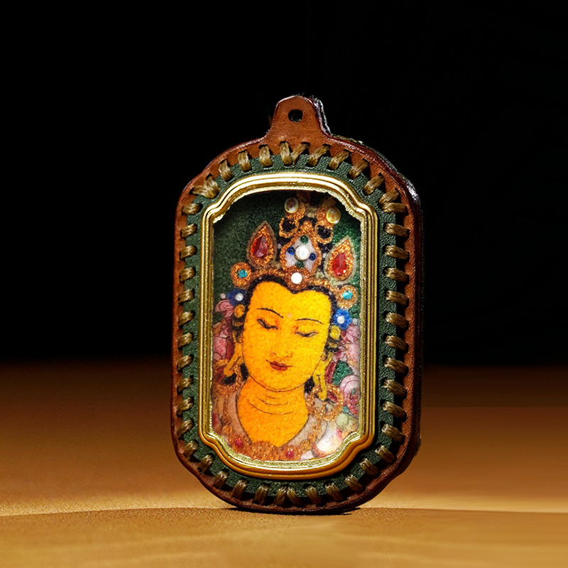 迷你立体唐卡扎基拉姆绿度母手工宝石画随身唐卡嘎乌盒立体 唐卡