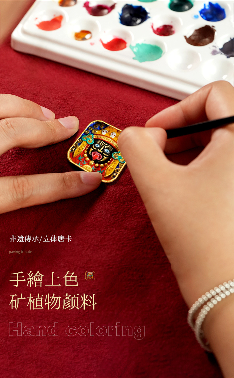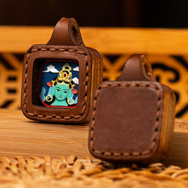 小唐卡手绘扎基拉姆绿度母黄财五爷diy配饰迷你文殊西藏唐卡吊坠
