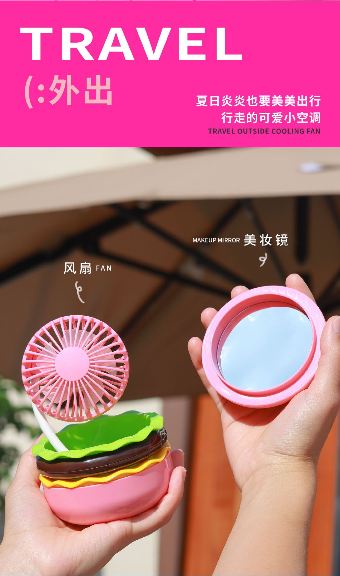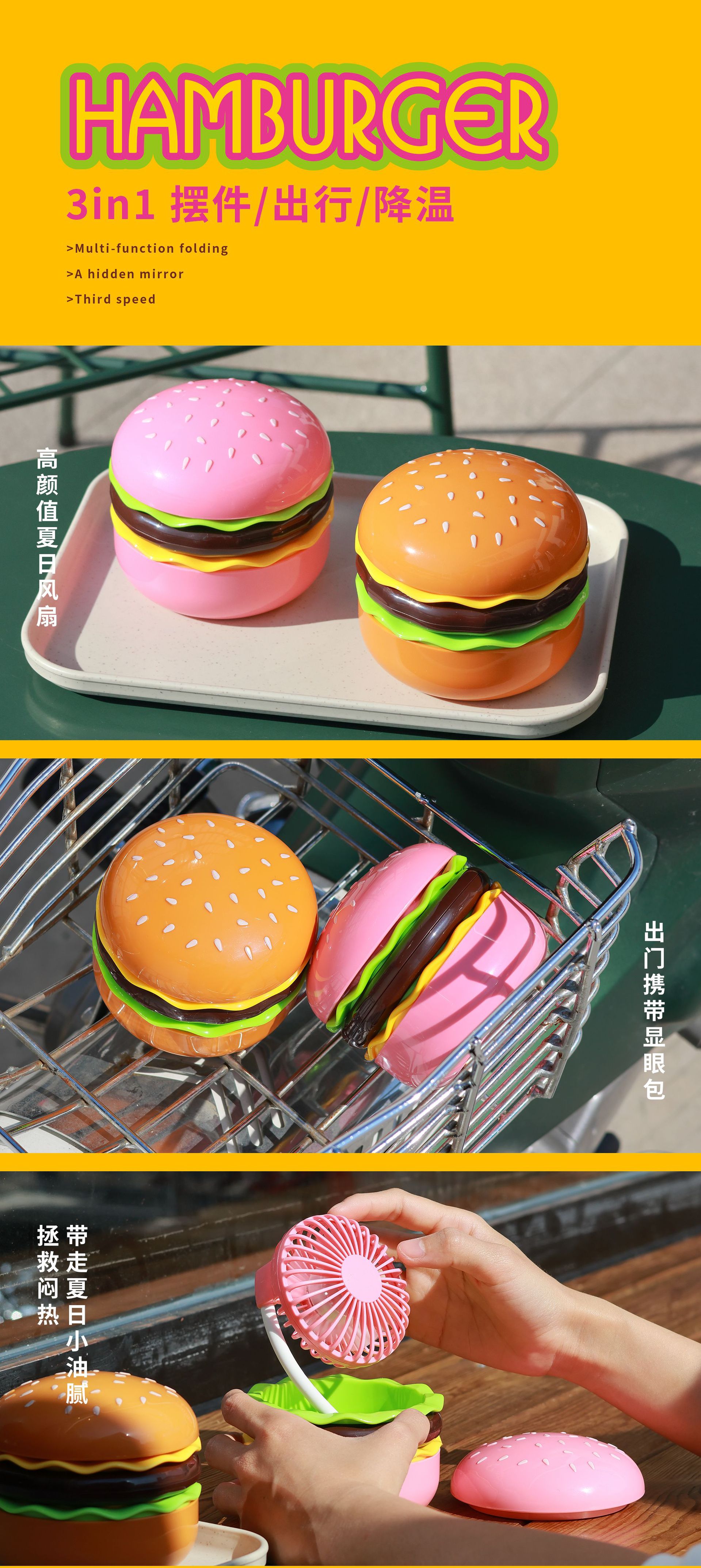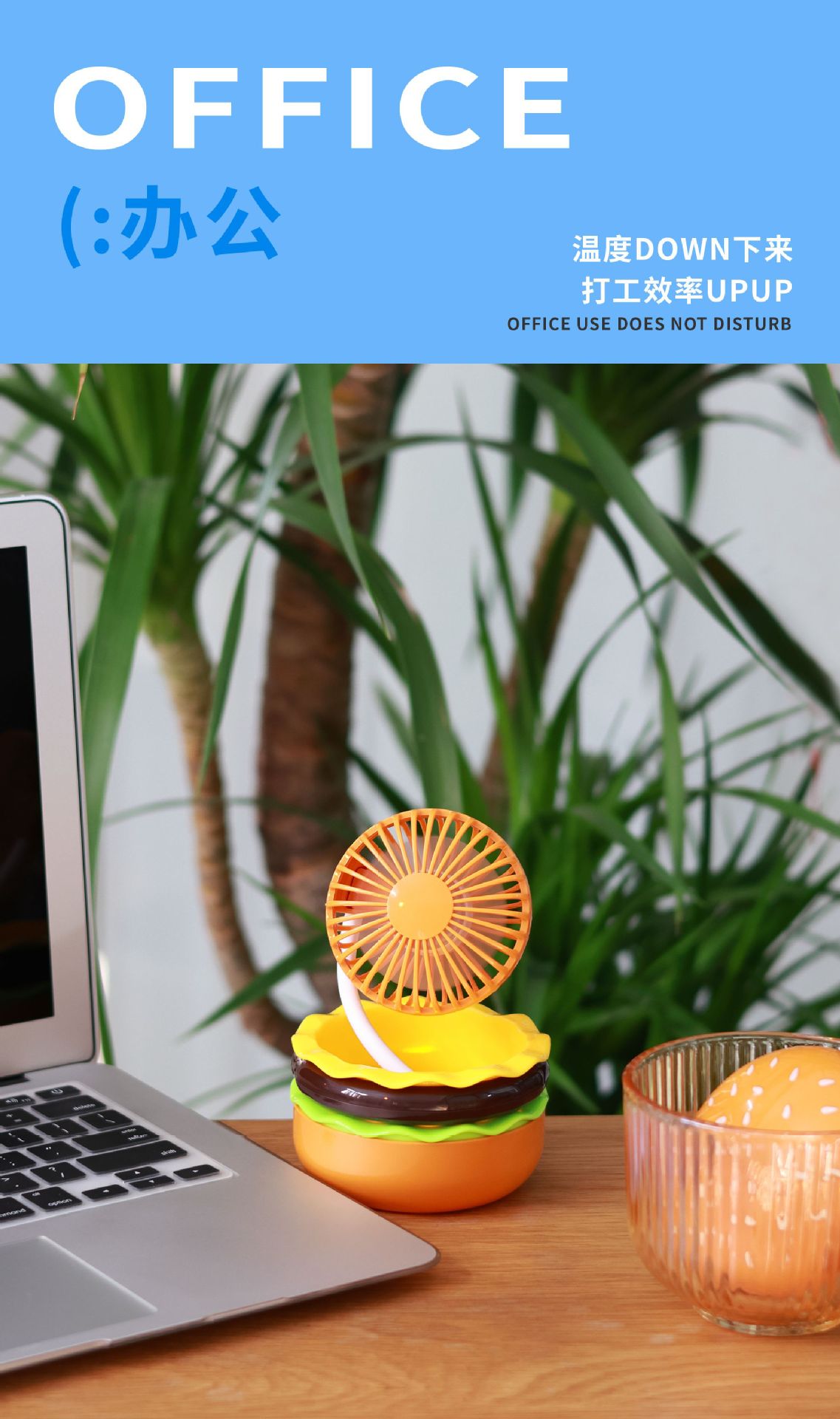 新创意汉堡多功能小风扇可爱便携外贸学生儿童礼品充电小风扇批发
